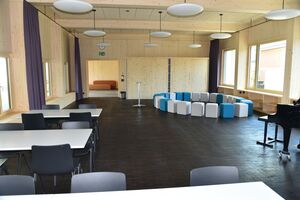 Nach knapp einem Jahr Bauzeit konnte die Klang-Schmeatta, der neue Singsaal am OZ Oberriet im Rahmen der Schulausstellung expOZO dem Schulbetrieb übergeben werden. In einer offiziellen Einweihungsfeier am Freitagabend mit Anwesenheit von Behördenvertretern, Bauleute und weiteren geladenen Gästen dankte Schulratspräsident Samuel Hanselmann allen für die grossartige Arbeit. Ein spezieller Dank sprach er insbesondere dem Architekten Daniel Eggenberger und dem Bauleiter Samuel Ögmen aus. Sie hatten es geschafft die verschiedensten Arbeiten zu koordinieren, so dass der Bau im gesetzten Zeitrahmen fertiggestellt werden konnte. Nach einigen erklärenden Worten von Daniel Eggenberger machte Esther Portmann die Verbindung vom Kunstwerk «Urbar» im Foyer des Neubaus zur Schule an sich. Sieben verknüpfte Samenkapseln stehen für den fächerübergreifenden Unterricht und die Wichtigkeit des vernetzten Denkens. Mit einem von den Schülerinnen und Schülern vorbereiteten Apéro riche leitete Samuel Hanselmann zum geselligen Teil des Abends über, welcher unter anderen auch ein feines Nachtessen beinhaltete.