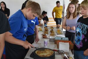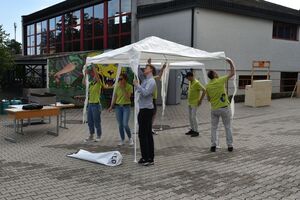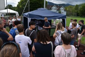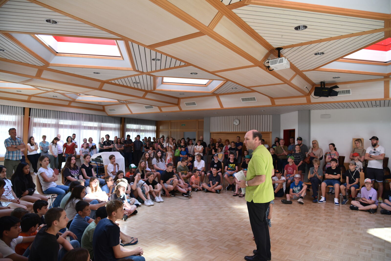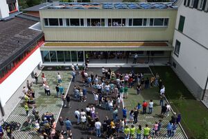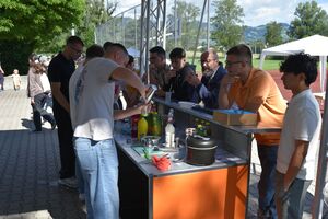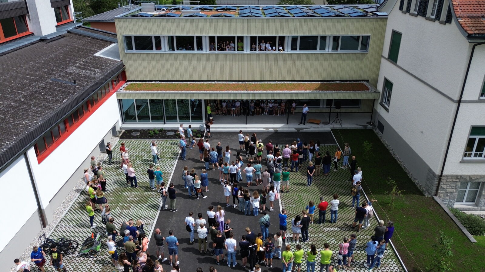 Die Schulausstellung expOZO am Samstag, 22. Juni 2024 war ein riesiges Volksfest. Einige hundert Personen folgten der Einladung. Sie besuchten die Präsentationen der vielfältigen Projektarbeiten, bestaunten die qualitativ hochstehenden Arbeiten aus dem musisch-gestalterischen Unterricht oder genossen die Aufführung des Wahlfaches Musik und des Jugendmusikprojektes young (r)evolution. Um 11.40 Uhr war es dann so weit. Mit viel Rhythmik, einer von Trompeten und Posaunen gespielten Fanfare, sowie einigen Worten des Schulratspräsidenten wurde die Klang-Schmeatta dem Schulbetrieb übergeben. Bevor die neuen Räumlichkeiten mit einer Polonaise eingeweiht wurden, wurde der Akt mit einem Foto festgehalten. Schliesslich ging es zum Mittagessen. An verschiedenen Ständen wurde eine grosse Vielfalt an Speisen angeboten.
