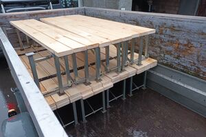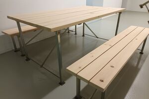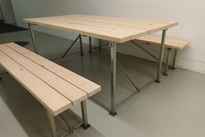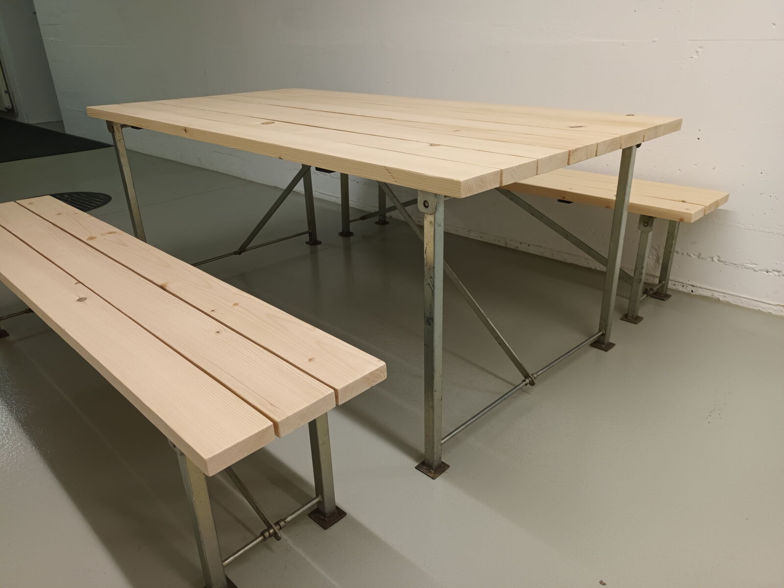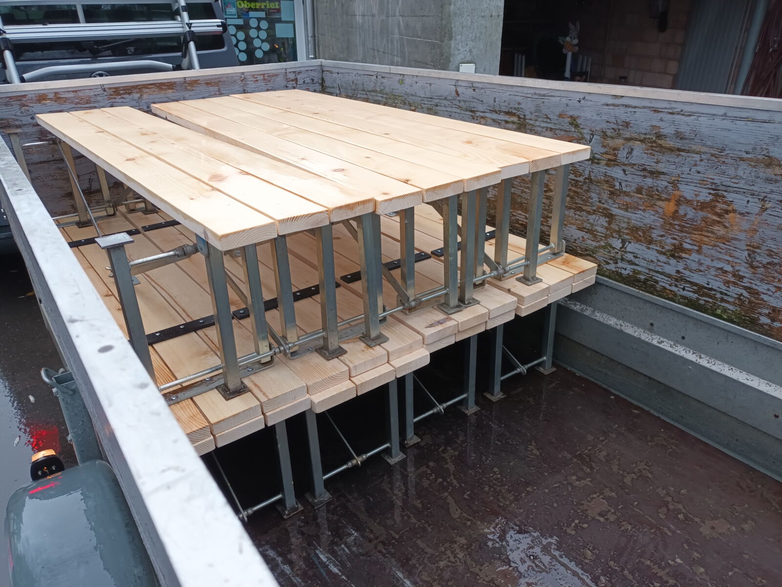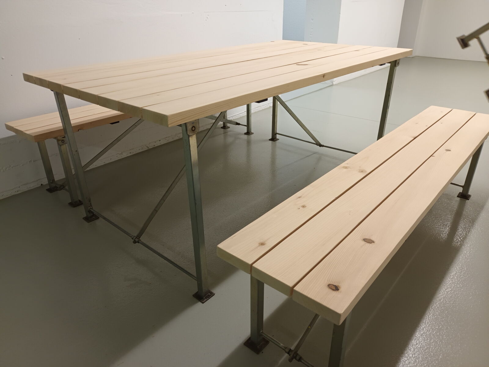 Die elf Mädchen und Knaben beschafften zunächst Weisstannen-Klotzbretter aus der Sägerei Haltinner, sägten diese in 10 cm breite Latten und hobelten sie. Anschließend wurden die Latten mit zwei Flacheisen zu stabilen Platten verbunden. Zum Schluss demontierten sie die Klappfüße von den alten Holzplatten und montierten sie an die neuen Oberflächen.
