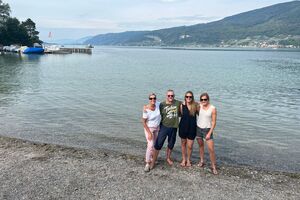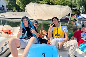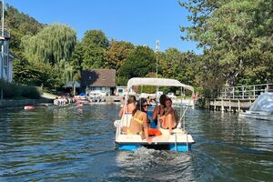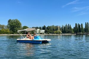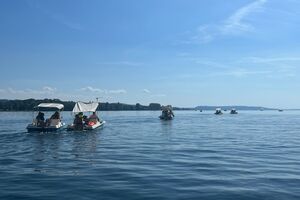 Als nächstes trafen wir uns am Bielersee, wo wir Tretboote mieteten. Auf jedem Tretboot durften vier Personen Platz nehmen. Immer wieder kühlten wir uns im herrlichen Bielersee ab. Bei der Einfahrt in den Hafen zeigte sich, wer sein Boot wirklich sauber parkieren konnte!
