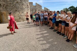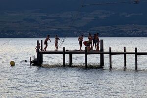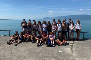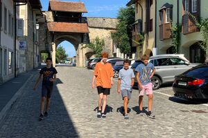 Heute ging es schon sehr früh aufs Velo, denn wir hatten 60km Weg vor uns. Wir gingen nämlich das Schloss Grandson besichtigen. Und los ging die Fahrt. Am Morgen war das Wetter noch angenehm kühl, doch dies änderte sich schnell und es wurde erdrückend warm. Wir fuhren 1.5 Stunden dem See entlang und machten dann die erste Pause. Wir genossen einen Znüni am See und nach 15 Minuten ging es dann weiter Richtung Grandson. Auch diese restlichen Kilometer meisterten wir, ohne zu jammern. Dort angekommen begrüsste und eine nette «Schlossmagd», welche uns mit viel Freude und Motivation durch das Schloss führte. Es gab viel Eindrückliches zu sehen und schon war diese auch vorbei. Danach konnten wir es uns unter einer Linde bequem machen und unser Mittagessen verzehren. Da wir noch vieles vorhatten mussten wir weiterfahren und gingen dann die kleine Stadt Yverdon-les-Bains erkundigen. Dort tauchte plötzlich unser Hauptlehrer auf, welcher im Rahmen der Intensivweiterbildung einen Aufenthalt im Welschland machte. Herr Chaziparaskevas kam auch am nächsten Tag zum Schlussabend nochmals vorbei. Die Zeit verging und wir schnappten uns unsere Velos zum dritten Mal und fuhren zurück. Auf dem Weg besuchten wir noch ein Naturschutzgebiet und sahen viele Tiere. Nachdem wir viel gelernt hatten, waren wir alle sehr müde. Doch es war so warm, dass ein Sprung in den See nicht fehlen durfte. Nach dem Baden gab es wieder ein leckeres Nachtessen und dann war schon bald Nachtruhe angesagt.