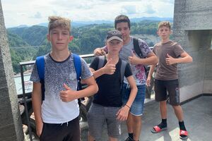 Heute Morgen hiess es putzen, putzen und putzen. Wir alle mussten mithelfen und so hatten wir dies schnell. Alle Koffer und Velos standen bereit, um eingeladen zu werden, und die Zimmer wurden auch gründlich gewischt. Die Badezimmer putzte man natürlich. Nach etwa einer Stunde war alles bereit, wir schnappten uns unseren Lunch und konnten Richtung Fribourg losfahren. Während der Fahrt war es sehr ruhig, denn alle waren todmüde von der letzten Nacht. In Fribourg bestiegen wir in einen Turm mit 365 Treppenstufen und von dort oben sah man über ganz die ganze Stadt. Später hatten wir wieder Zeit, um in der Stadt an der Sprachgrenze ein bisschen herumzuschlendern, was wir sehr genossen. Dann ging auch dies leider zu Ende und wir machten uns wieder abfahrtbereit. Wir fuhren los in Richtung Oberriet und alle schliefen im Car. Gegen Ende erwachten dann doch noch alle und es wurde wieder Musik gespielt. Auch die letzten Meter waren dann geschafft und man sah schon die Eltern auf ihre Kinder warten.