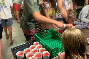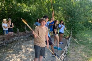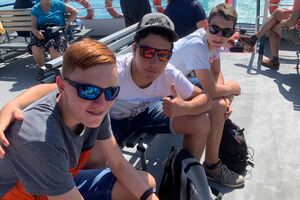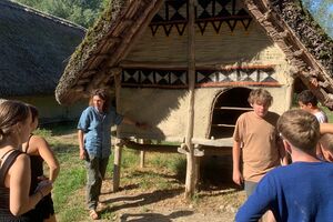 Heute ging es wieder aufs Velo doch diesmal nicht so lang: nur 11km in ein Pfahlbauerdorf in Gletterens. Dort teilten wir uns in zwei Gruppen auf: Eine Gruppe musste ein Interview machen mit Leuten auf der Strasse und der Rest ging in einen Workshop. Der Workshop war sehr aufschlussreich und man lernte viel über die Steinzeit. Am Ende durfte man auch noch Speer werfen, was sehr Spass machte. Dann wechselten die Gruppen und die anderen waren an der Reihe. Wir mussten eine erwachsene Person und ein Kind suchen. Jedoch war es Vormittag und alle Kinder waren in der Schule. Am Hafen fanden wir einige Erwachsene, welche wir interviewen konnten, doch Kinder waren wie vom Erdboden verschluckt. Doch 4 Schüler kamen auf die Idee, in die Schule zu fahren. Sie schauten auf Google Maps, wo die nächste Schule ist und fuhren 3 km mit dem Velo. Dort gingen sie zur Schulleitung, welche sehr nett war und ihnen zwei Kinder brachte. Diese wurden dann interviewt und schon mussten sie wieder zurück. Dort warteten schon die anderen und es ging weiter. Wir fuhren zum Hafen von Portalban, wo wir zu Mittag assen. Dann hörten wir das Dröhnen des Schiffs, welches wir besteigen durften, um quer über den Neuenburgersee nach Neuenburg zu fahren. Dort hatten wir wieder ein wenig Zeit, die Stadt anzuschauen. Später hatten wir dann auch noch eine Stadtrundfahrt mit dem Touristenzug. Dort konnten wir über Kopfhörer Neues über Neuchâtel lernen und die Stadt besichtigen. Danach ging es auch schon wieder an den Hafen, wo es wie üblich Klassenfotos :) gab. Nachdem wir alle schön in die Kamera gelächelt hatten, ging es schon wieder zurück mit dem Schiff wie auch mit dem Velo. Am Abend dann grillten wir am See und es gab ein leckeres Barbecue. Baden durfte natürlich wie jeden Abend nicht fehlen und wir genossen unseren Abend auch zusammen mit den Leitern und Herrn Chaziparaskevas noch in vollen Zügen. An diesem Tag wurde die Nachtruhe ein wenig verzögert. Ganz so ruhig war die letzte Nacht nicht für alle.