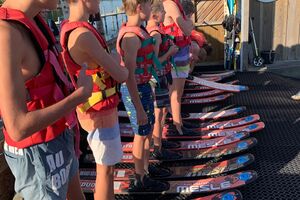 Heute ging es nicht so früh aus den Federn, doch danach ging es mit Action zu und her. Wir durften alle wasserskifahren gehen und uns austoben. Es gab zwei Gruppen und beide hatten 50 Minuten Zeit und diese vergingen sehr schnell. Einige Stürze mussten auch mal sein, denn es heisst auch so schön: Nur wer riskiert zu fallen, kann wirklich fliegen lernen. Und genauso ist es. Schlussendlich hatten es alle einigermassen im Griff und einige probierten es auch noch mit dem Board. So ging es zurück und dort gab es leckeres Mittagessen von Frau Zünd. Am Nachmittag ging es das erste Mal aufs Velo und wir fuhren nach Payerne ins Militärflugzeugmuseum. Auf dem Weg durfte die Musik natürlich nicht fehlen und wir fuhren alle in Gruppen Herr Küng hinterher. Für einige von uns fuhr er ein wenig zu schnell und so verloren wir den Rest. An einer Kreuzung wussten wir nicht weiter, doch zum Glück hatten alle einen Notfallzettel bekommen und Frau Gächter hörte das Handy klingeln. Sie fuhr uns dann entgegen und wir fanden die anderen heil wieder. Los ging die interessante Führung im Museum und schon war sie auch wieder vorbei. Wir kamen alle gesund und munter in Lagerhaus wieder an und genossen den Abend noch am See.
