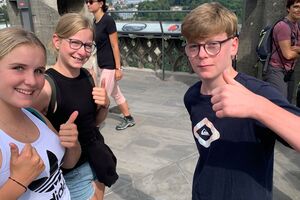 Die Zeit verging wie im Flug und schon sassen wir im Car unterwegs nach Estavayer-le-Lac. Es war noch früh am Morgen, doch bei uns ging es nicht lange und die Boxen dröhnten schon nach wenigen Metern durch den Car. Die Minuten wurden zu Stunden und schon kamen wir in Bern an. Dort gab es eine Pause und wir begaben und auf den Weg in die Stadt hinein. In der Stadt schauten wir uns das Berner Münster und natürlich das Bundeshaus genauer an. Beim Zurücklaufen hielten uns die süssen Bären im Bärengraben auf. Schon ging unsere Reise weiter und nach einer ¾ Stunde kamen wir im Lagerhaus an. Alle brachten ihr Gepäck aufs Zimmer und danach gab es eine kleine Rallye in der Stadt, bevor es Nachtessen gab. Und schon war der erste Tag vorbei und wir schliefen alle sehr gut und träumten schon vom nächsten Tag.