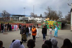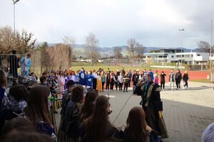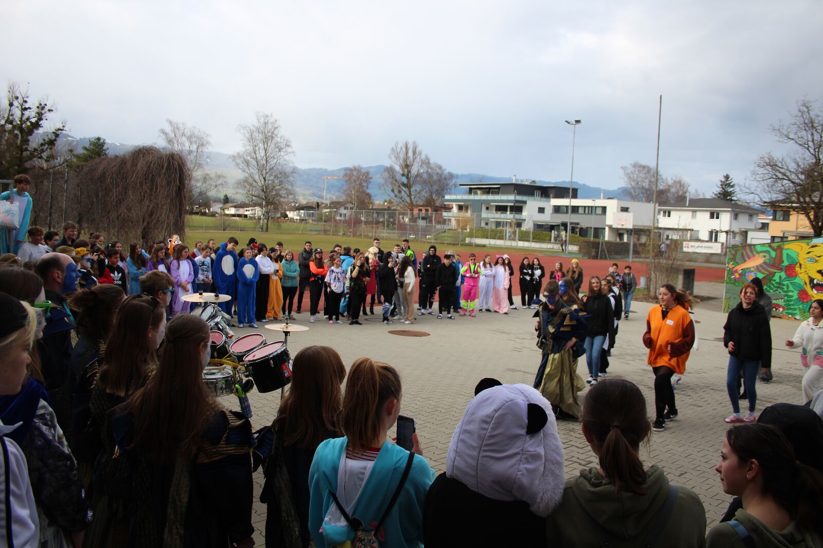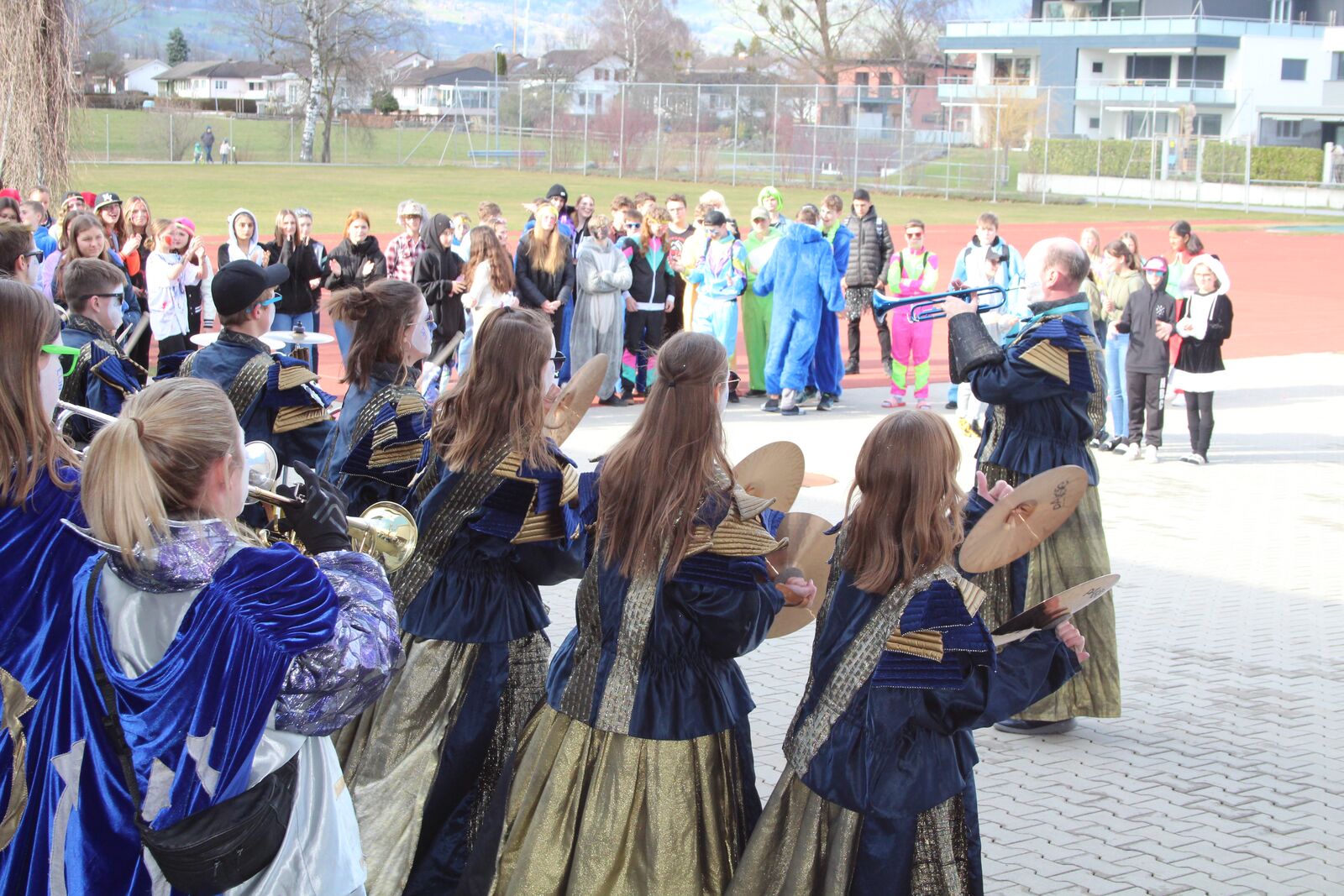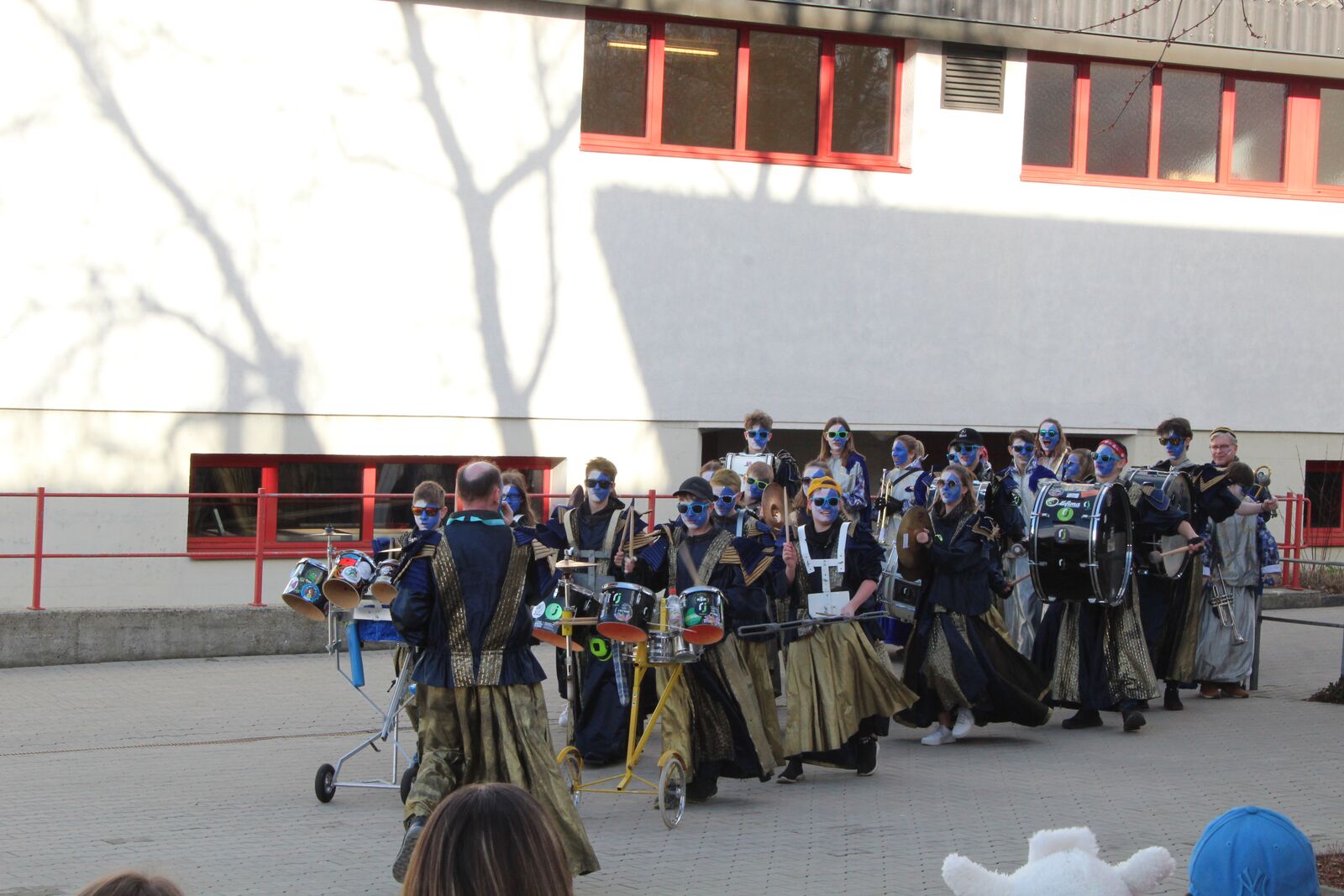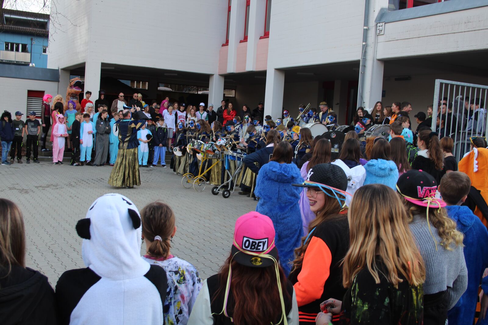 Die vorher bestimmte Jury hatte schliesslich die Qual der Wahl. Welche Klasse würde den Sieg davontragen? Während die Jury alle Videos sorgfältig anschauten, wurde der Rest der Fasnachtsgesellschaft von der hauseigenen Gugga «Caramba» unterhalten.