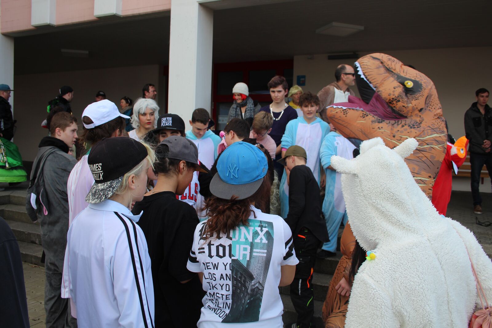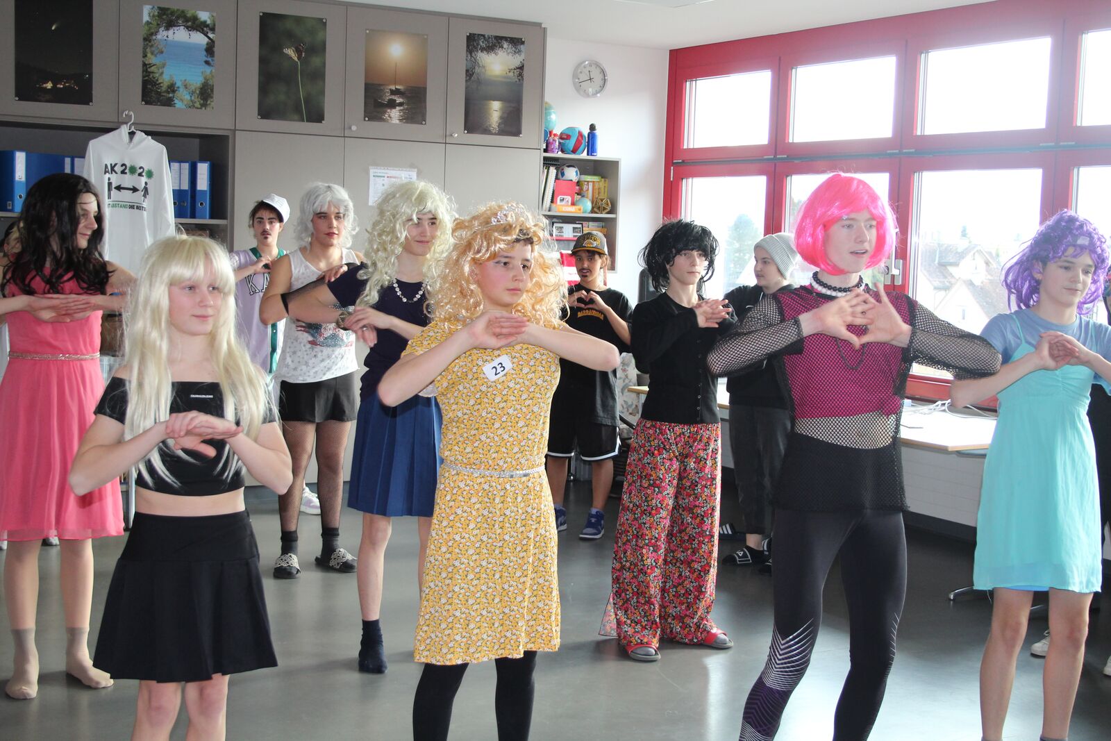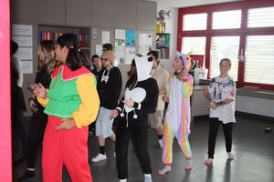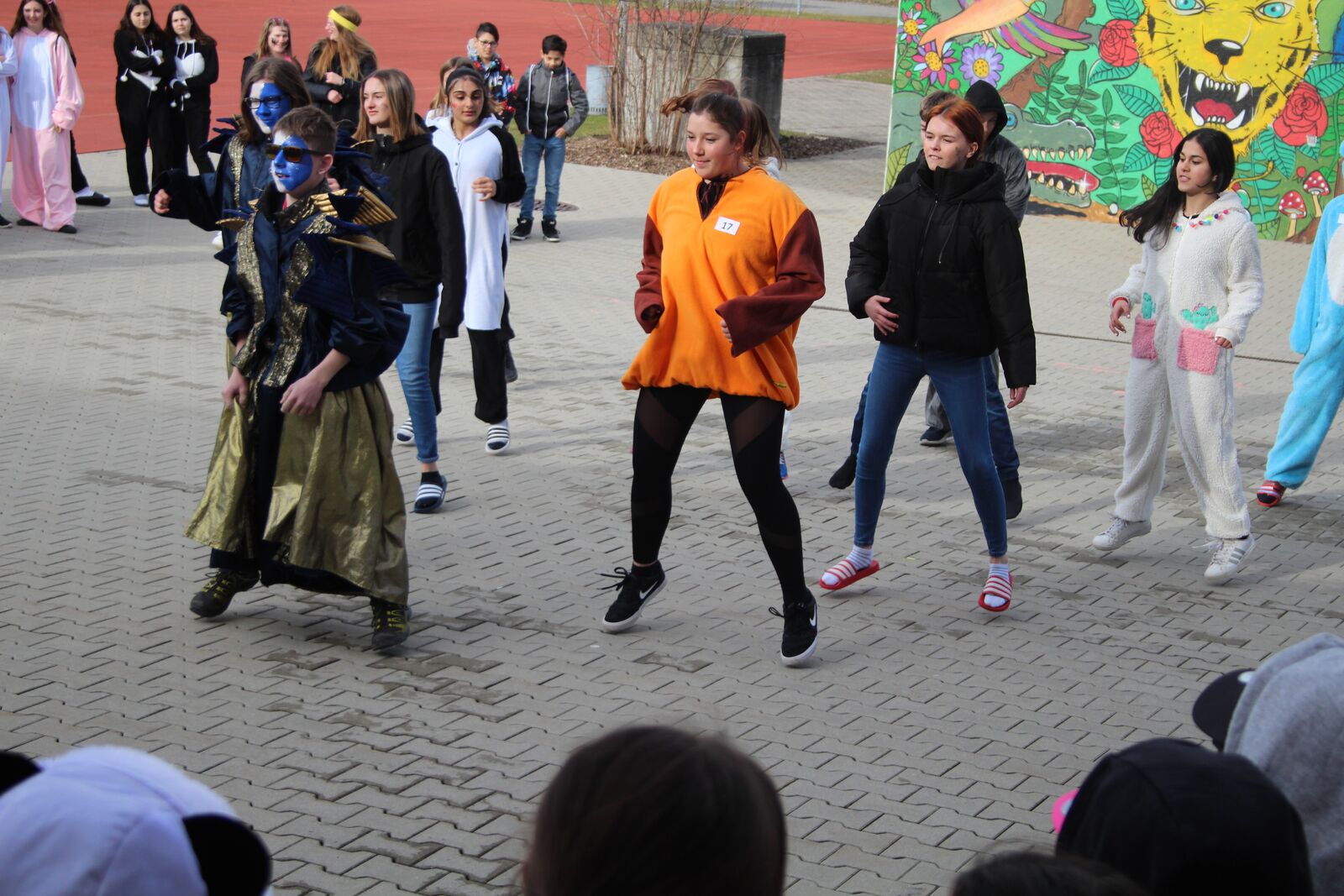 Schon beim Eintreffen der Schülerinnen und Schüler am Freitagnachmittag wurde deutlich, dass sich auch die Jugendlichen auf diesen besonderen Anlass gefreut und keine Mühen gescheut hatten, um mit ihren Kostümen zu überzeugen. Schnell waren die Fotos für die Jury geschossen und die Zeit für die Aufnahme des vorher einstudierten Tanzes lief. 50 Minuten hatten die Klassen Zeit um das perfekte Video aufzunehmen.