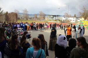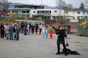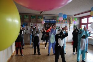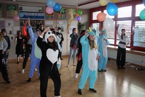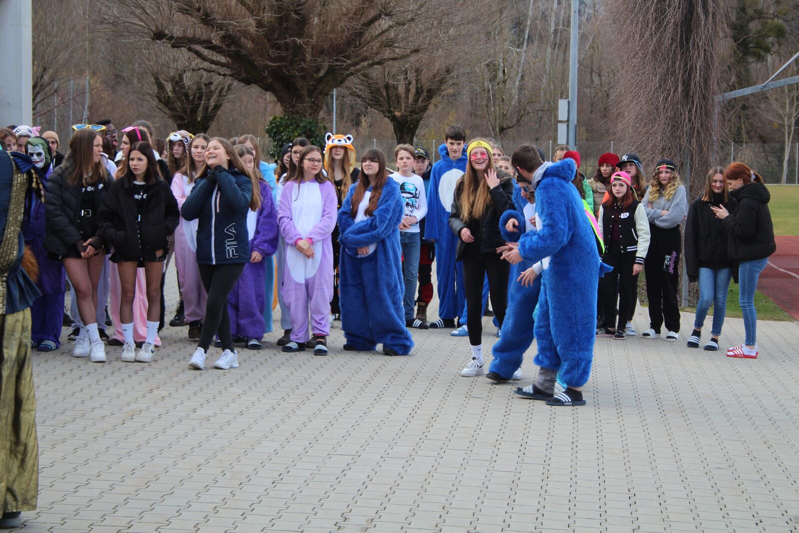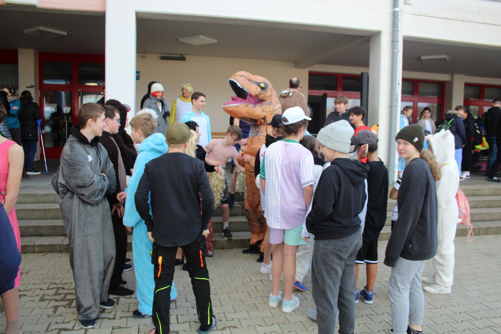 Schon beim Eintreffen der Schülerinnen und Schüler am Freitagnachmittag wurde deutlich, dass sich auch die Jugendlichen auf diesen besonderen Anlass gefreut und keine Mühen gescheut hatten, um mit ihren Kostümen zu überzeugen. Schnell waren die Fotos für die Jury geschossen und die Zeit für die Aufnahme des vorher einstudierten Tanzes lief. 50 Minuten hatten die Klassen Zeit um das perfekte Video aufzunehmen.