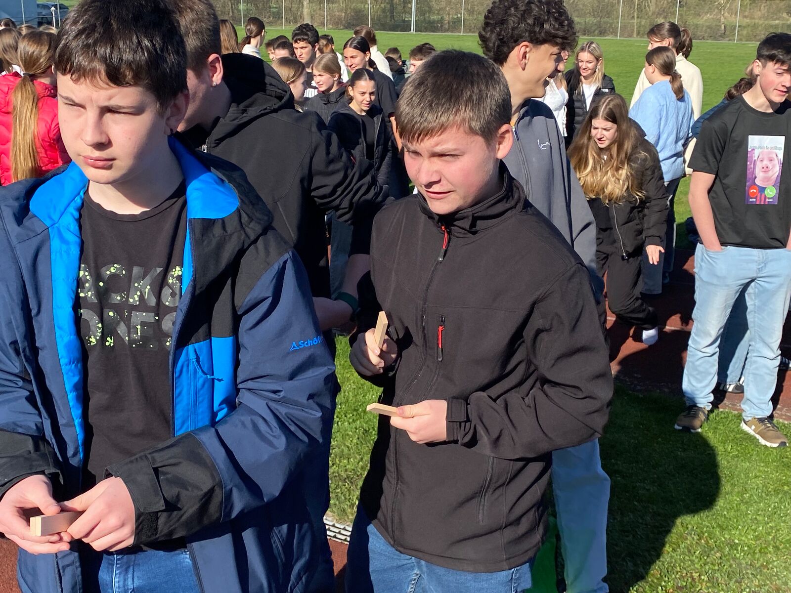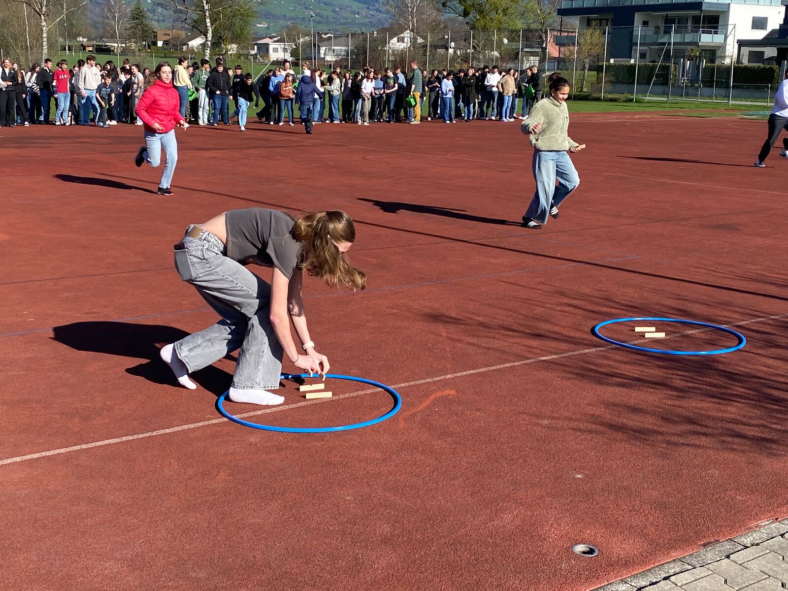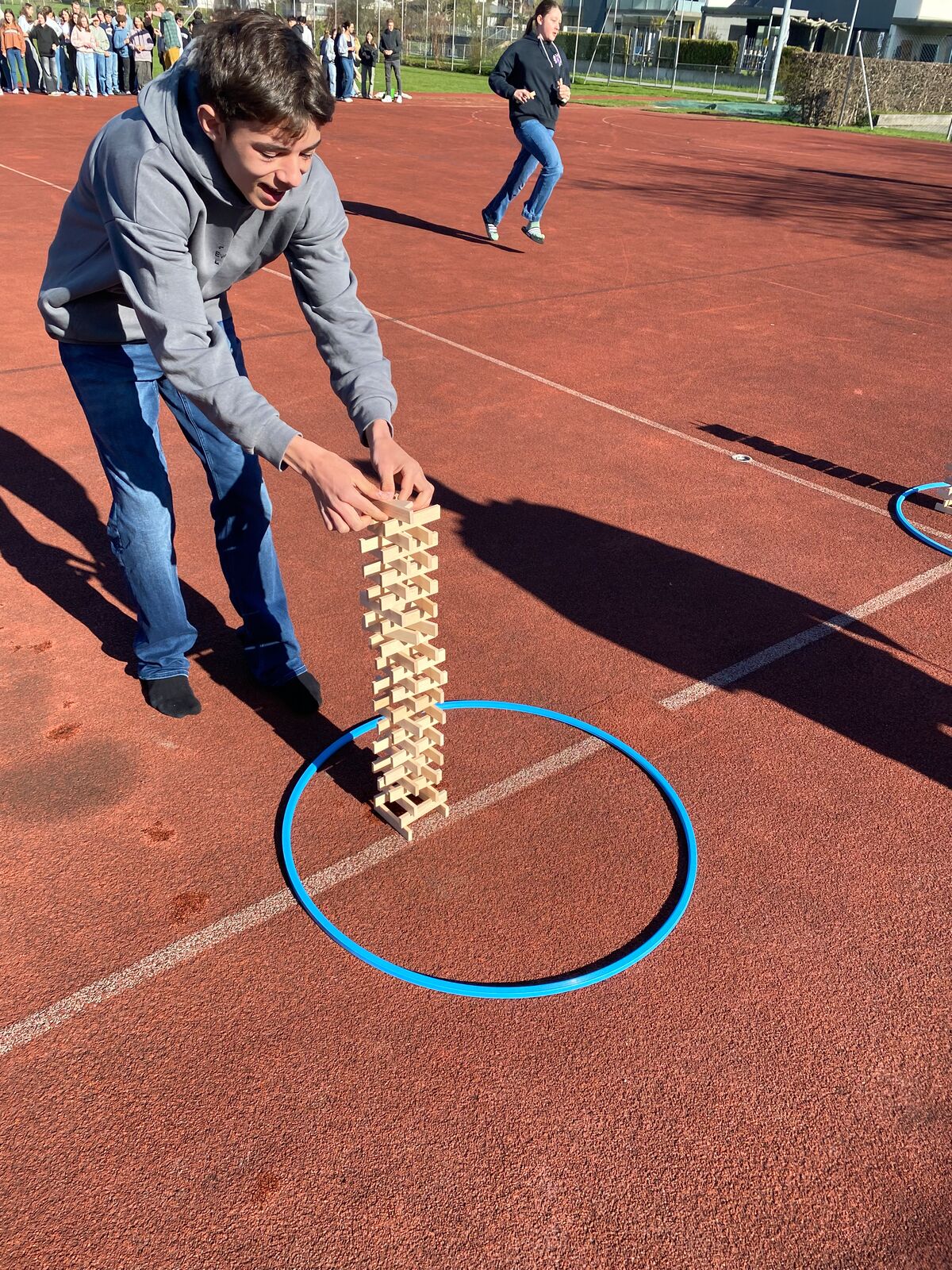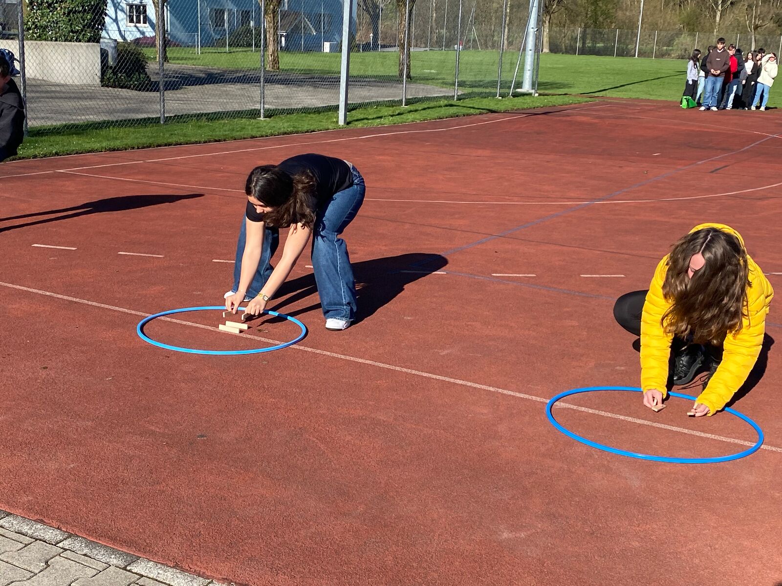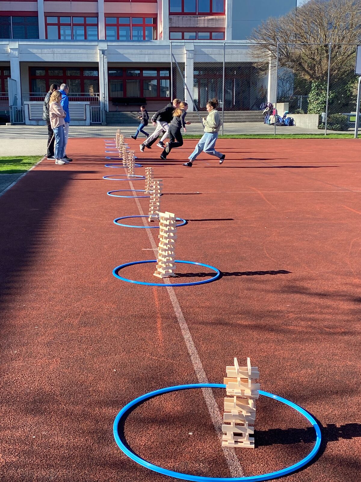 Heute war auf unserem Pausenplatz einiges los – der Frühling ist da, perfekt für die nächste Runde Mini-Games! Bei strahlendem Sonnenschein traten alle Klassen gegeneinander an, um die höchste Klötzchenturm-Konstruktion zu meistern. Begleitet von mitreissender Musik und lautstarkem Anfeuern der Klassenkameradinnen und -kameraden gaben die Teams ihr Bestes.