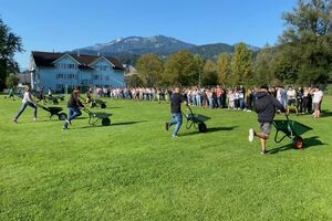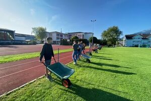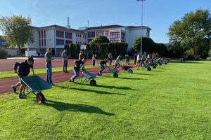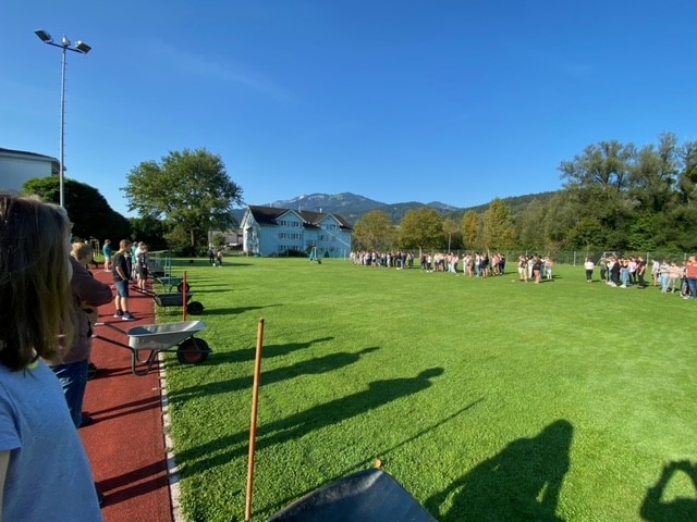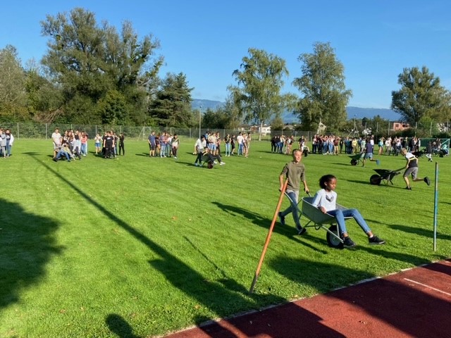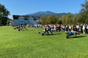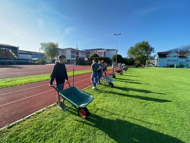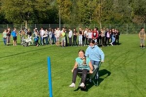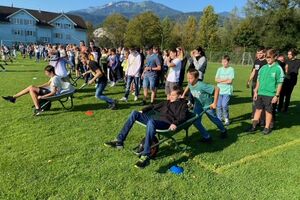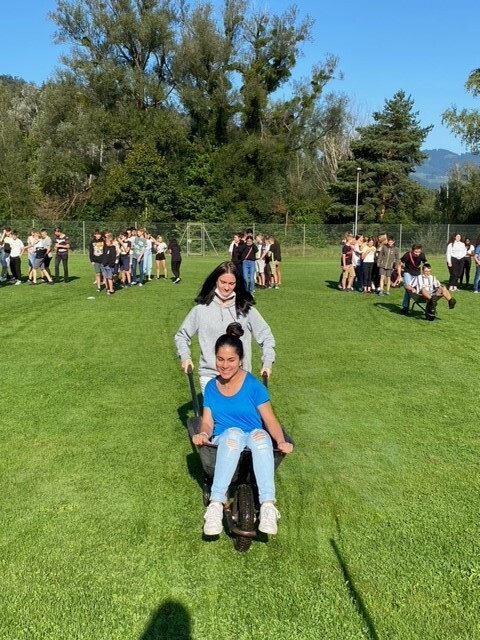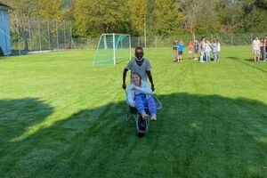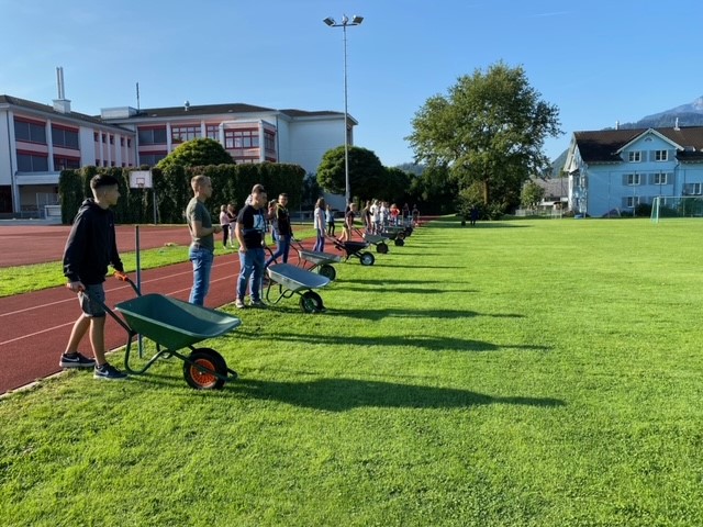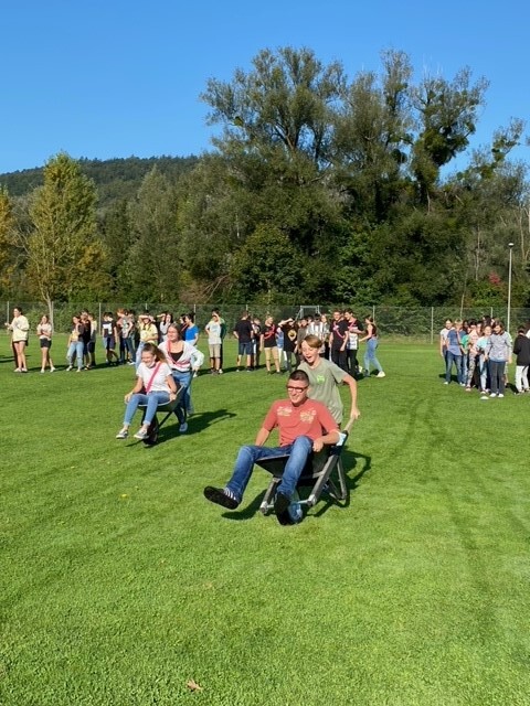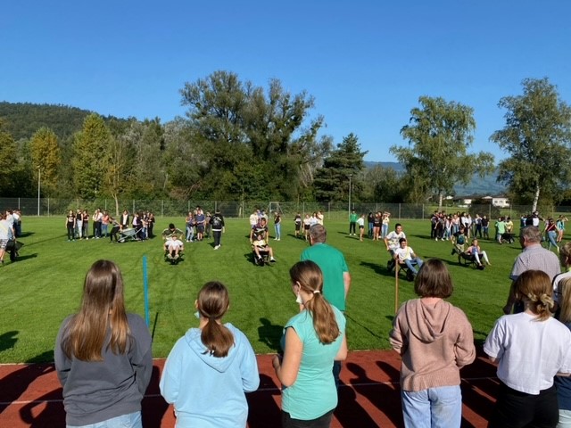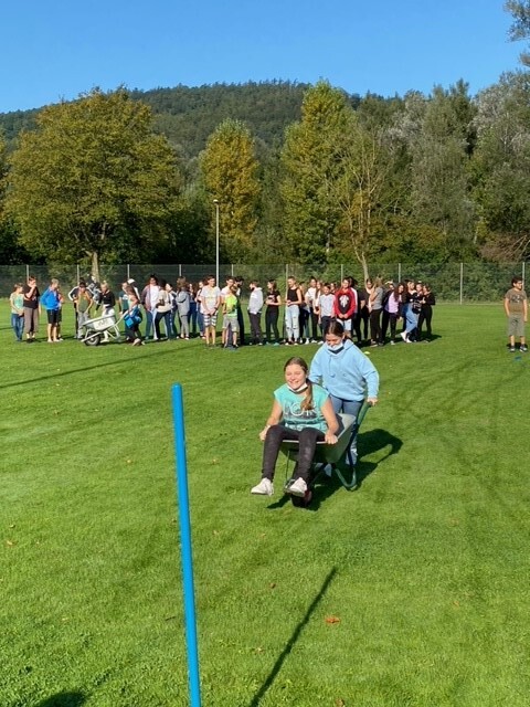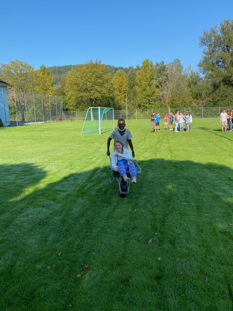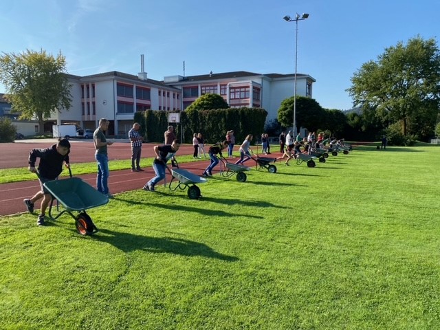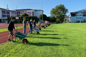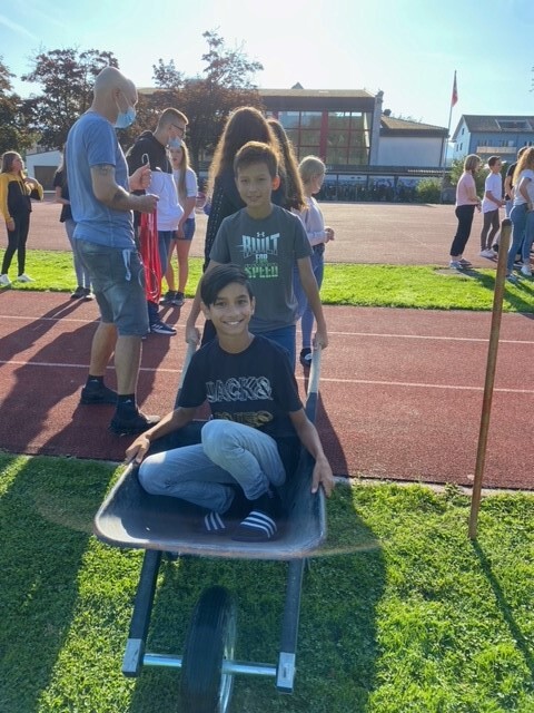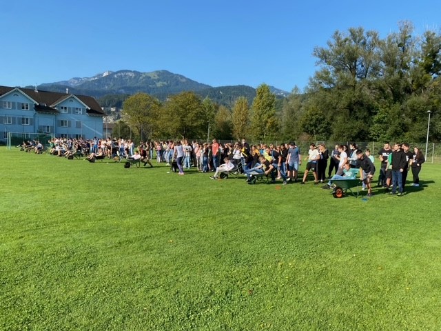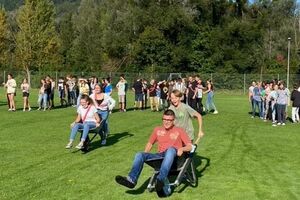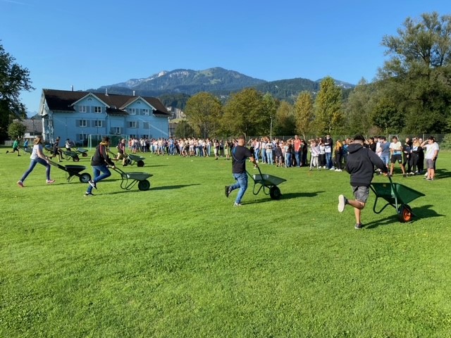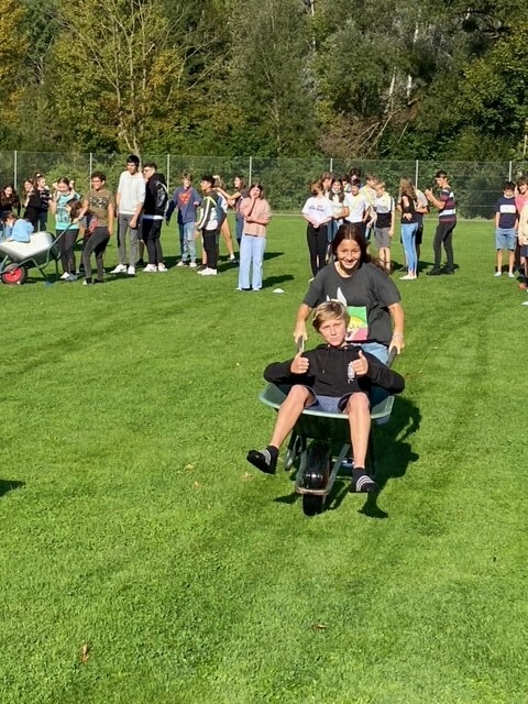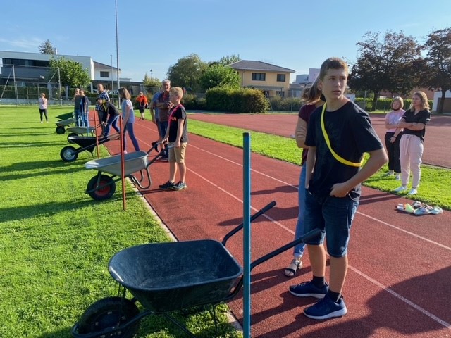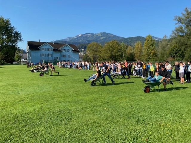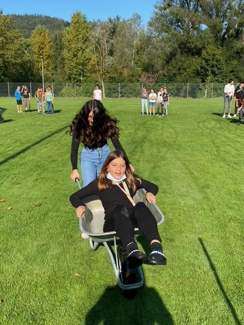 Der Auftakt bildete am 13. September das Schubkarrenrennen. Eine Stafette, bei der die Klasse ihre Mitglieder mit einer Schubkarre auf die andere Seite des Spielfeldes transportieren muss. Um das Spiel gewinnen zu können muss der Läufer nicht nur über Schnellkraft und eine ausgefeilte Fahrtechnik verfügen, ebenso wichtig und gefragt sind das Gleichgewichtsverhalten des Mitfahrers. Den Sieg in dieser Disziplin fuhr die Klasse 3sb von Martin Stieger ein. Herzliche Gratulation dazu.