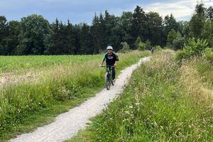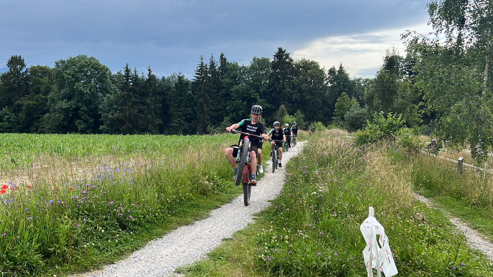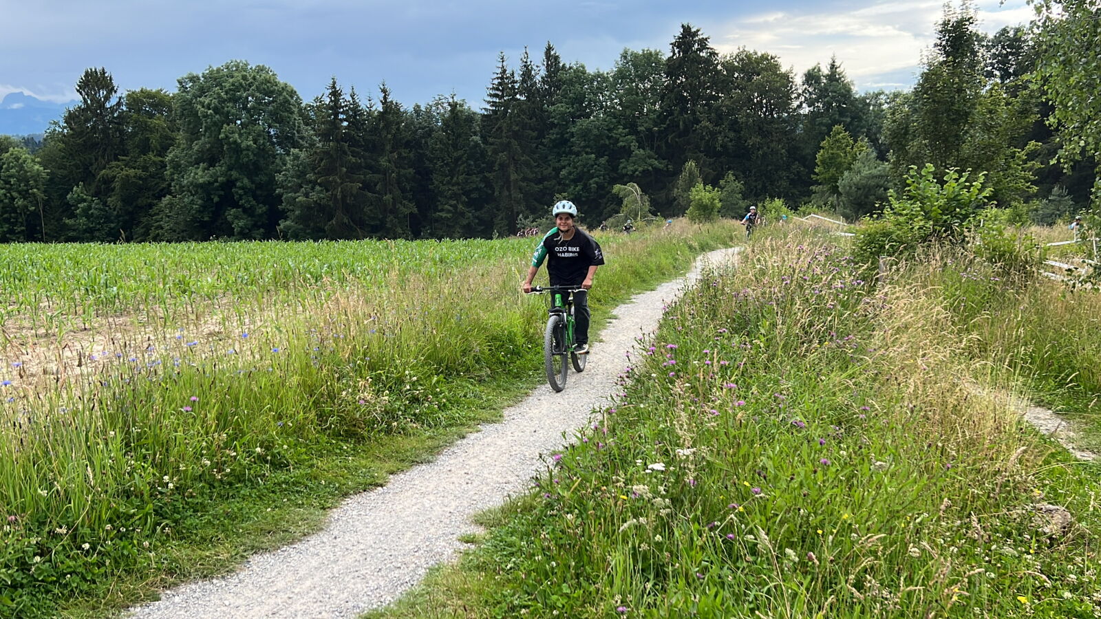 Anschliessend durften wir noch für 30 min die Trails, welche in den Wald führten, und den Pumptrack ausprobieren.