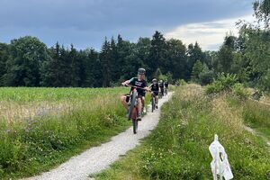 Unsere Klasse 1rb hat diesen Frühling an der Bike to School Challenge teilgenommen und mit Sirin Städler einen Tiktok Dreh durchgeführt. Daher wurden wir an den My Bike Day, den grössten Kinder- und Bike-Event der Schweiz, eingeladen. Wir trafen uns am Mittwoch, den 26. Juni um 6:55 Uhr bei der Bushaltestelle beim OZO. Als alle da waren, stiegen wir in den Car ein. Nach ca. einer halben Stunde Fahrt luden wir in St. Gallen eine weitere Oberstufenklasse und ein Kamerateam ein. Ab dort fuhren wir nochmals ca. zwei Stunden, bis wir endlich in Oberried im Kanton Bern ankamen. Unterwegs durften wir Spiele spielen, miteinander schwatzen oder sogar lernen, da Frau Ludwig uns noch ein paar Matheaufgaben mitnahm.
