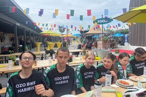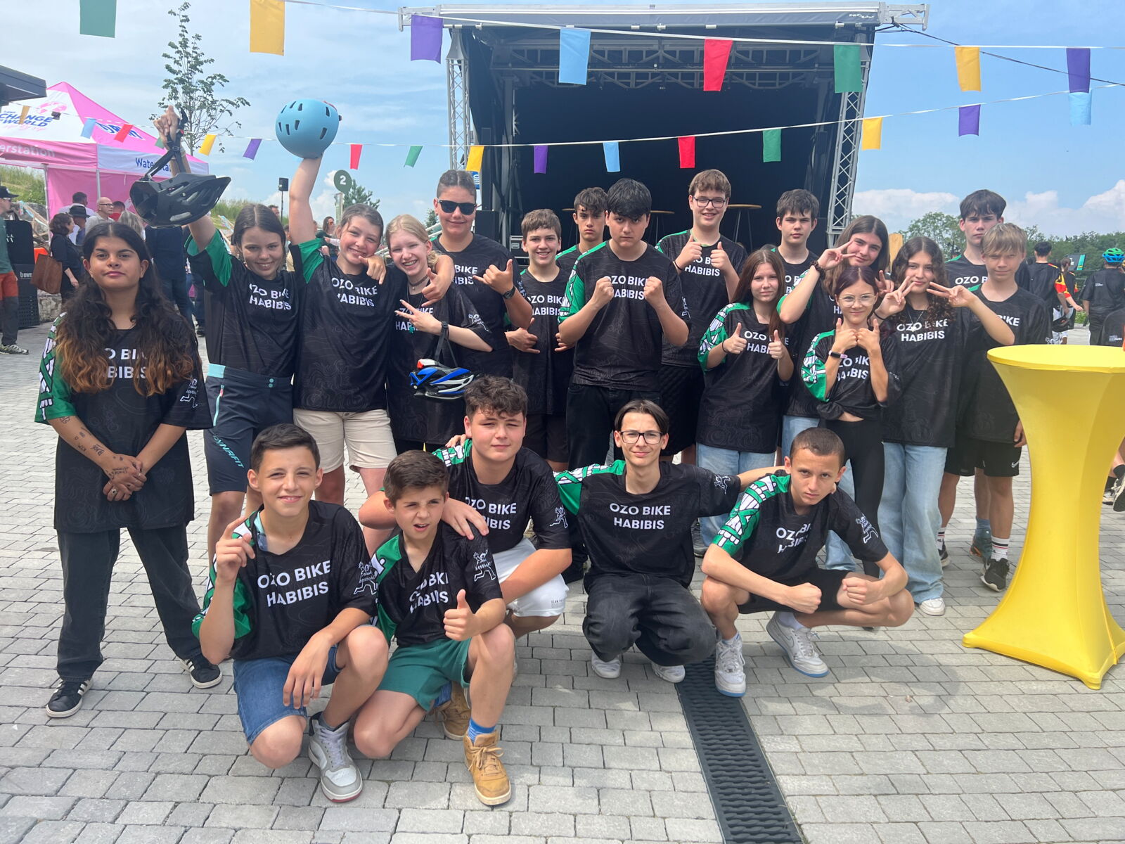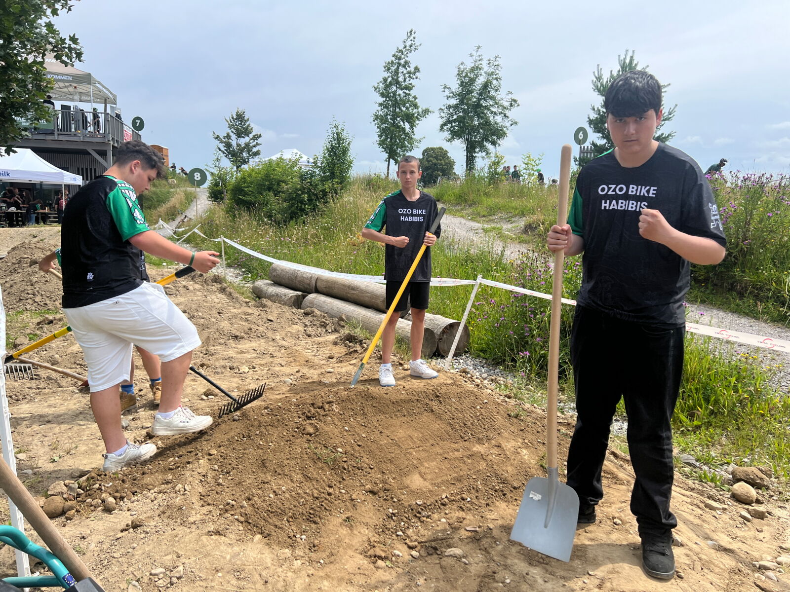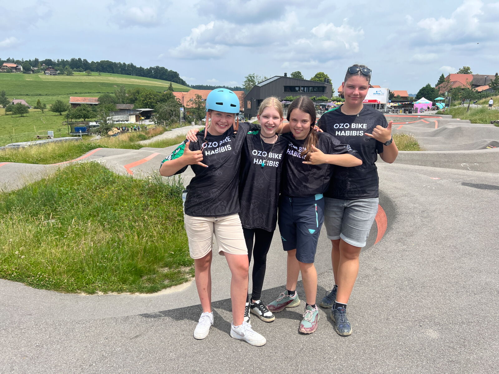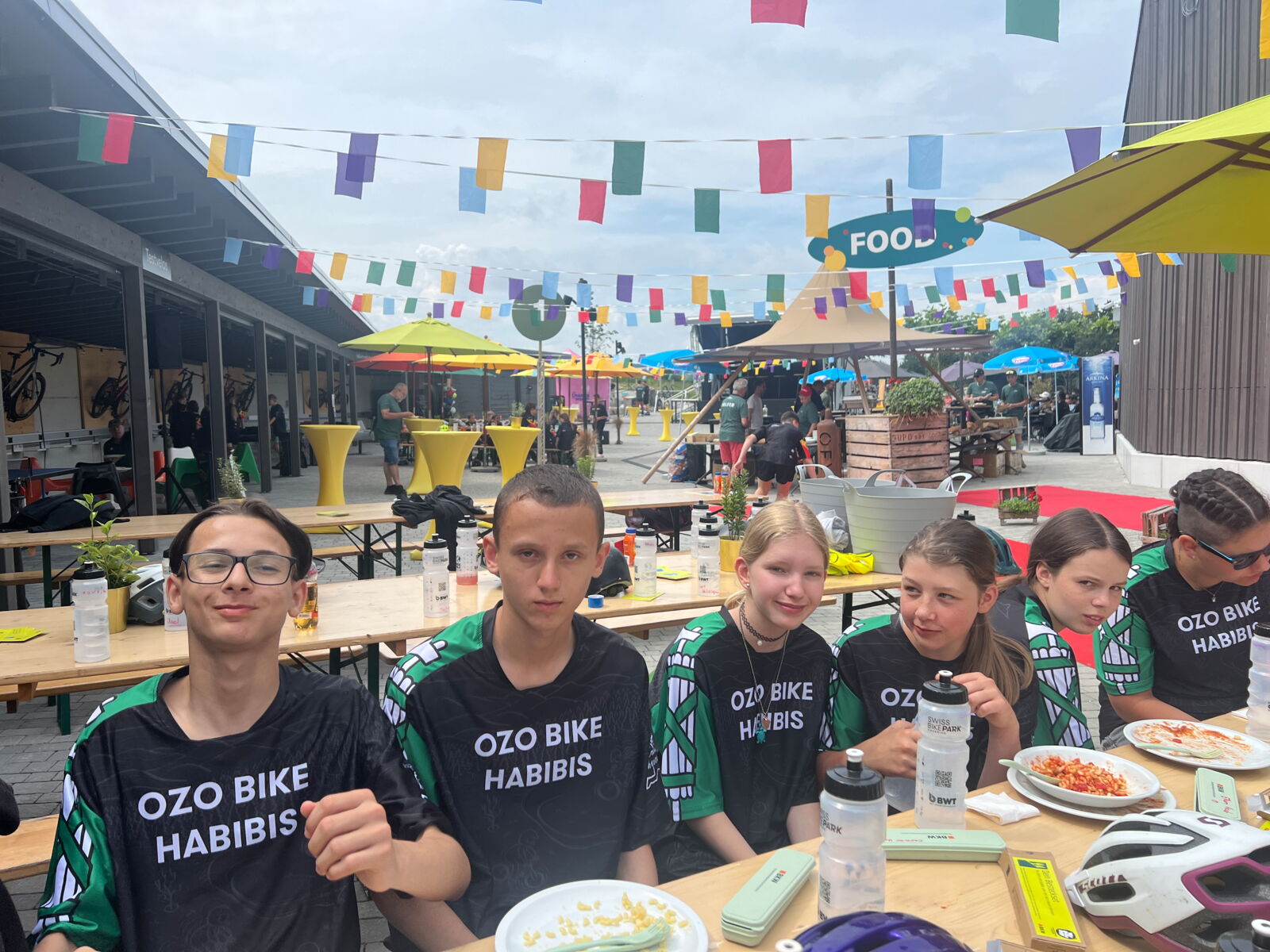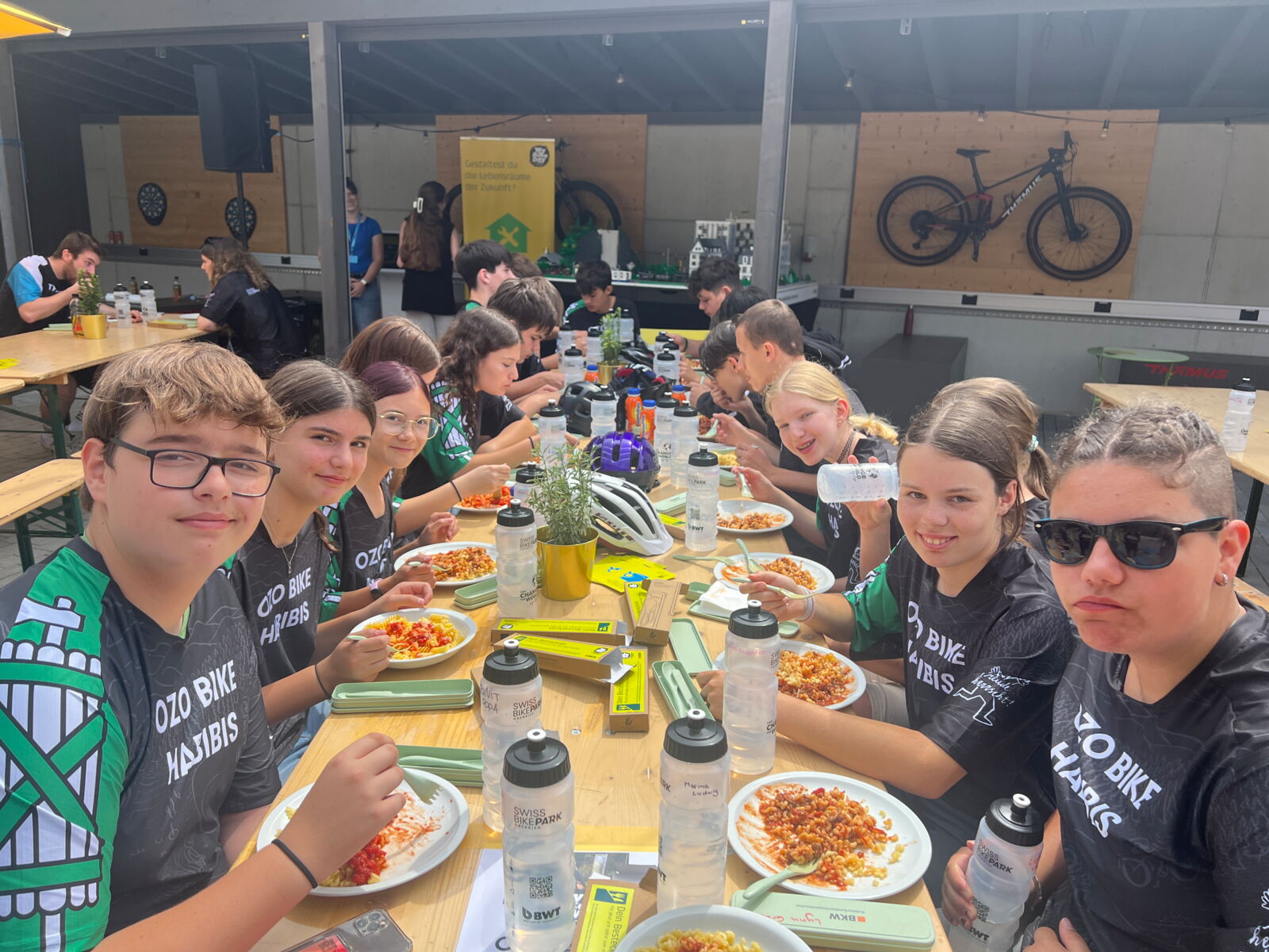 Als wir beim Bikepark ankamen, wurden wir mit tollen T-Shirts ausgestattet, auf welchen unser Teamname «OZO Bike Habibis» stand. Ausserdem bekamen wir alle eine Trinkflasche, die wir zu jederzeit wieder auffüllen durften.