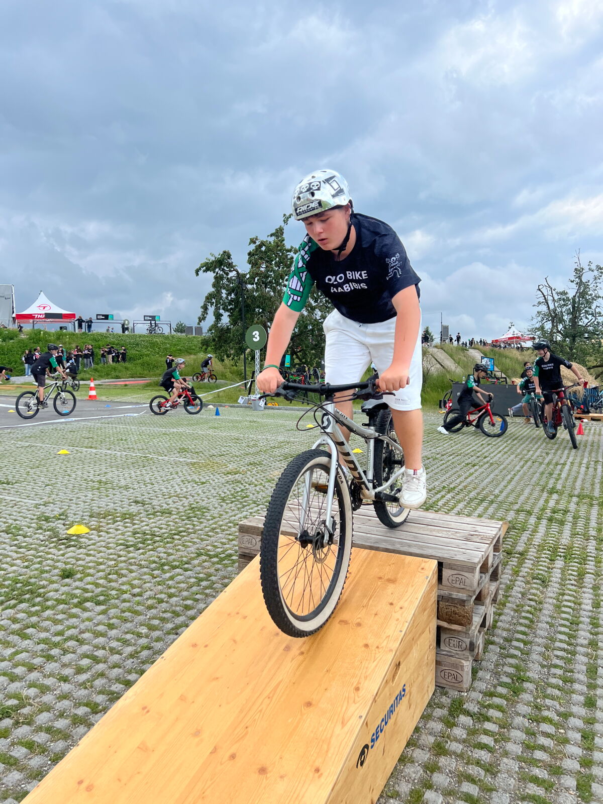 - Posten: Parcours mit den unterschiedlichen Bikes fahren. Es gab Schanzen, Hügel, Treppen, etc.