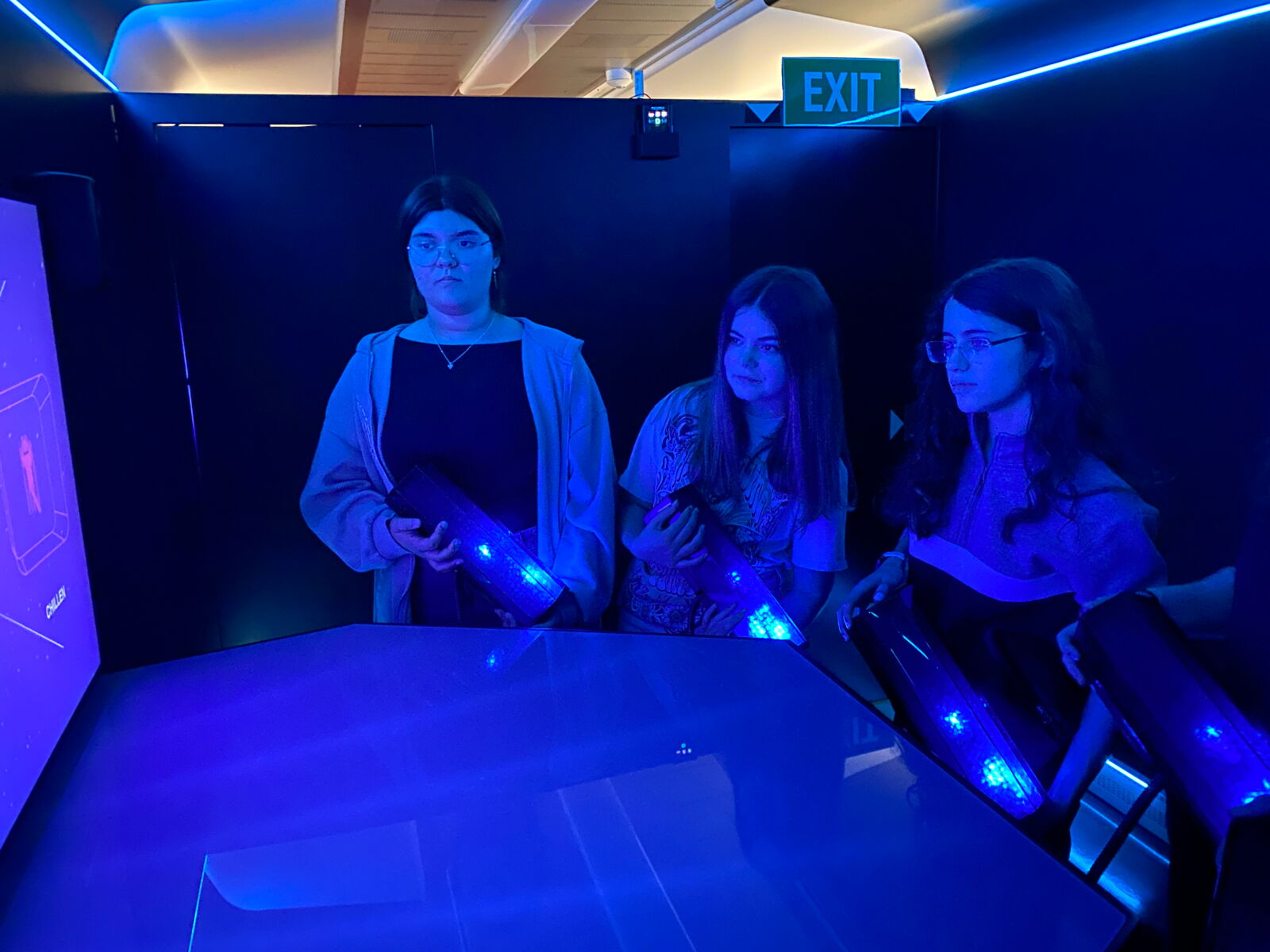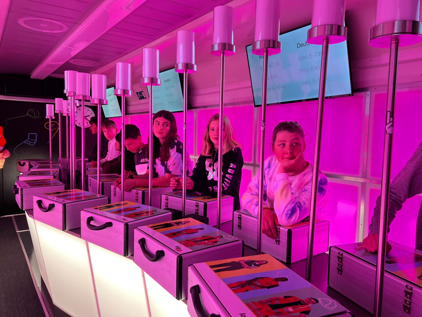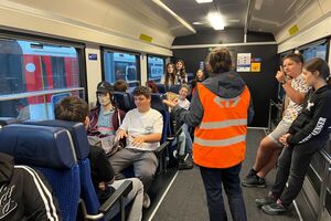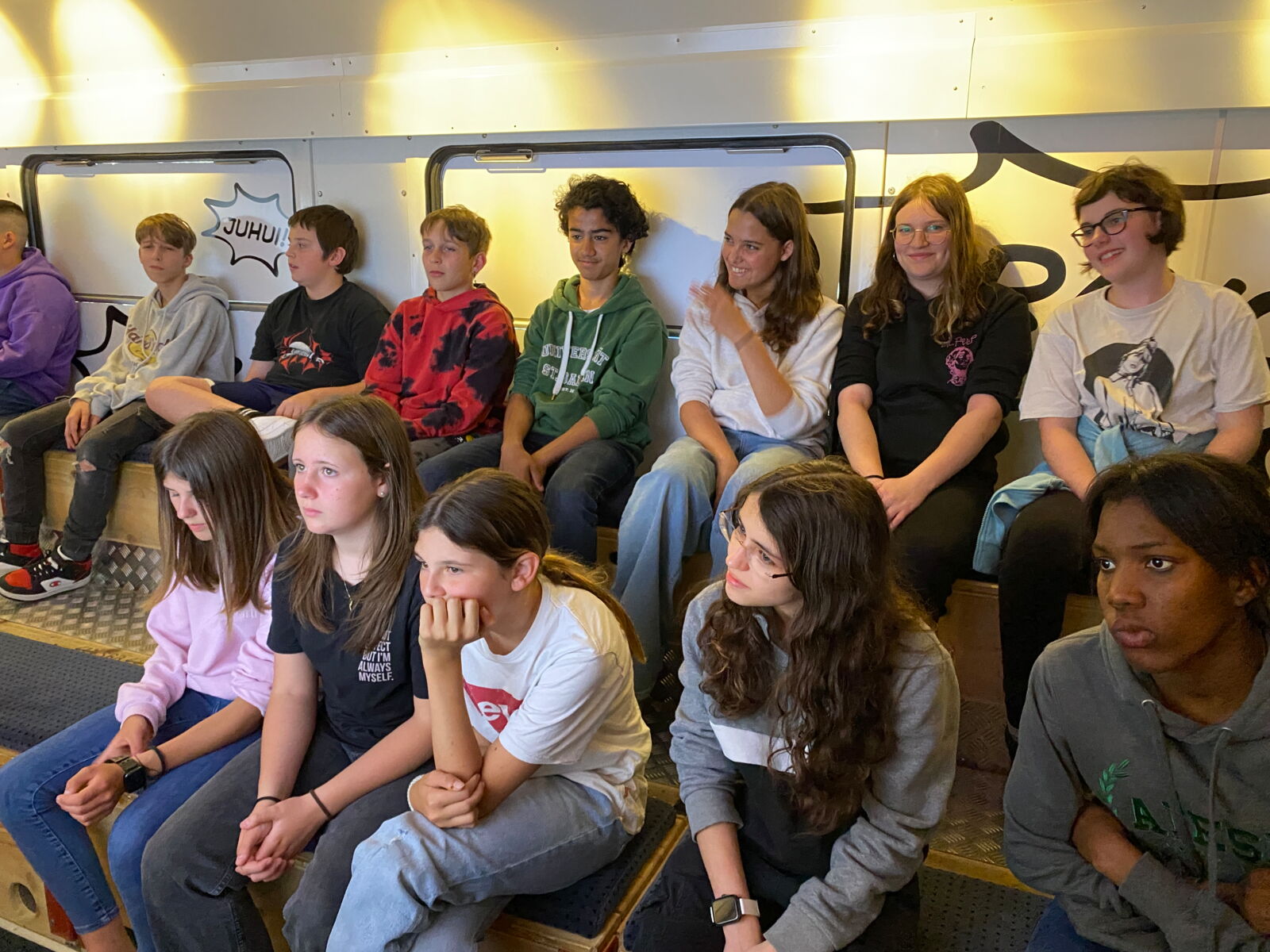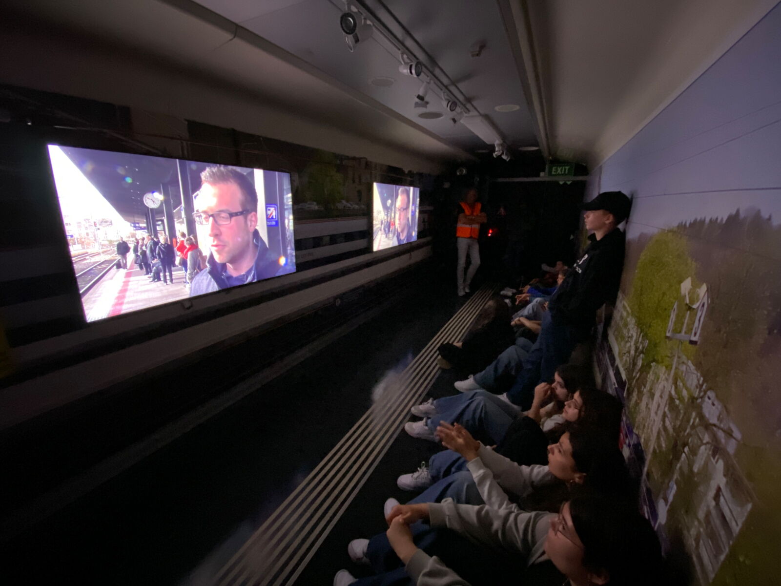 Am Montagmorgen machten wir uns als Klasse gemeinsam auf den Weg nach St.Gallen. Für viele von uns, war es das erste Mal im SBB Erlebniszug. Am Hauptbahnhof in St.Gallen hat uns unsere Ansprechperson abgeholt und uns direkt zum Erlebniszug geführt. Wir deponierten in einem umgebauten Wagon unsere Rucksäcke und Jacken und schon gings los.