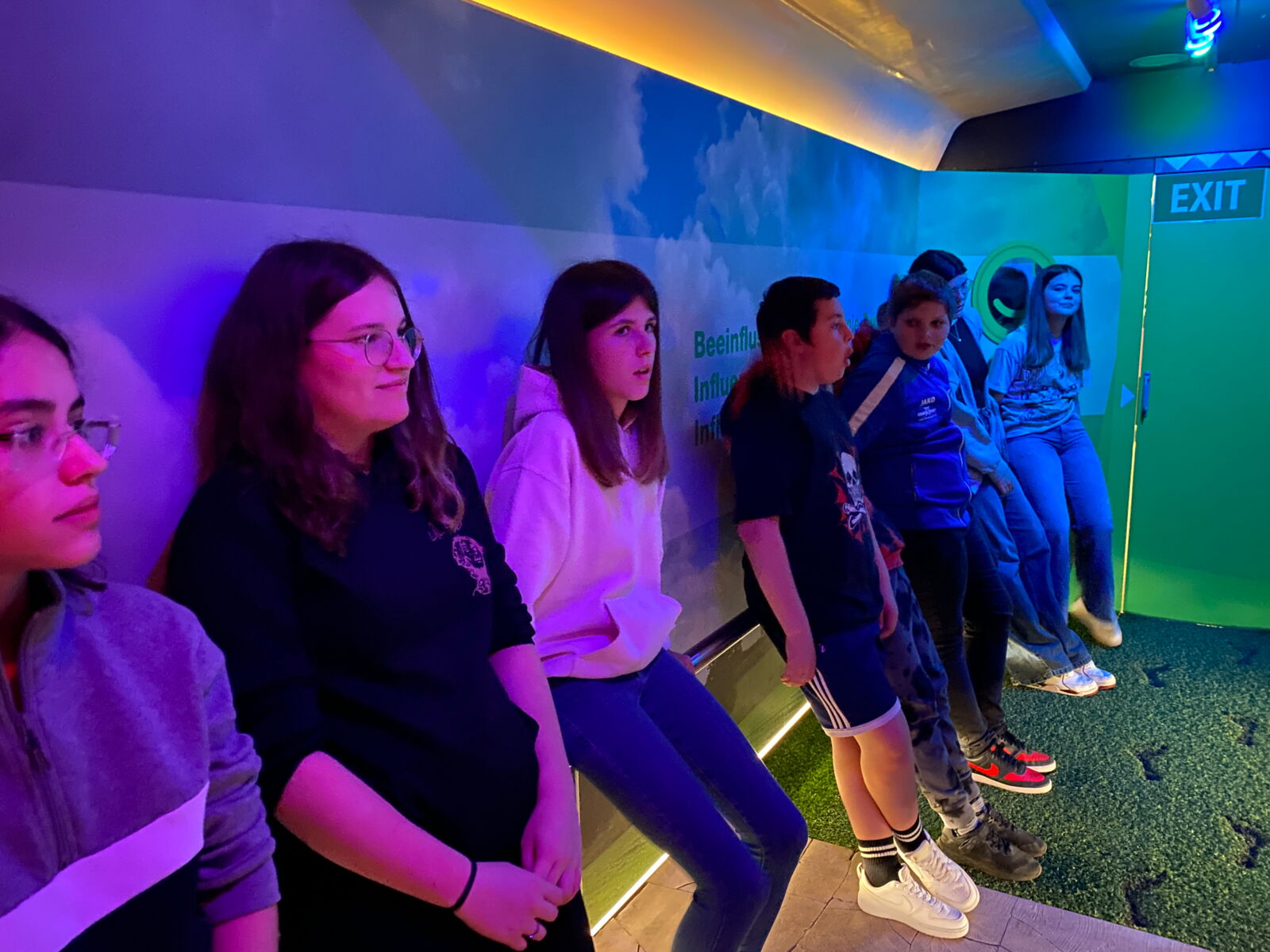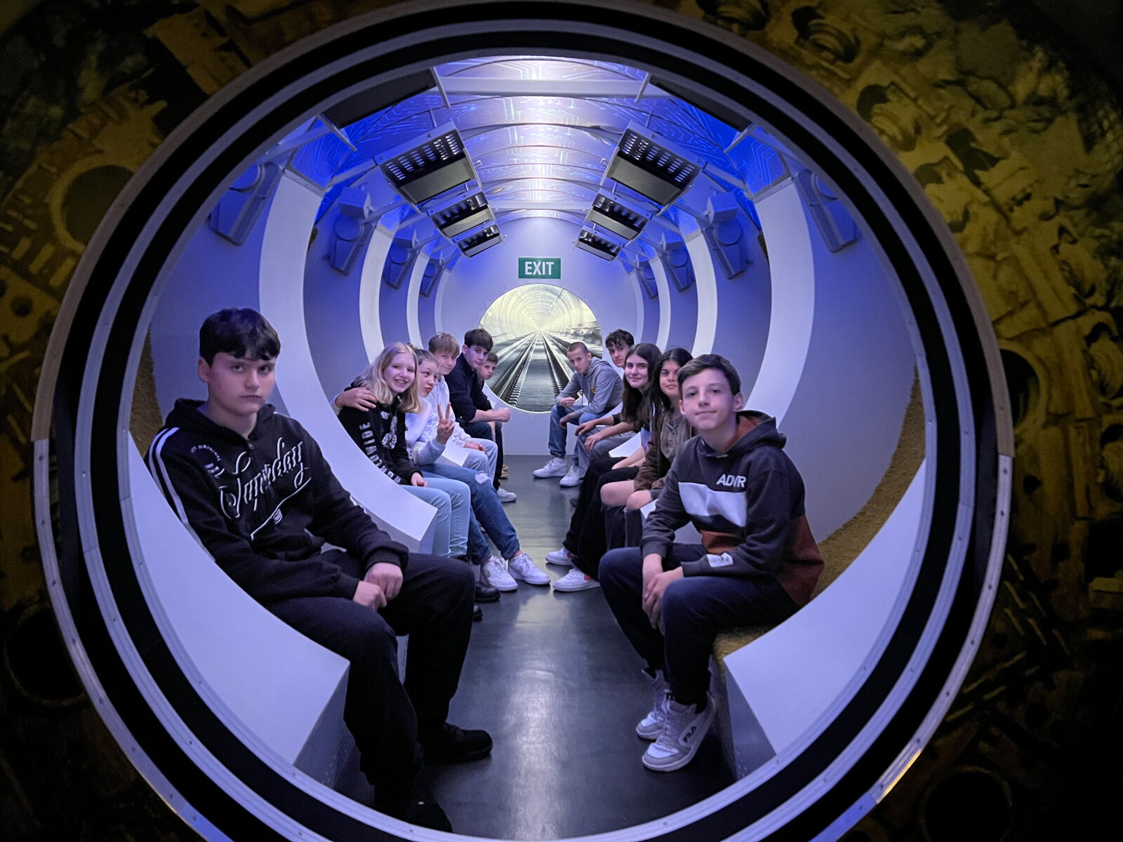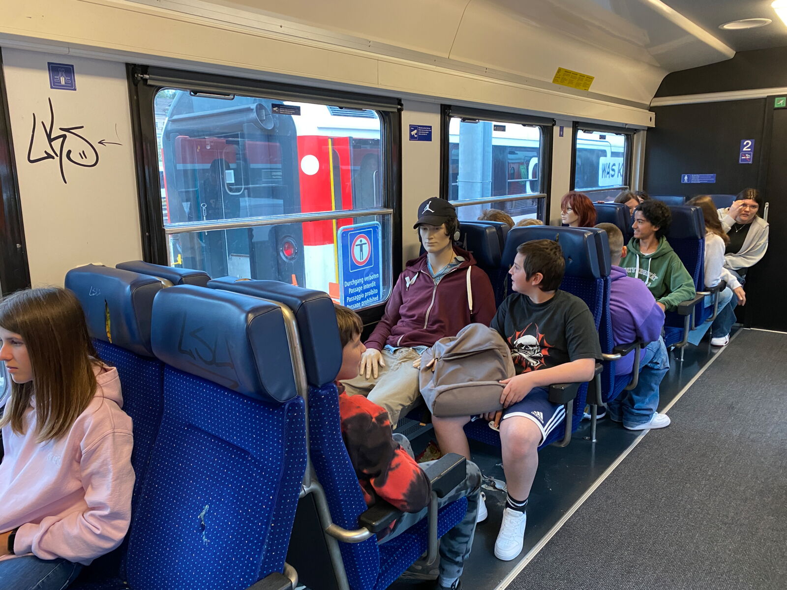 Am Montagmorgen hatten wir noch normal Schule, bevor wir uns um 11:00 Uhr in unserem Klassenzimmer trafen. Gemeinsam gingen wir zum Bahnhof Oberriet, wo wir auf den Zug warteten. Mit diesem Zug konnten wir nur bis Goldach fahren, da es zwischen Goldach und St. Gallen einen Erdrutsch gab, weshalb die Gleise dort gesperrt waren. Somit fuhren wir mit einem Bus weiter bis zum Hauptbahnhof St. Gallen. Wir hatten bereits auf der Hinreise viel Spass im Zug und Bus. Am Bahnhof St. Gallen wurden wir von einer Person begrüsst und anschliessend durften wir den ersten Wagon des Erlebniszugs betreten. In diesem Wagen wurden die Sicherheitsregeln thematisiert und es wurde mitgeteilt, worauf man am Bahnhof achten und wie man sich verhalten soll, wenn es zu Gefahren kommt. In einem weiteren Wagen ging es ums Verhalten. Dass man zum Beispiel unterwegs im ÖV nicht laut Musik hören, die Sitze nicht verschneiden und die Füsse nicht aufs Polster halten soll. Anschliessend teilten wir uns in zwei Gruppen auf. Die erste Gruppe ging in einen weiteren Teil des Erlebniszugs zum Thema Energie. Wir lernten erneuerbare Energien, wie z.b. Wind-, Wasser-, Solar-, Biomasseenergie, kennen. Anschliessend durften wir mit unseren eigenen Muskelkraft Energie erzeugen und somit eine Microwelle antreiben, die Popcorn machte. Es war sehr streng, aber absolut lustig. Bei einer weiteren Aufgabe zu Energie ging es darum, bei einem Multiplechoicequiz die richtigen Buchstaben zu finden und somit die richtigen Stecker am richtigen Ort einzustecken, um einen Alarm zu betätigen. Diese Aufgabe konnte von allen Teams problemlos bewältigt werden. Dann gingen wir aus diesem Zug raus und betraten einen zweiten Zug, welcher von der zweiten Gruppe bereits absolviert wurde. Dort ging es um Mobilität. Zuerst schauten wir ein kurzes Video über Mobilität. Bei einer weiteren Quiz wurde die persönliche Meinung unserer Klasse abgefragt. Beispielsweise mussten entschieden werden, ob das Auto oder der Zug bevorzugt wird. Oder ob man eher ein Personen oder Robotergesteuertes Fahrzeug bevorzugt. In einem nächsten Wagen durften wir den Gotthard Tunnel aufsprengen. Es öffnete sich die Tür zum nächsten Wagen. In diesem durften wir uns bequem hinsetzen und ein Video über die Neat (Neue Eisenbahn-Alpentransversale) schauen. In einem letzten Abschnitt des Schul- und Erlebnsizugs ging es um die Berufswahl, mit welcher wir uns in der Schule bereits intensiv beschäftigen. Wir hatten alle einen Koffer mit drei Buzzern vor uns. Durch ein Quiz konnten alle herausfinden, welche Berufe des Verkehrs zu einem persönlich passen würden. In einem abschliessenden Klassenquiz konnten wir Fünfzehn von Fünfzehn Fragen richtig beantworten und durften dabei sogar noch einen Gutschein gewinnen. Es war ein cooler Tag im Schul- und Erlebniszug St. Gallen.