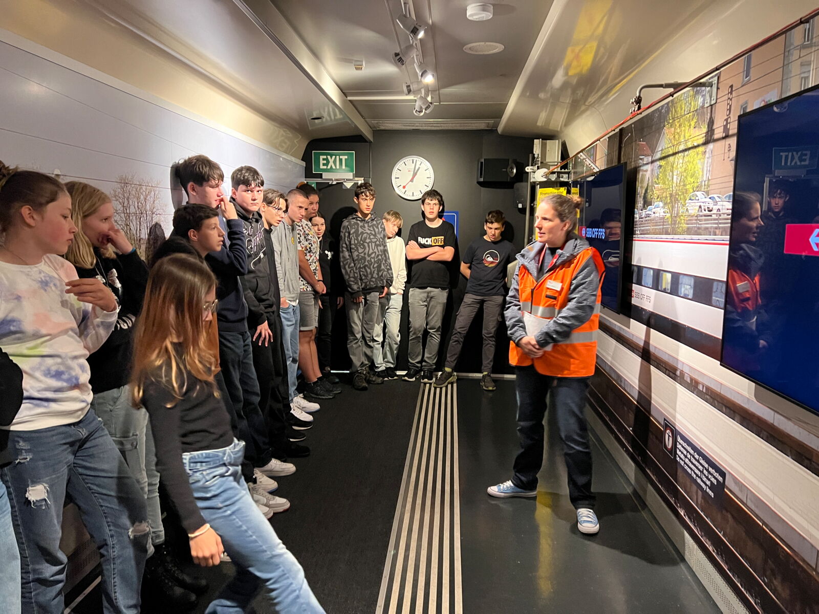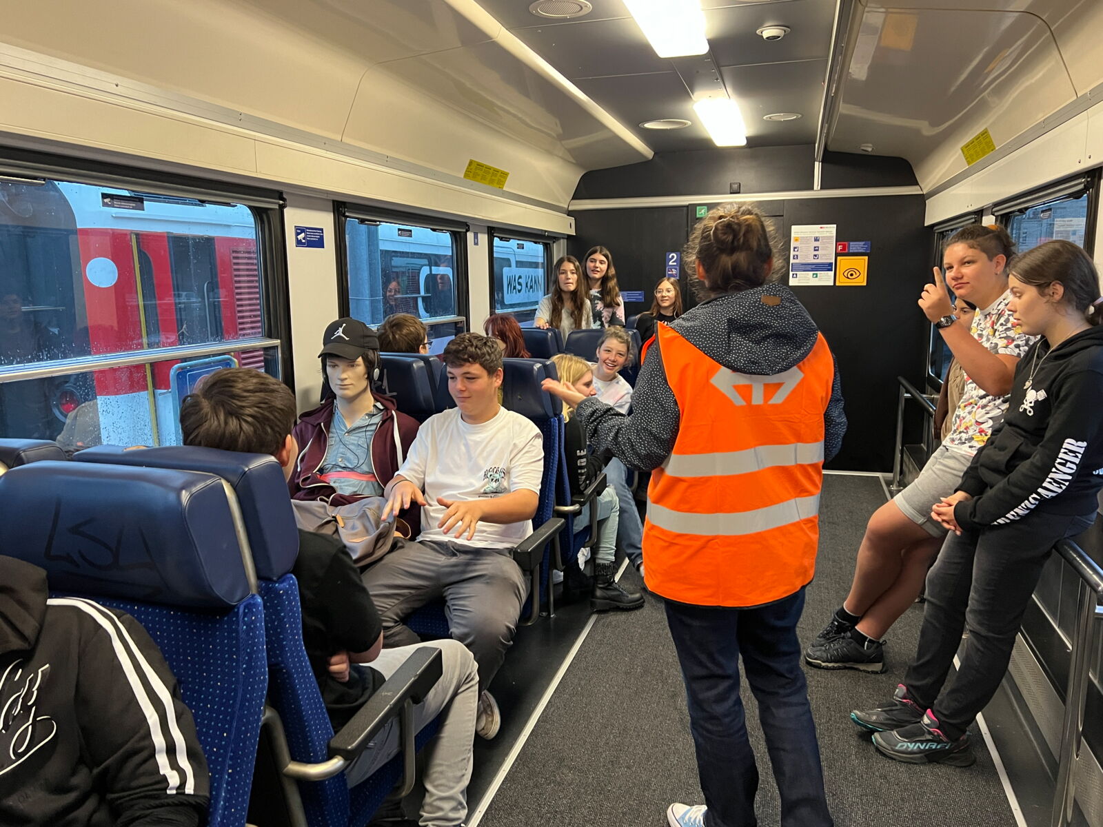 An zwei unterschiedlichen Tagen machte sich die 1ra und 1rb auf den Weg nach St.Gallen um im SBB Erlebniszug mehr über die Themen Sicherheit, nachhaltige Energie, Mobilität und Berufswahl zu erfahren.