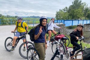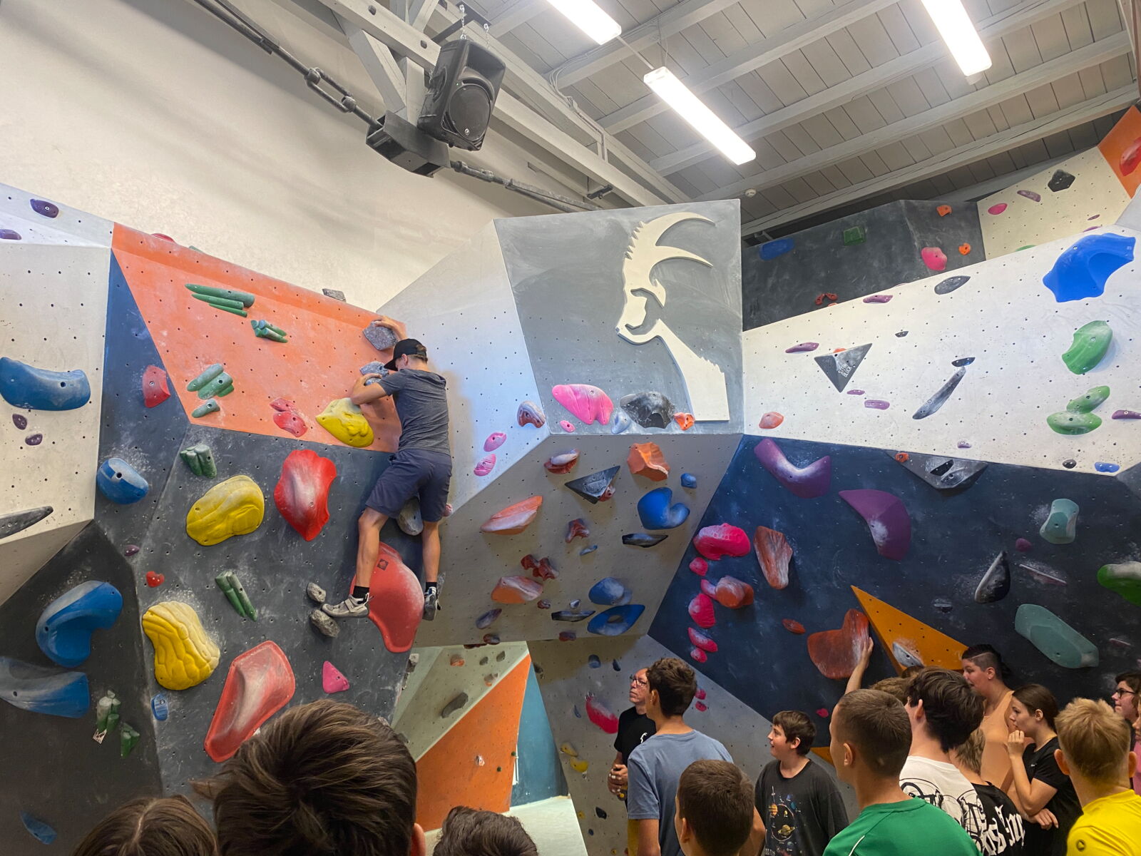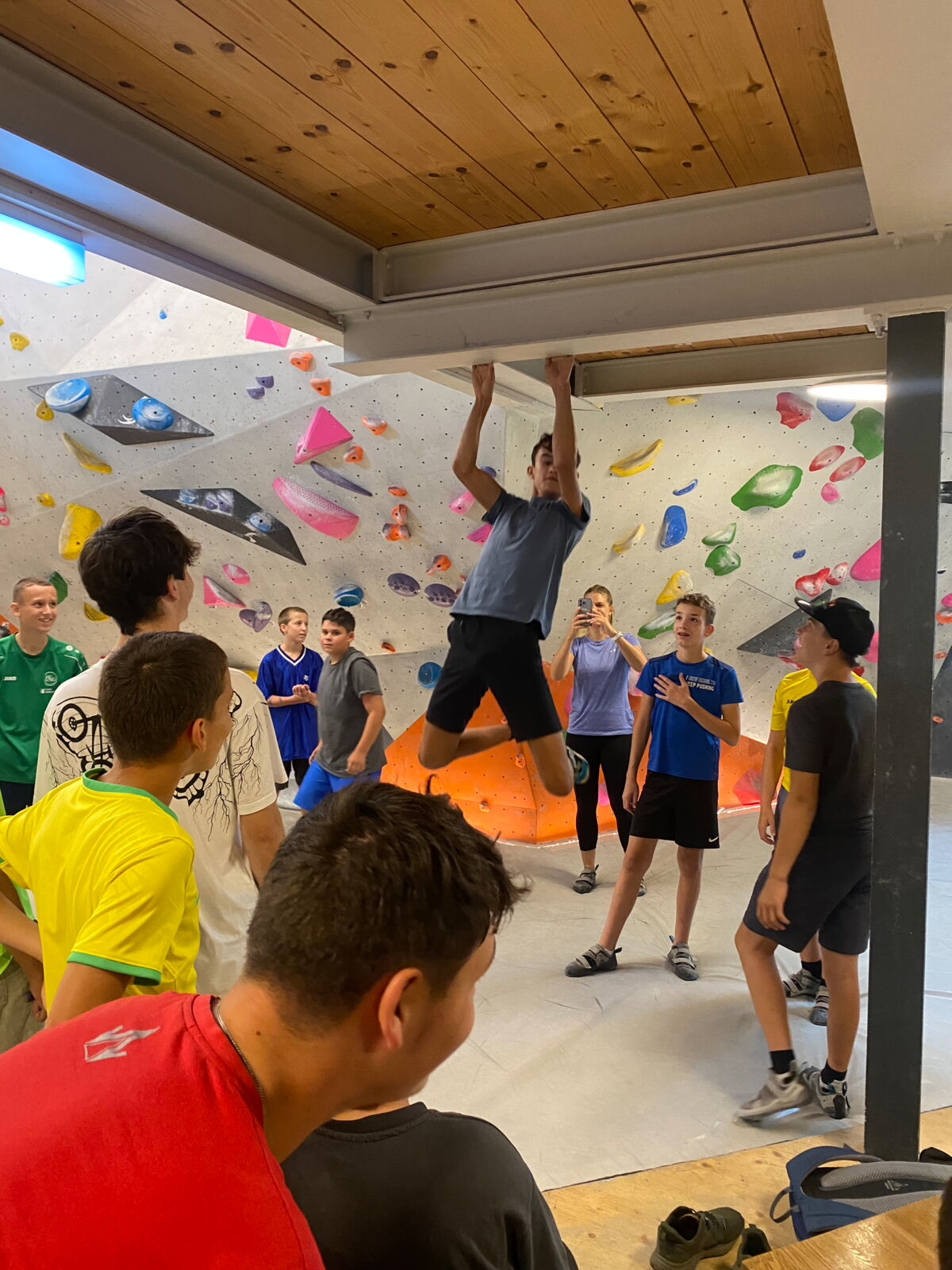 Am 20. August 2024 trafen wir uns morgens an der der Schule. Zuerst mussten die Lehrpersonen die Kinder zählen. Dann gings los. Wir fuhren mit dem Fahrrad nach Montlingen und dann über die Grenze nach Österreich. Da machten wir die erste Pause. Wir tranken etwas und warteten bis alle da waren. Dann fuhren wir weiter und hatten viel Spass. Als wir an der Kletterhallte Steinblock ankamen, hat der Besitzer uns gute Tipps gegeben uns geholfen uns einzuwärmen und schon durften wir losklettern.