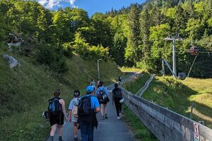 Bei prächtigem Wetter versammelten sich am Montagmorgen die beiden Klassen 2sa und 2sb mit dem Fahrrad auf dem Pausenplatz. Gut gelaunt ging es mit dem Rad der Ill entlang nach Feldkirch. Nachdem die ersten Schweisstropfen von der Stirn getrocknet waren, stellten wir die Räder am Bahnhof ab und fuhren mit dem Zug ins Montafon nach Vandans. Zu Fuss nahmen wir den Anstieg nach Lautschau in Angriff, welches nach einer guten Stunde erreicht wurde. Oben angekommen wurden die Klassen in zwei Gruppen aufgeteilt. Ein Teil nahm den Klettersteig mit kleinem Flying Fox in Angriff, und der andere Teil begab sich in den Waldseilpark. Der Spassfaktor war bei beiden Aktivitäten entsprechend hoch. Voller Stolz der Höhe getrotzt zu haben, wurde das Mittagessen direkt neben dem Speichersee an einer kleinen Feuerstelle eingenommen. Gestärkt und immer noch mit bester Laune marschierten wir zum Start des Alpin-Coasters. Immer zu zweit konnte die ca. 2.6 Kilometer lange Rodelbahn runtergesaust werden. Nach diesem Erlebnis machten wir uns erneut zu Fuss zum Bahnhof Vandans auf, wo wir den Zug nach Feldkirch nahmen und schliesslich abermals die Radtour nach Oberriet meisterten. Den Kopf voller schöner Erinnerungen und etwas müde endete schliesslich dieser erlebnisreiche Tag.