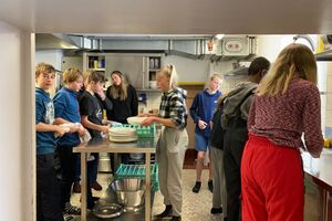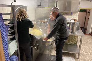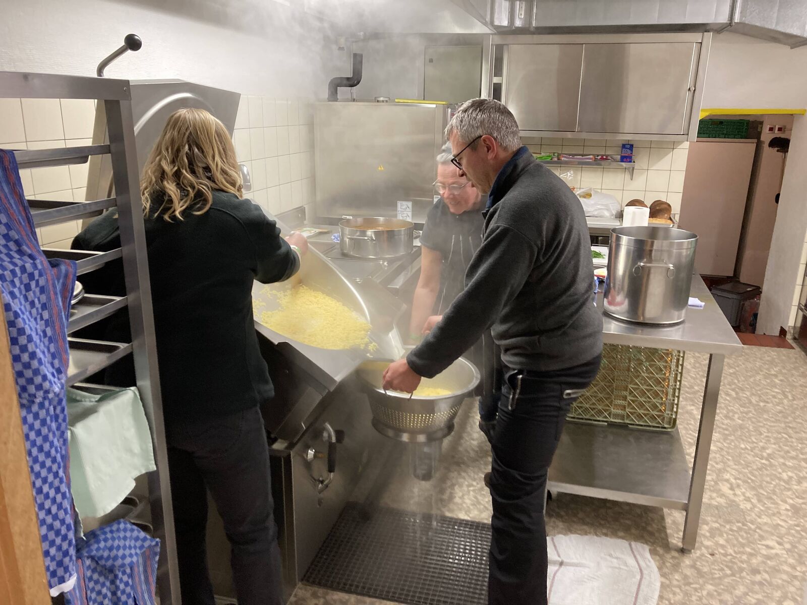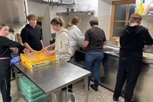 auch im Team, Erste-Klasse-Team, Köchinnen, Leiter und Leiterin, alles super, die Lehrer, also kein meckern