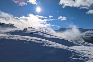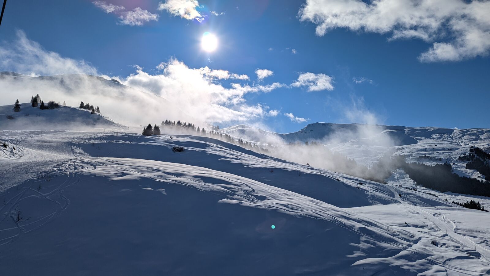 Morgens um halb acht, als wir unsere Augen öffneten, konnten wir einen wunderschönen Sonnenaufgang geniessen. Als wir uns angezogen hatten, gingen wir nach unten, um zu frühstücken. Um neun Uhr standen wir mit unseren Skiern und Snowboards in den Startlöchern. Danach ging es endlich los. Wir genossen einen sonnigen Skimorgen auf den Pisten von Obersaxen. Am Mittag trafen wir uns im Lagerhaus und dort assen wir. Nach dem Mittagessen wurde verkündet, dass wir am Abend Nachtskifahren gehen dürfen. Dieses Angebot war aber freiwillig. Leute, die nicht gehen wollten, konnten im Aufenthaltsraum verschiedenste Brettspiele spielen. Nachmittags waren wir erneut auf der Skipiste. Schüler, welche nicht skifahren konnten, wählten das Alternativprogramm und gingen schlitteln. Nach der Rückkehr vom Ski- und Snowboardfahren gingen wir duschen. Am Abend war dann Nachtskifahren oder Spieleabend angesagt. Viele entschieden sich für das Nachtskifahren, da es ein Highlight war. Nachdem man einige Minuten Fussmarsch hatte, kamen wir beim Schlepplift an. Die Piste war leider nur etwa 100 Meter lang. Es machte aber trotzdem sehr viel Spass diesen Hang hinunterzufahren. Einige rutschten nur auf den Skischuhen den Hang hinab oder fuhren durch den tiefen Schnee. Nach dem Nachtskifahren kamen wir entkräftet im Lagerhaus an. Im Speisesaal gab es noch Schoko Pudding. Schliesslich gingen wir schlafen und freuten uns auf den nächsten Tag.