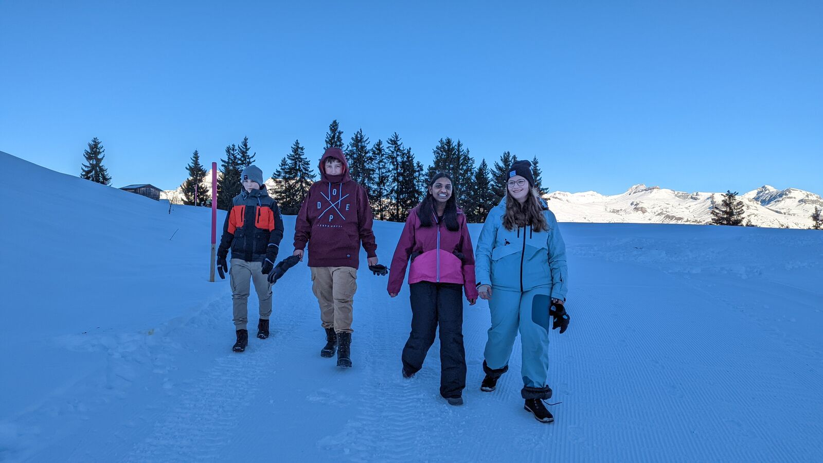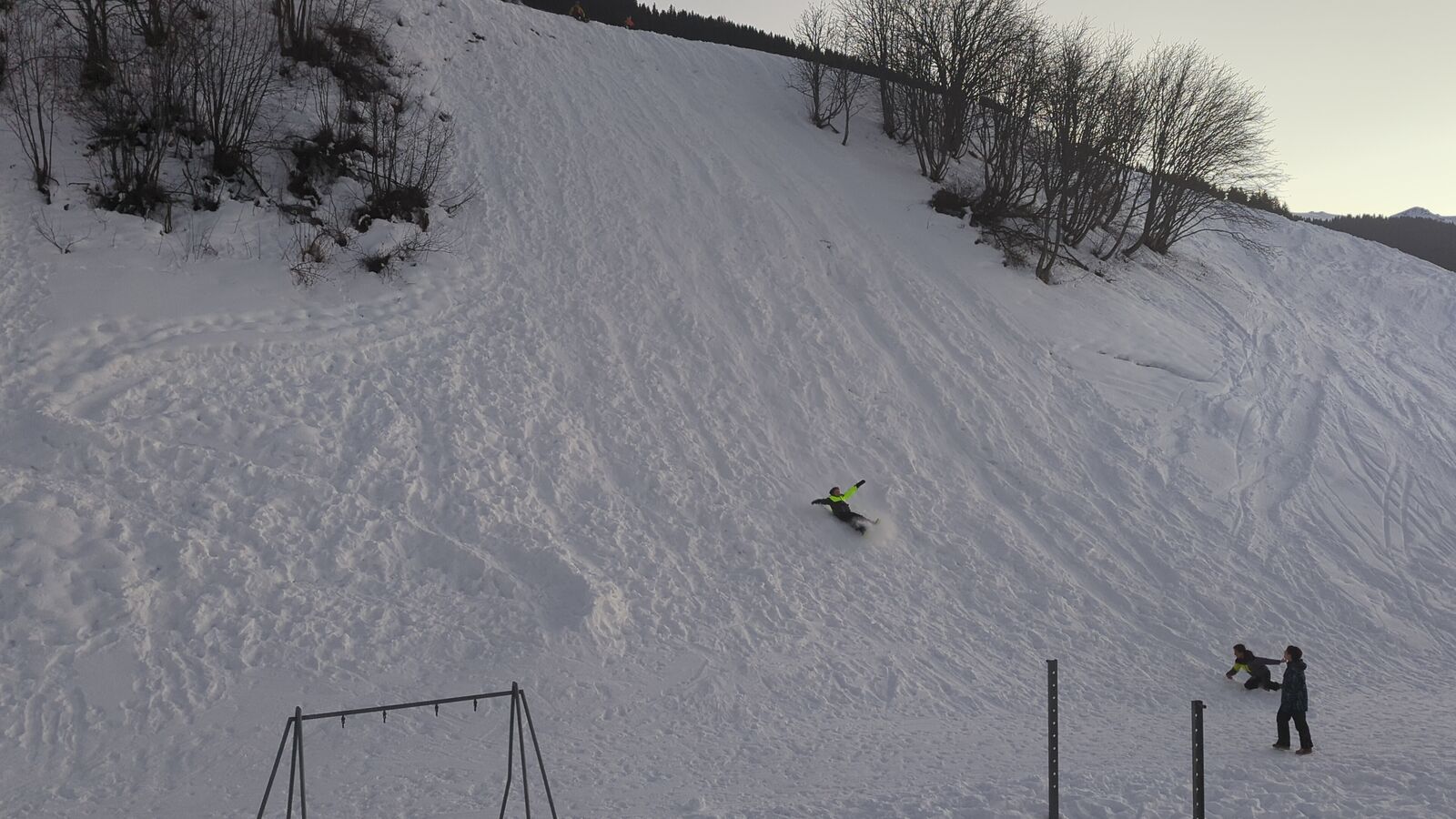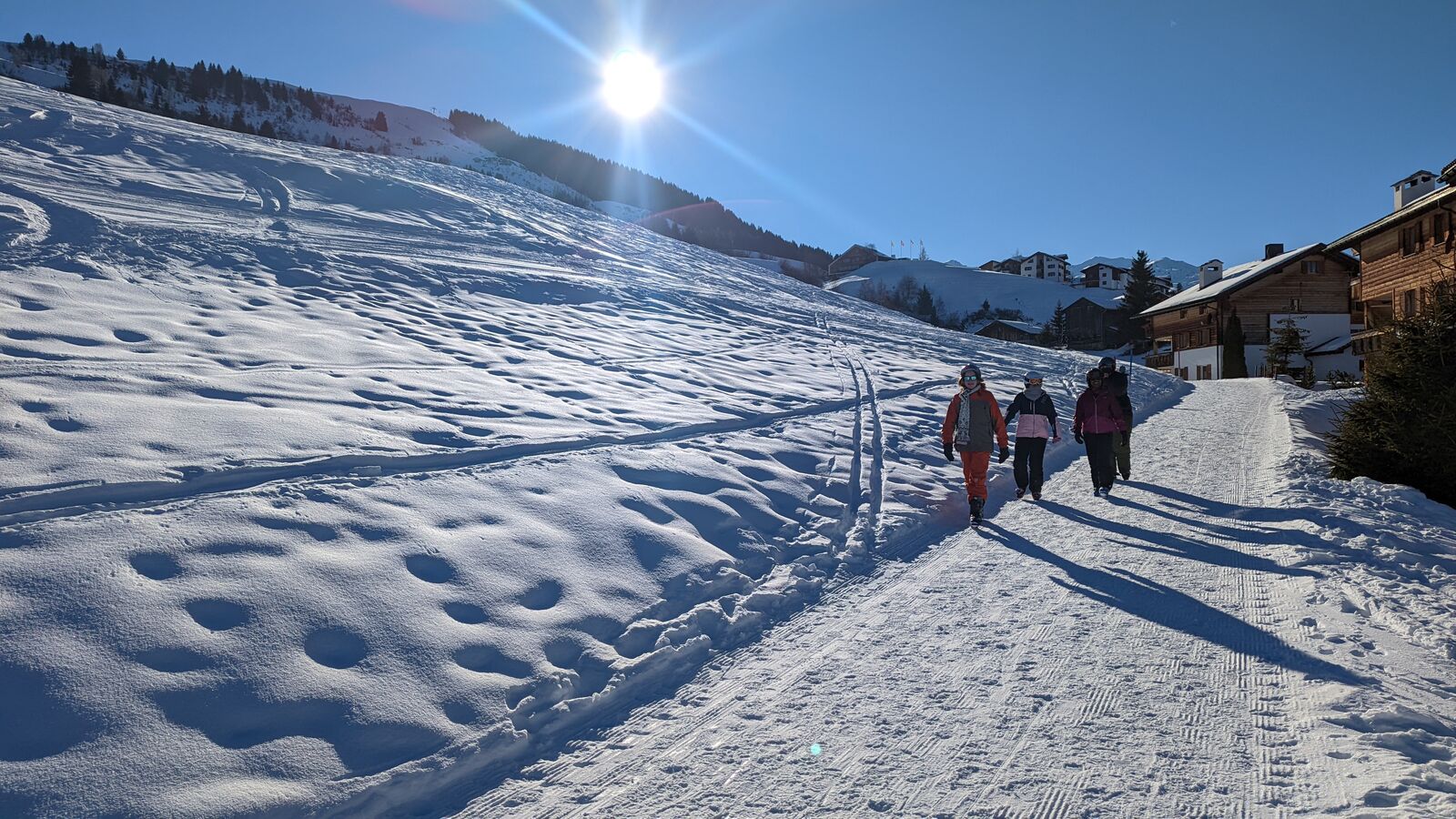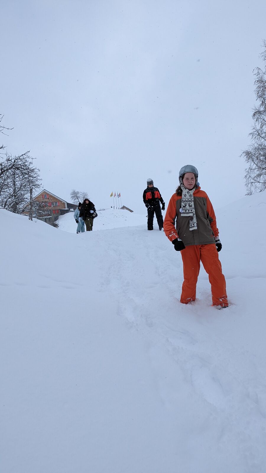 Der Morgen begann um 7:30 Uhr, als uns die Lehrer weckten. Nachdem wir uns angezogen hatten, sind wir frühstücken gegangen. Vor dem Frühstück haben alle für Jay’s Geburtstag gesungen. Als wir damit fertig waren, haben wir uns warm angezogen, um skifahren zu gehen. Zu unserer Enttäuschung war das Wetter an diesem Morgen sehr schlecht. Trotzdem wollten wir uns nicht einschüchtern lassen und sind eine Runde Tiefschnee fahren gegangen. Das alternative Programm unternahm eine Schneeschuhwanderung durch den Tiefschnee und ging anschliessend Schlittschuhlaufen. Wir waren froh, als wir am Mittag etwas Leckeres zu essen bekamen und uns aufwärmen konnten. Mit viel Energie sind wir nachmittags wieder auf die Piste gegangen. Am Abend hatten wir ein Klassenduell, welches die Klasse 1sa organisierte. So mussten wir beispielsweise Wörter mittels Pantomimen erklären und erraten. Bevor wir unser Dessert geniessen konnten, haben wir noch ein paar Runden «Werwölfeln» gespielt. Nach dem leckeren Dessert ging es ein letztes Mal in diesem Lager ins Bett.
