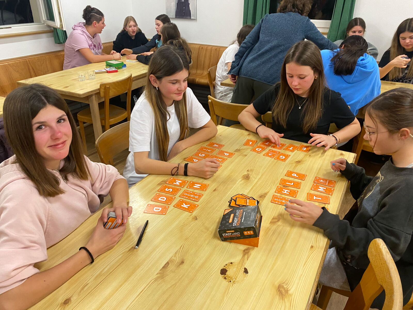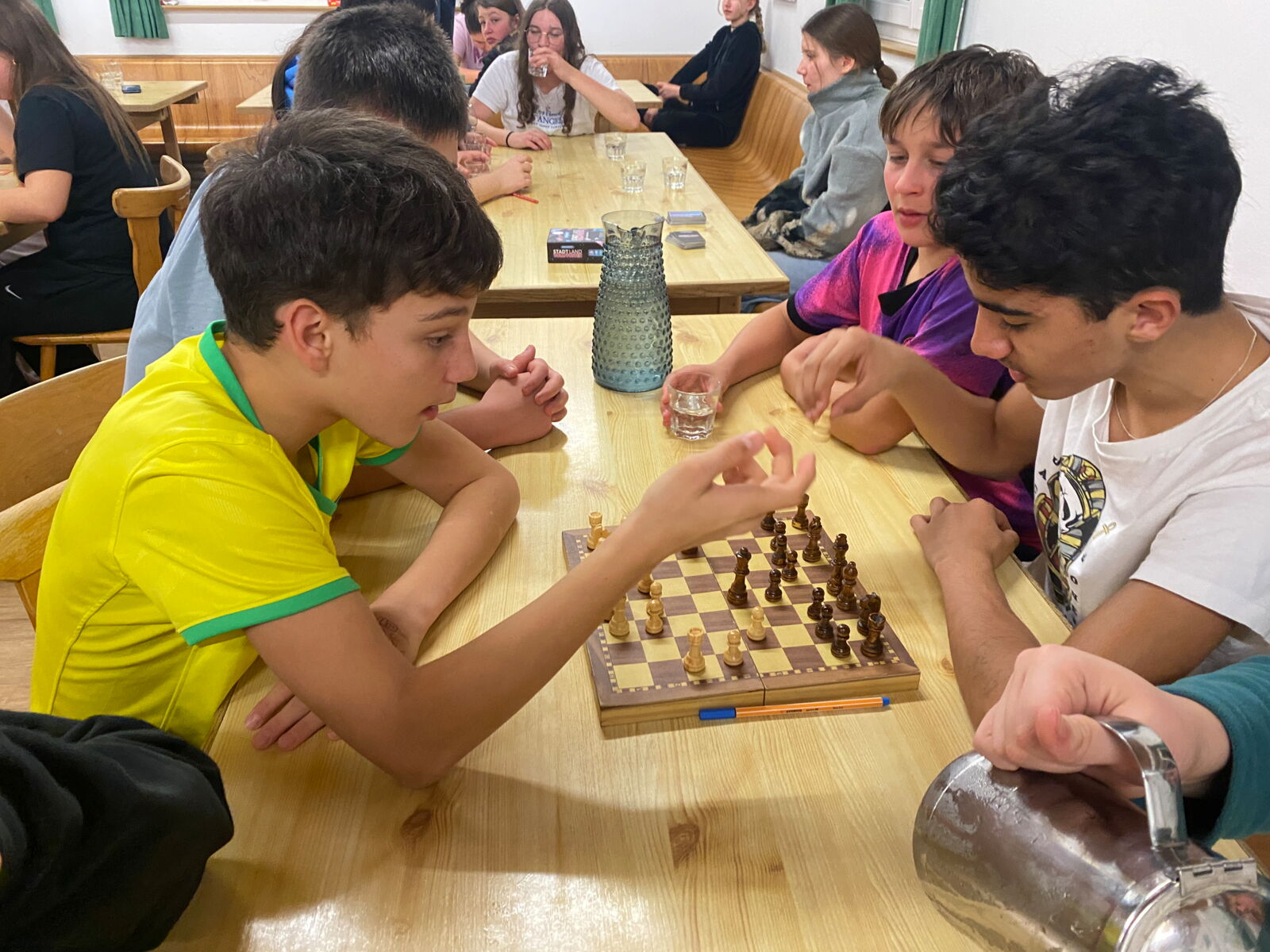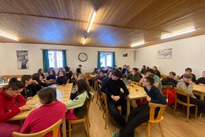 Das Traumwetter hielt an, und die Pisten waren in bestem Zustand. Einige wagten sich sogar bis nach Andermatt. Am Abend stand der Spieleabend auf dem Programm. Zunächst spielten wir alle zusammen ein grosses Spiel, bei dem sogar das Leiterteam mitmachte. Anschließend vergnügten wir uns in kleinen Gruppen mit Gesellschaftsspielen.