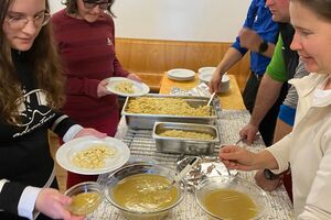 Der zweitletzte Tag wurde noch einmal voll ausgekostet. Bei strahlendem Sonnenschein verbrachten manche den ganzen Tag auf der Piste und nahmen ihr Lunch im Rucksack mit, um das riesige Skigebiet in vollen Zügen zu geniessen. Erst um 16 Uhr kehrten sie zurück. Zum Abendessen gab es Bratwürste mit verschiedenen Beilagen. Doch das Highlight des Tages war die grosse Disco am Abend. Wir durften uns Lieder wünschen und hatten jede Menge Spass. Zur Erfrischung gab es zwischendurch sogar Glace als Dessert.