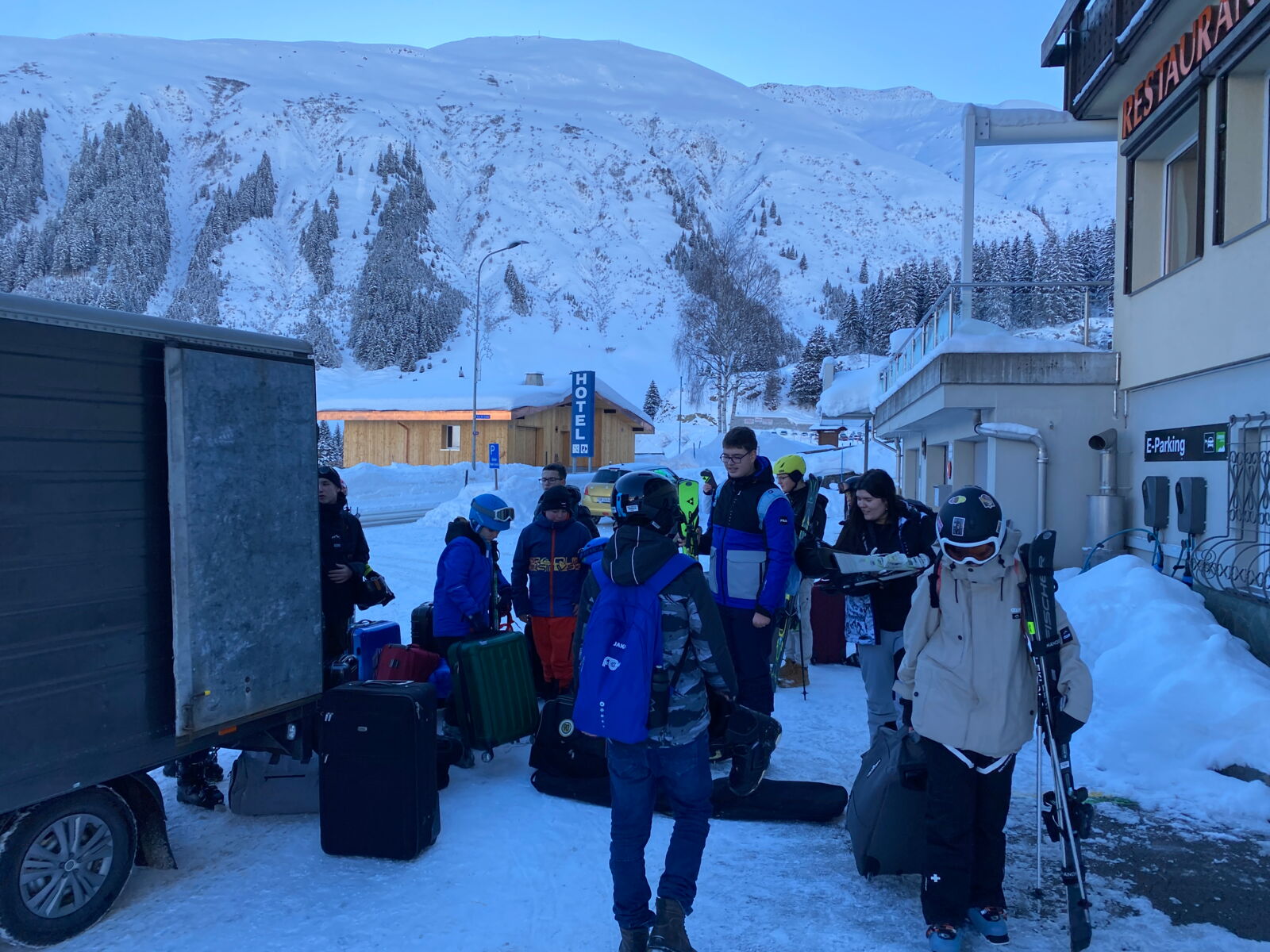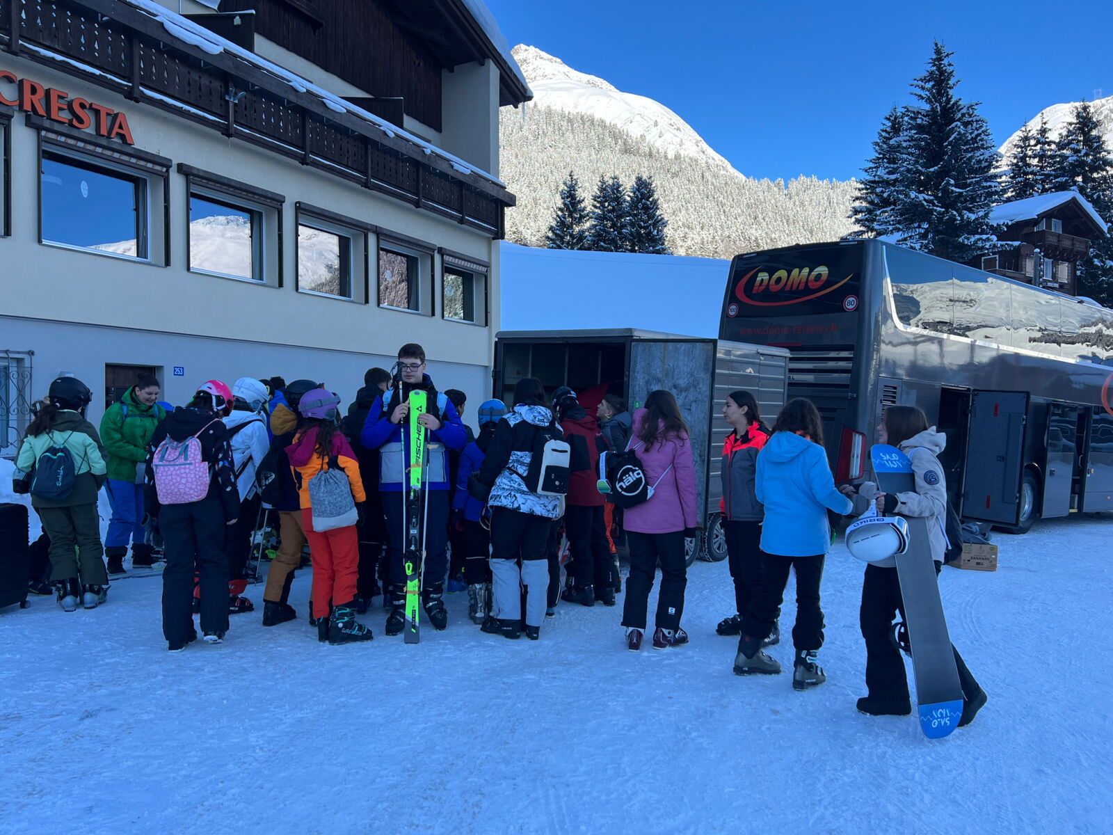 Nach einer zweistündigen Fahrt erreichten wir unser Ziel: Dieni, eingehüllt in eine traumhafte Winterlandschaft mit strahlendem Sonnenschein und reichlich Schnee. Die Vorfreude auf die bevorstehende Woche war bei allen spürbar.