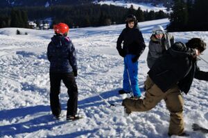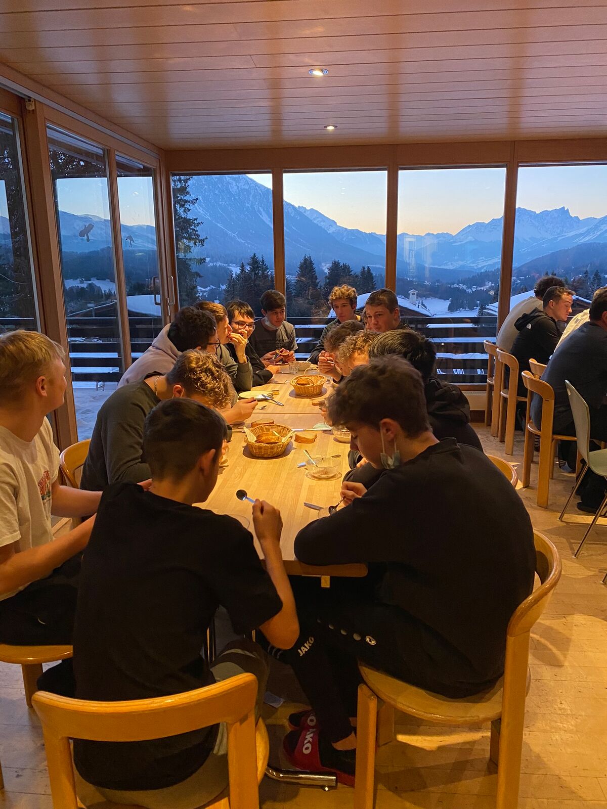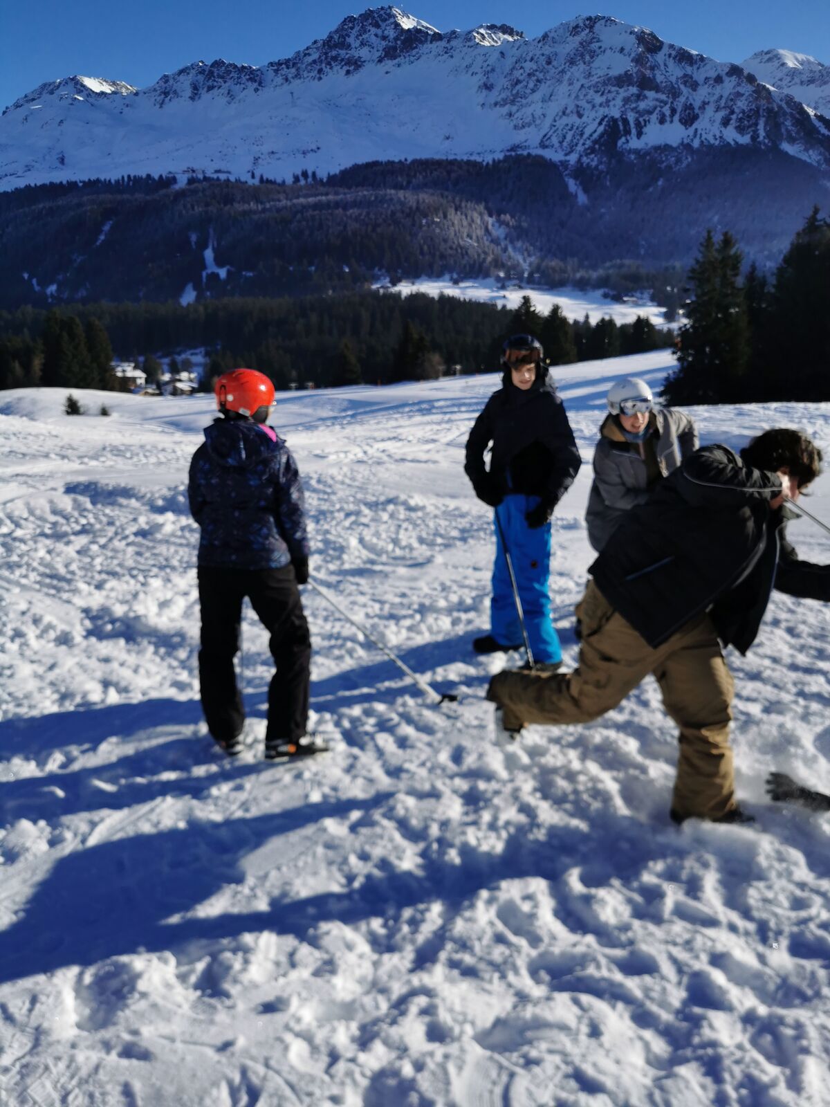Die 3. Oberstufe verbrachte ihr letztes Skilager im wunderschönen Valbella. Die ersten drei Tage hatten wir wunderschönes Wetter und traumhafte Pisten! Erst die letzten beiden Tage begann es zu schneien und Valbella verwandelte sich nun noch mehr in ein Winterwunderland. Aufgestanden sind wir meist um 7:30 Uhr, damit wir uns kurze Zeit später am reichhaltigen Frühstücksbuffet unsere Bäuche vollschlagen konnten. Gestärkt ging es um 9:00 Uhr auf die ca. 100m entfernte Skipiste. Nach drei Stunden knurrten unsere Mägen schon wieder und wir trafen uns im Lagerhaus, um gemeinsam das Mittagessen einzunehmen. Auch die Nachmittage verbrachten wir, solange wir konnten, auf der Piste. Das Abendprogramm wurde jeweils von den einzelnen Klassen vorbereitet. So spazierten wir am Montag durch die verschneite Landschaft, spielten dienstags unterschiedliche Indoor-Spiele, tanzten mittwochs gemeinsam unter dem Sternenhimmel und versuchten donnerstags unser Glück bei Roulet und Co.
