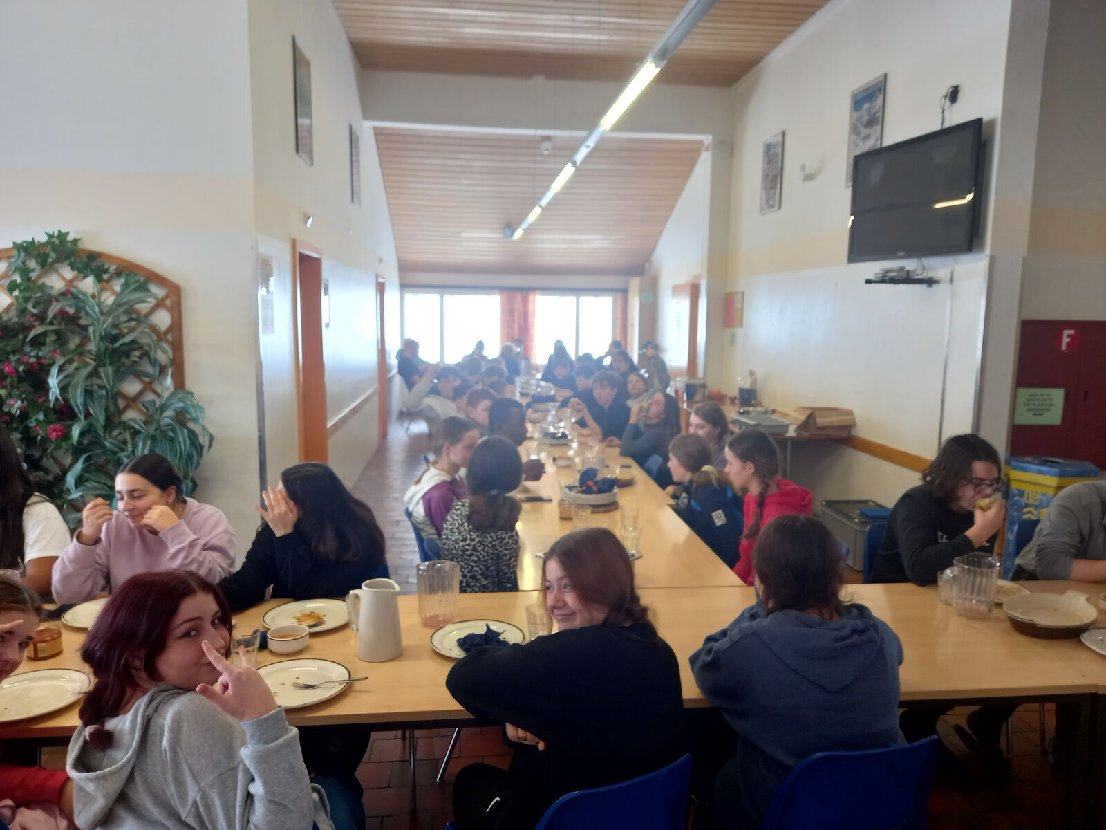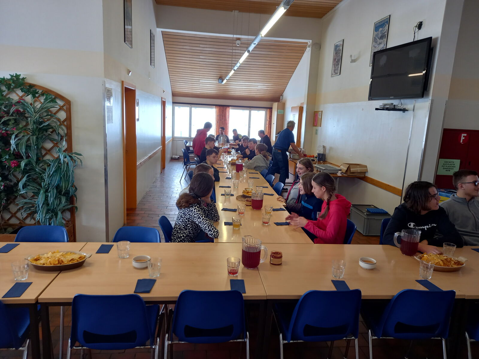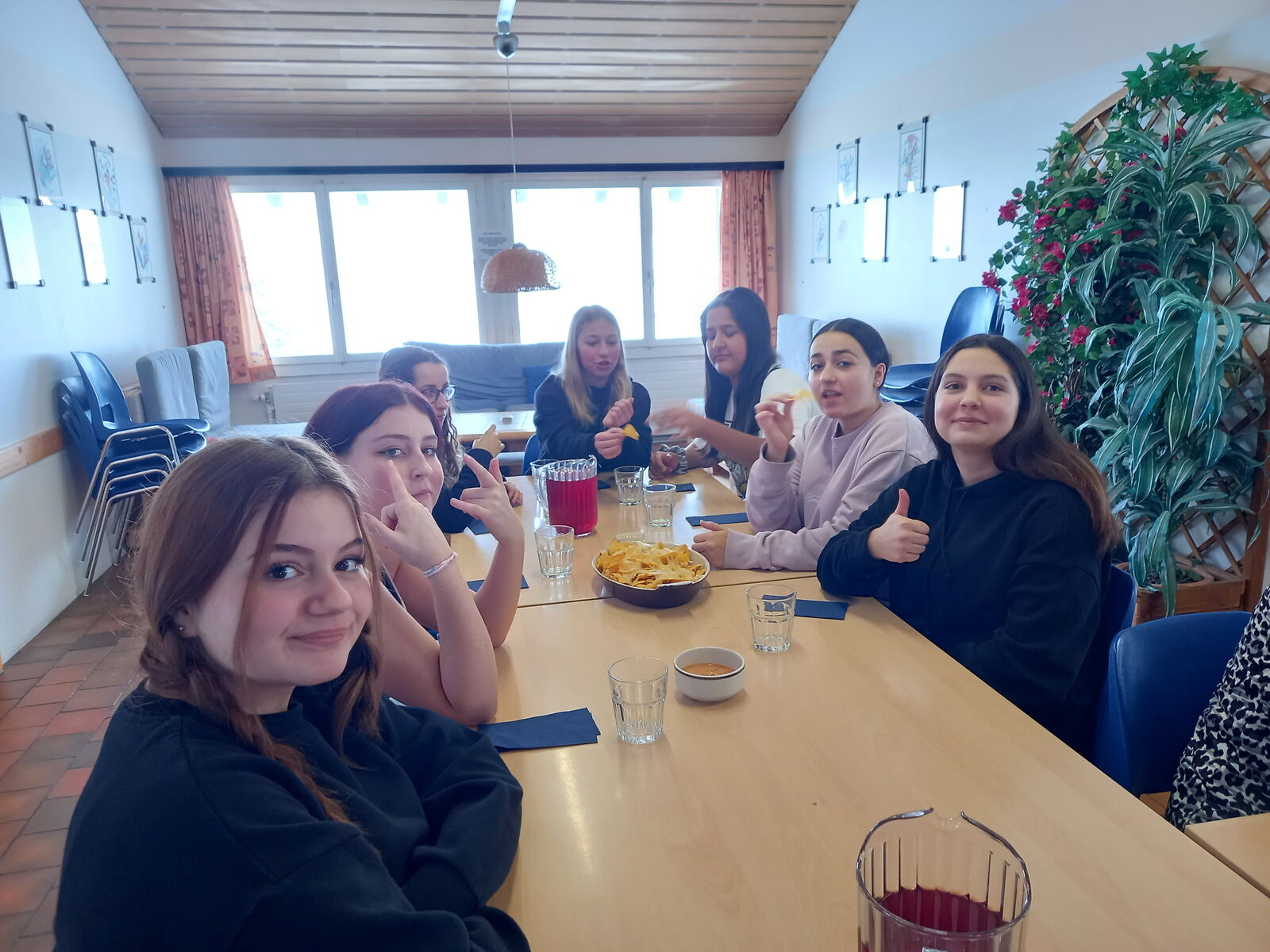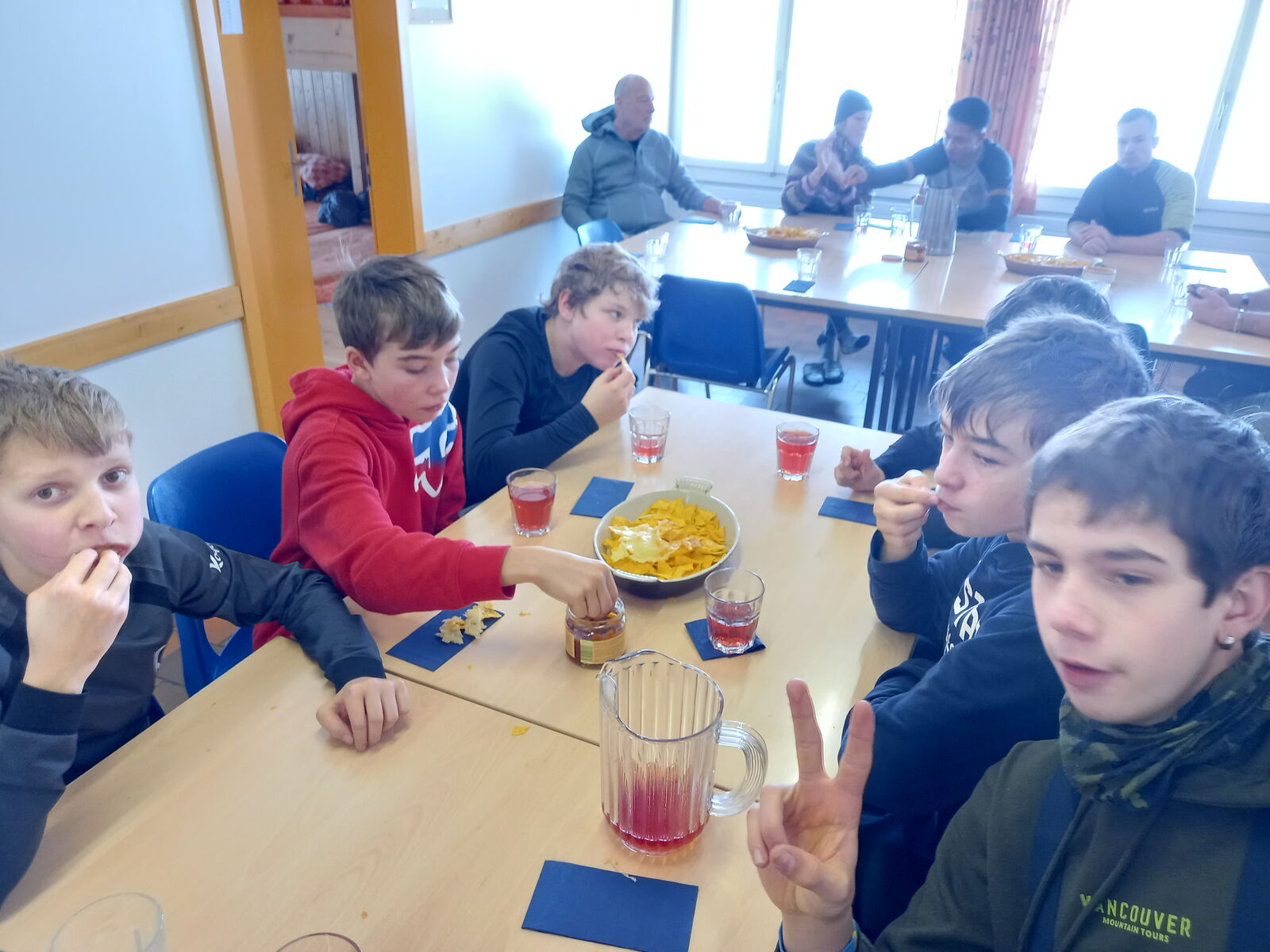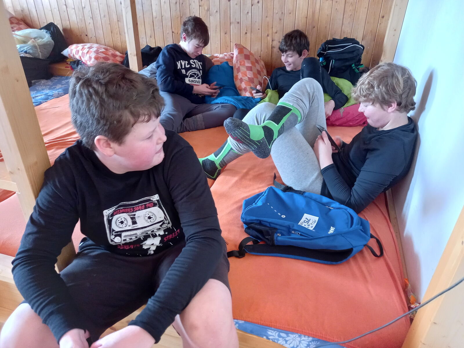 Am Morgen ist die Motivation noch nicht so hoch, weil man Muskelkater oder Schmerzen oder sonst was hat. Wenn man dann auf den Skiern steht, nimmt sie zu. Die Pisten sind frisch gemacht mit einem Hauch Pulverschnee drauf. Perfekt, so muss es sein! Immer bei der letzten Piste vor dem Mittag knurrt leise aber deutlich mein Magen und ich frage mich nur, was es heute zum Essen gibt. Am aller meisten freue ich mich auf das Dessert. Danach sinkt die Motivation für den Wintersport wieder, weil man jetzt einen vollen Magen hat. Aber jetzt scheint einem die Sonne ins Gesicht und alles ist gut. Um ca. 16Uhr sind alle zurück im Lagerhaus. Alle gehen duschen und richten sich für den Abend. Wir im Zimmer 3 haben immer Musik an und machen Party im Zimmer. Die Stimmung steigt immer mehr, bis zum Höhepunkt, dem Abendessen und den Aktivitäten danach. Unser Zimmer ist einfach zu geil. Bestes Skilager ever.