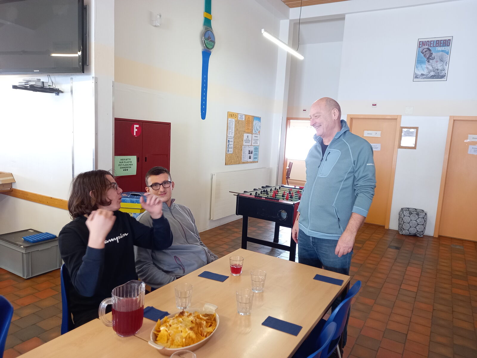 Es war supercool in Engelberg. Die Pisten waren sehr schön und man konnte sehr viel sehen und erleben. Das Lagerhaus war genau an der richtigen Stelle. Es war cool, dass man so nahe an dem Sessellift war. Man konnte sich vom Lagerhaus aus einfach nur die Piste herunterrollen lassen und schon war man beim Sessellift. Das Lagerhaus hatte für mich genau die richtige Größe. Es war sehr cool, dass man, wenn man aus dem Zimmer kam, direkt im Gemeinschaftsraum war. Die Zimmer waren sehr bequem. Ich persönlich fand auch die Ecke mit den Sofas aus Palletten sehr cool und bequem. Das coole an dieser Ecke war auch, dass man zusehen konnte, wie die Leute extra Lawinen sprengten. …