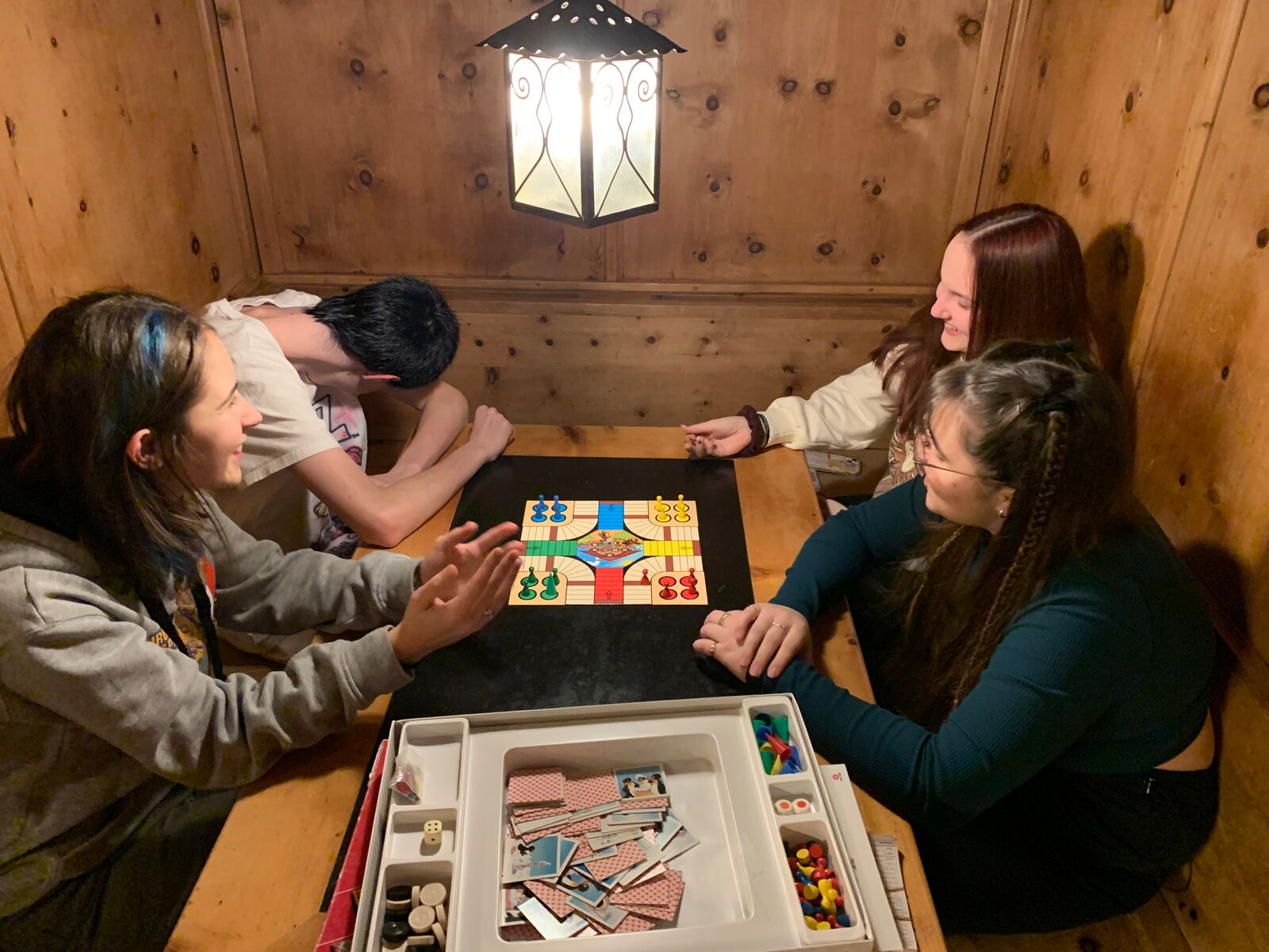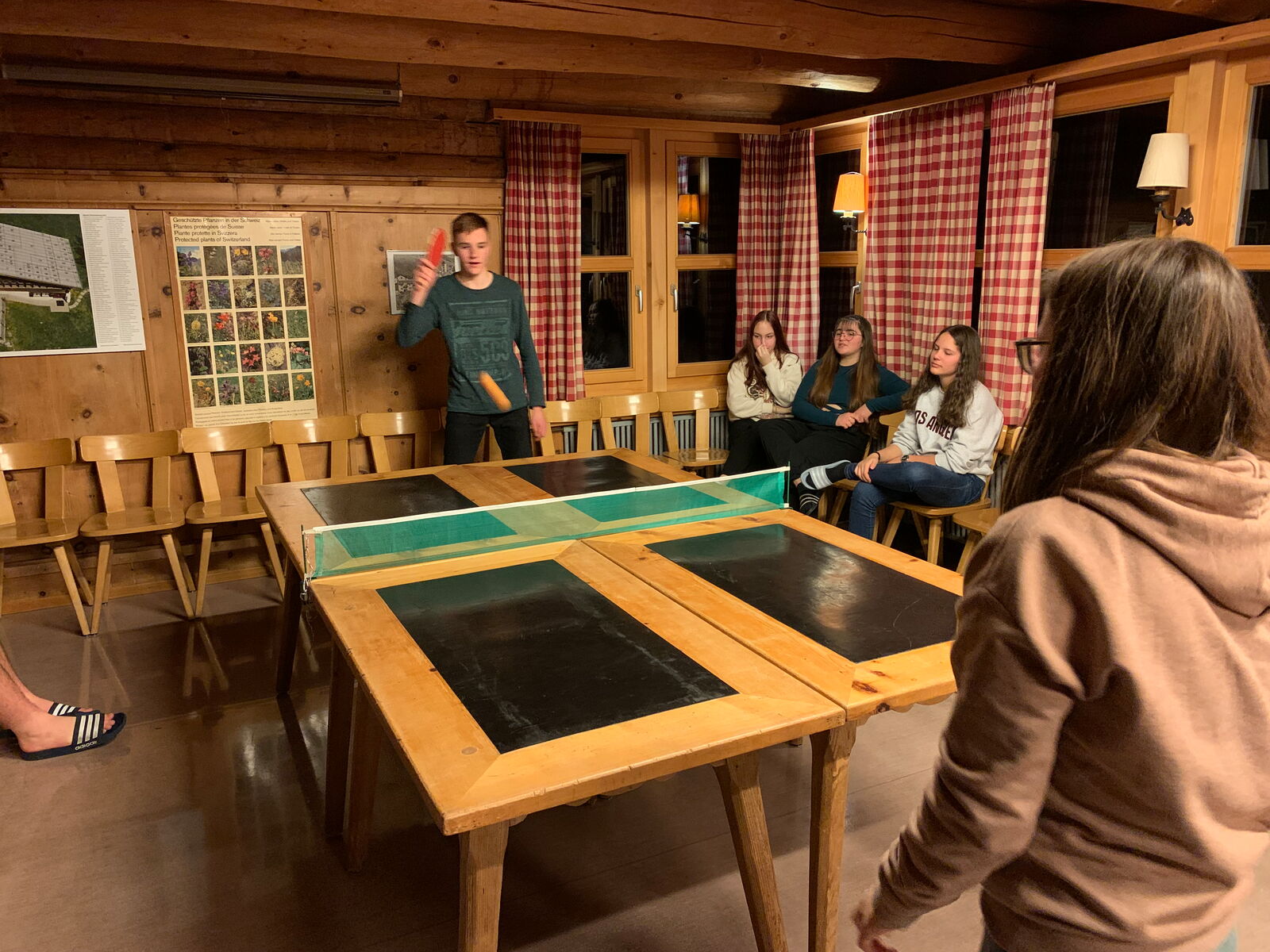 Für eine Woche durften wir uns in einem gemütlichen Lagerhaus mitten im Skigebiet von Flims einrichten. Zum Glück hatte es kurz vorher etwas geschneit, so dass wir eine winterliche Landschaft antrafen. Ein tolles Leiterteam begleitete die Skigruppen auf den schier endlosen Pisten des riesigen Wintersportgebiets und zwei sensationelle Köche verwöhnten uns kulinarisch. Die Abende mit Indoor- und Outdooraktivitäten waren kurzweilig und unterhaltsam. Höhepunkt war sicher der Gala-Abschlussabend am Donnerstag: Nach einem feinen Fondue versuchten die edel gekleideten Pärchen bei Glückspielen ihr Startkapital zu vermehren, was den meisten gelang. Zum Glück gab es während der ganzen Woche keine Unfälle, so dass am Freitagabend alle müde, aber wohlbehalten in Oberriet aus dem Car stiegen.