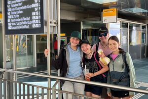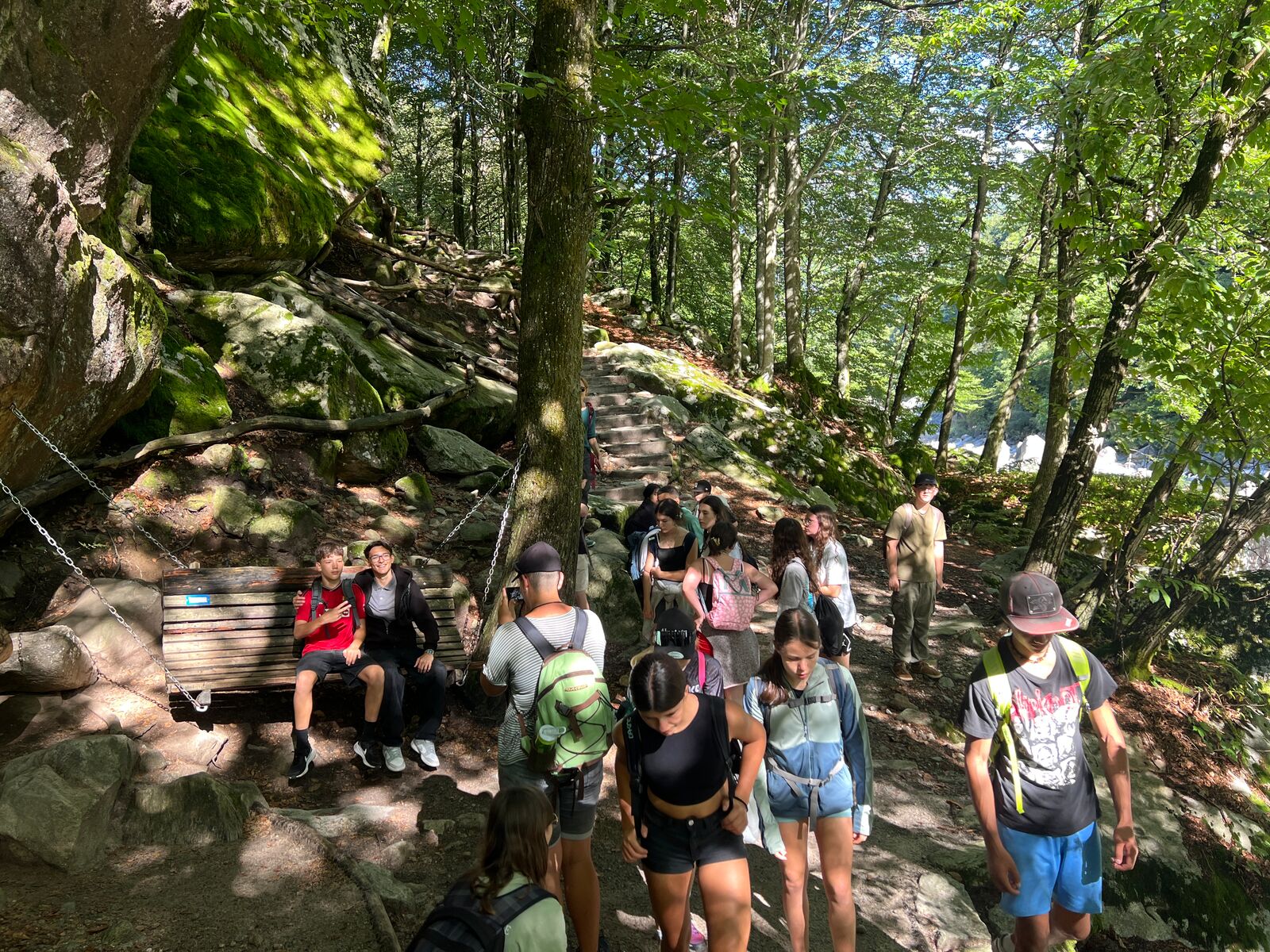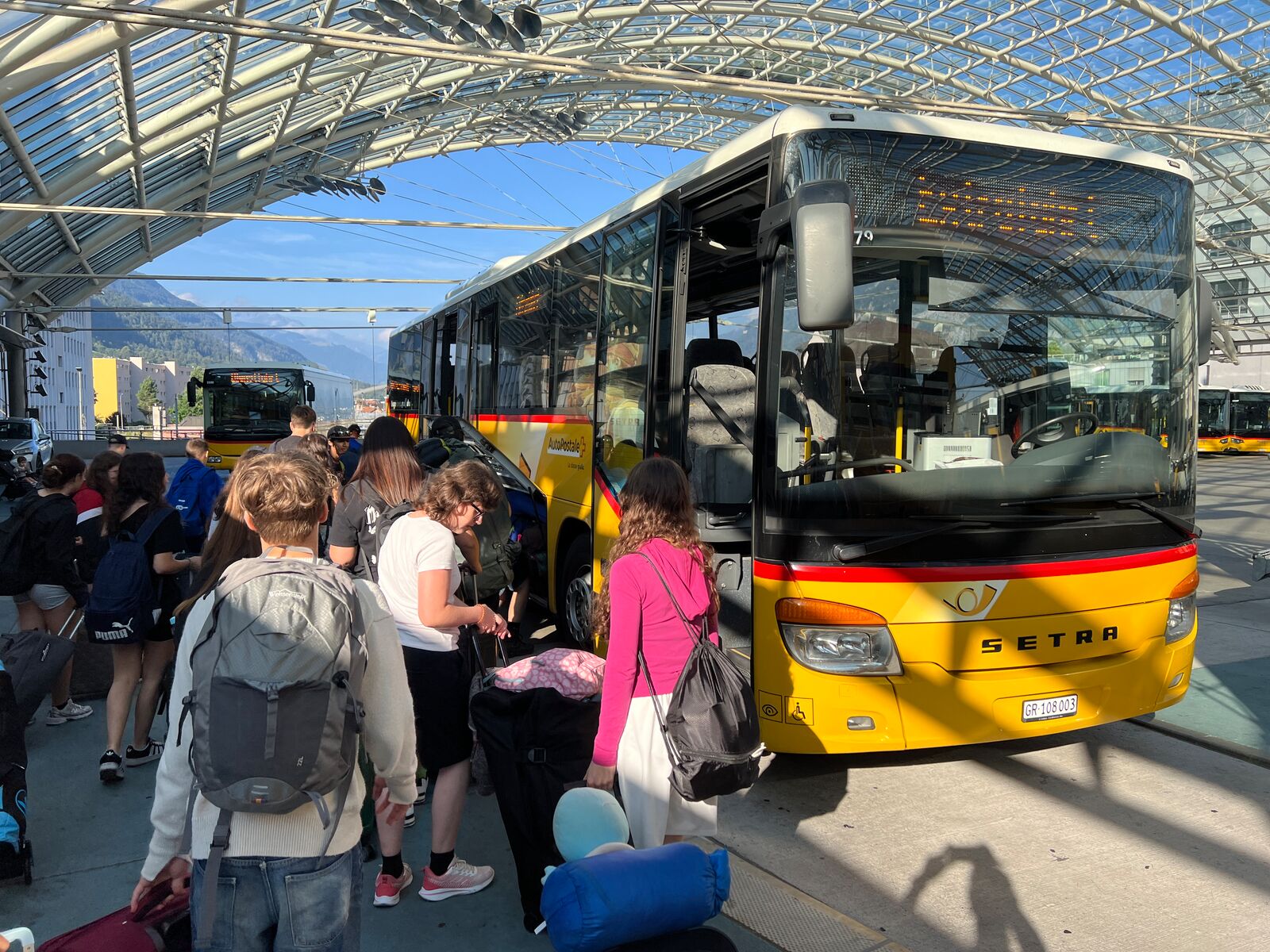 Um 6:40 Uhr wurden wir freundlich von den Lehrern geweckt. Anschliessend mussten wir noch die letzten Gepäckstücke packen und dann gings auch schon ab zum Frühstück. Das Frühstück haben wir in der Kantine genossen. Alle Schüler/- innen wurden in ihre Gruppe aufgeteilt, entweder wandern gehen oder Zelte putzen, Gepäckstücke zum Bahnhof bringen und mit dem Postauto zur Staumauer. Für die Wandergruppe ging es mit dem Postauto ab ins Verzascatal nach Brione. Ab dort begann die Wanderung nach Lavertezzo. Nach 2 Stunden wandern sind wir an der Römerbrücke (Ponte die Salti) angekommen. Da war das Highlight auf jeden Fall die schöne Aussicht, das schon blaue Wasser und als Aron von der Brücke gesprungen ist. Für die Wandergruppe gings wieder mit dem Postauto bis zum Bahnhof in Tenero. In der Zeit, als eine Gruppe am Wandern war, hat die andere Gruppe die Zelte von allen geputzt und sind mit dem Postauto zur Staumauer gefahren. Sie sind aber nochmals zurück zum Camp gegangen, da sie alle Gepäckstücke zum Bahnhof gebracht haben. Zum Mittagessen hatten wir einen Lunch to go. Ab dort sind wir wieder alle gemeinsam beim Bahnhof in Tenero in den Zug eingestiegen. Mit dem Zug fuhren wir bis nach Bellinzona. Dort sind wir ins Postauto umgestiegen. Das Postauto fährt uns nun bis nach Chur. Von Chur aus geht es mit dem Zug nach Oberriet. Um 16:33 Uhr werden wir voraussichtlich beim Bahnhof in Oberriet ankommen und freuen uns auf Elternempfang. Es war einfach ein mega grossartiges Abschlusslager in Tenero mit vielen schönen Momenten in der Klasse. (Nina)