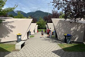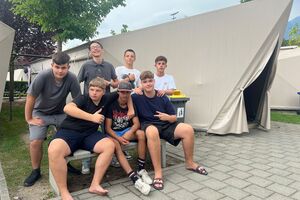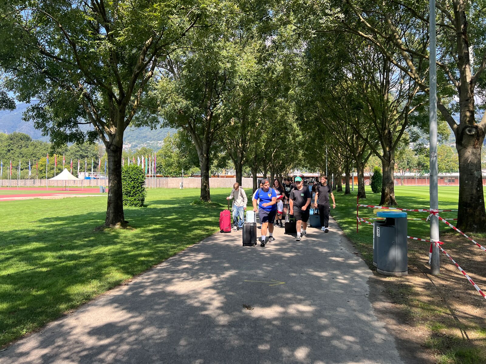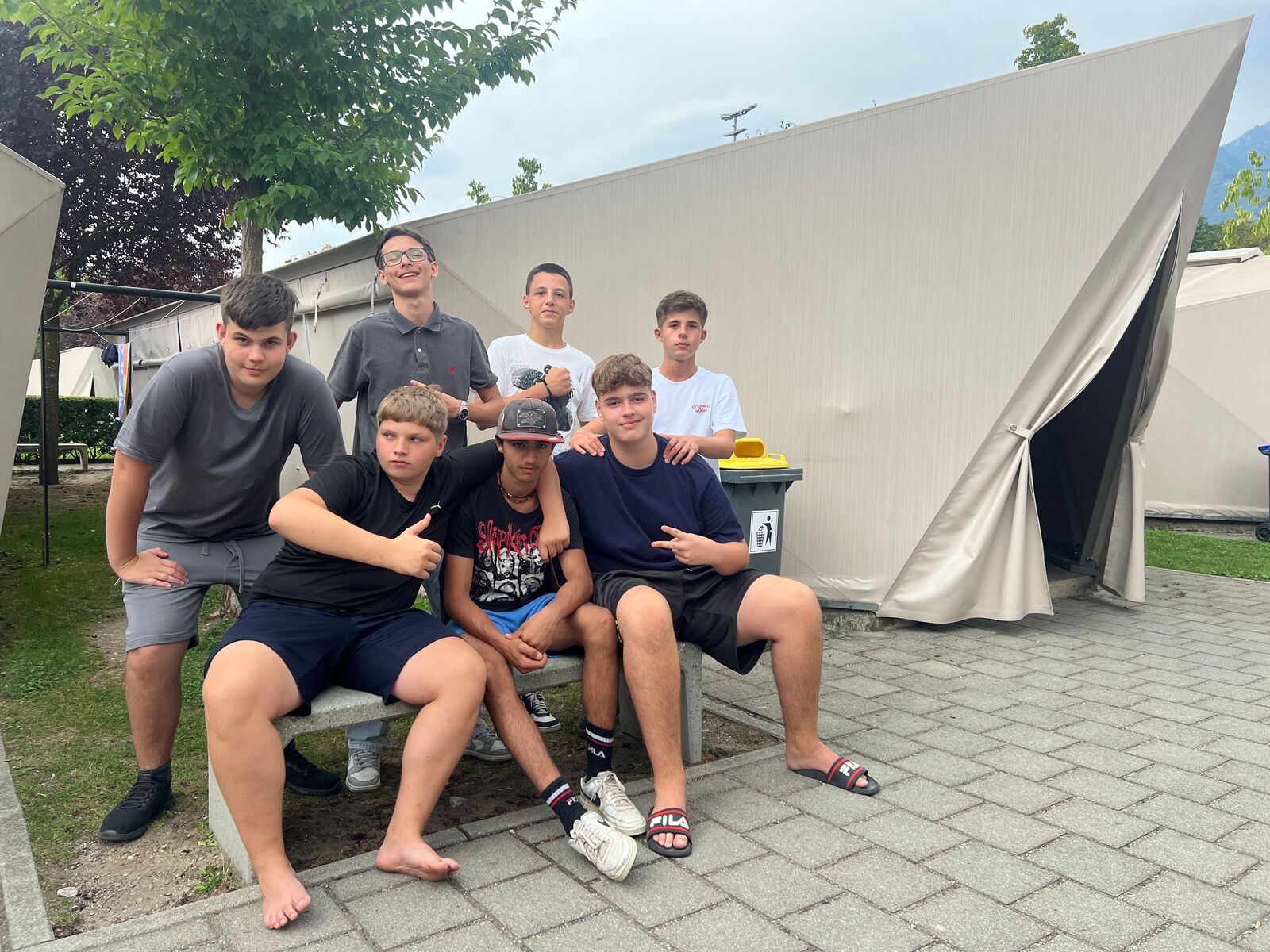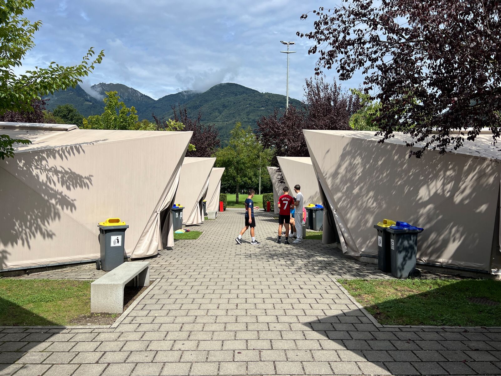 Am Montag trafen wir uns um 7:10 Uhr beim Bahnhof in Oberriet. Wir fuhren mit dem Zug und Bus bis zum Centro Sportivo in Tenero. Als wir ankamen, durften wir die Koffer in unsere Zelter stellen und gingen unser Picknick essen. Nach dem Mittagessen durften wir bereits unsere Zelter einrichten. Am Nachmittag nahmen wir an verschiedenen Sportarten (Orientierungslauf, BMX, Bogenschiessen) teil. Nach dem Sport hatten wir Zeit, um uns zu duschen und ein wenig Freizeit stand uns auch noch zur Verfügung. Zum Abendessen gab es Risotto & Fisch oder Pizzoccheri, verschiede Salate, Pilze, Gemüse, Obst und Glace. Das Essen war lecker. Nach dem Abendessen fand ein Abendprogramm von Frau Ludwig und Frau Kendlbacher statt. Ping Pong bei Frau Ammann und Herr Öhre, Spikeball oder Volley bei Frau Ludwig und Herr Portmann und ein kreatives Zusammenstellen eines Videos bei Frau Kendlbacher war Teil des Programms. Abschliessend fand am Strand ein Seilziehen Schüler & Schülerinnen gegen die Lehrpersonen statt. Wir waren müde und gingen ins Bett. (Alina)