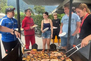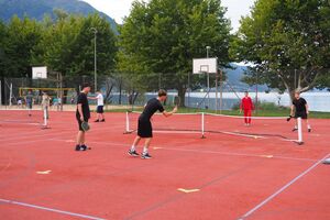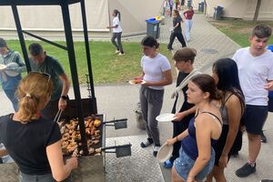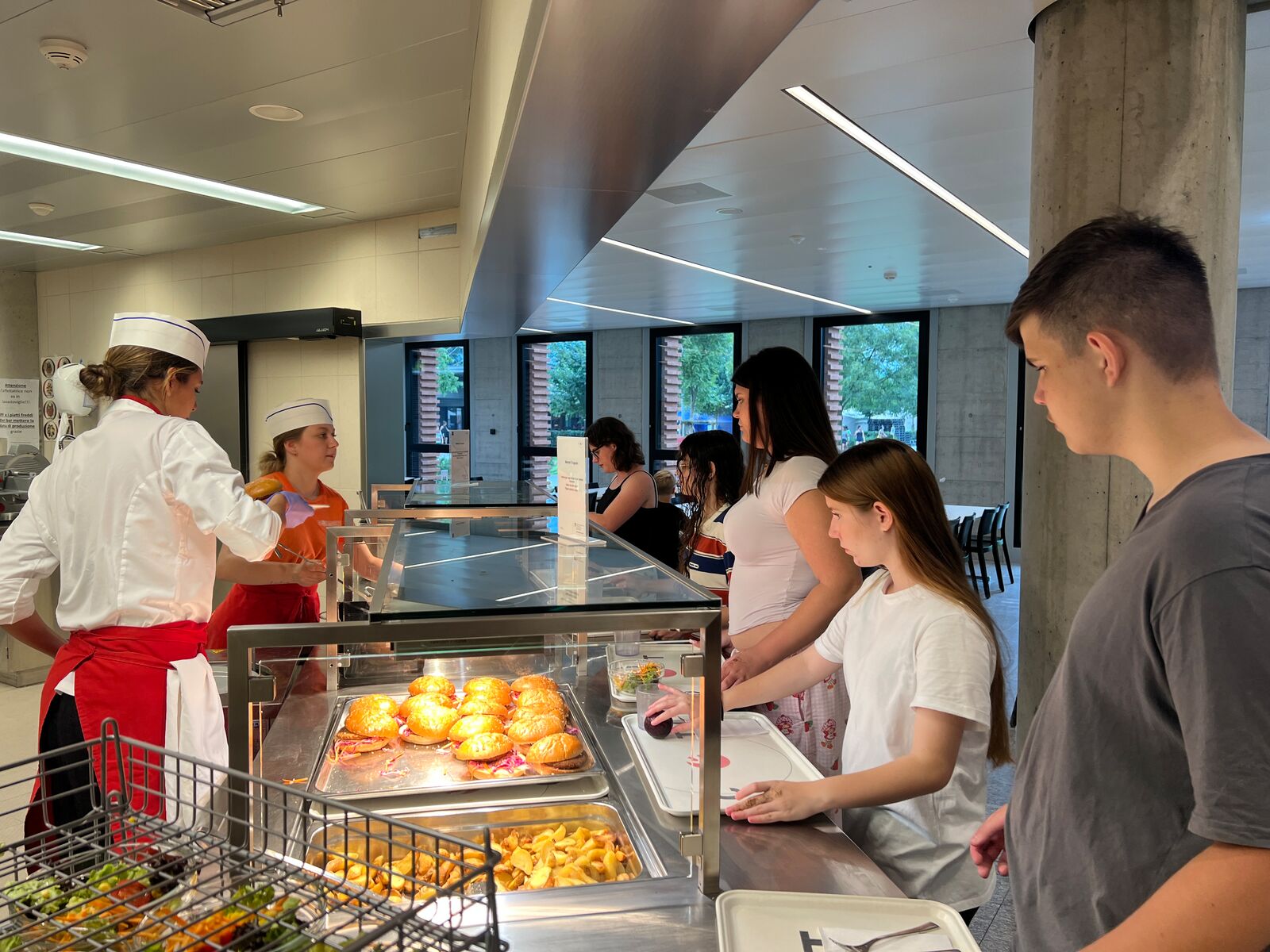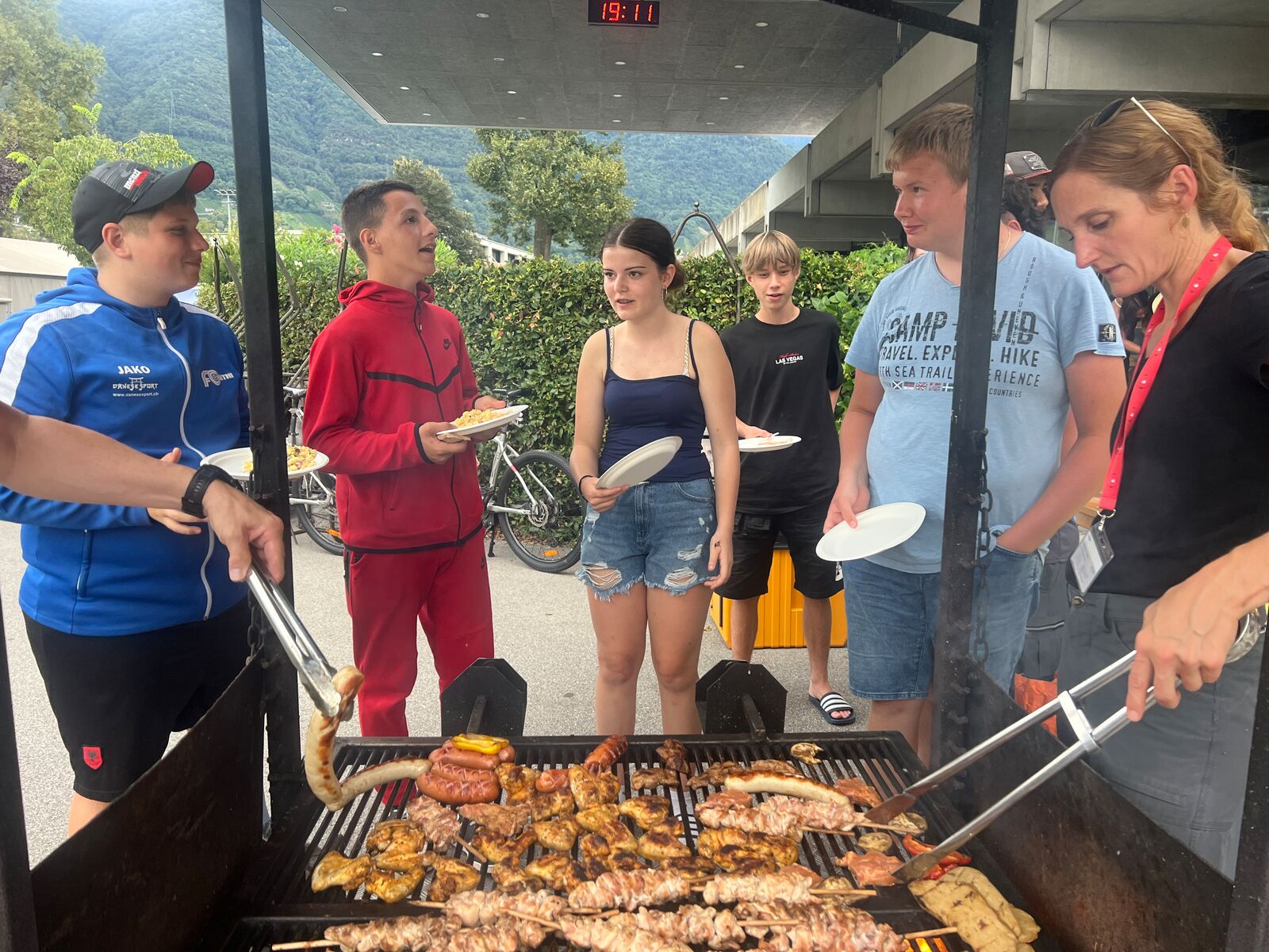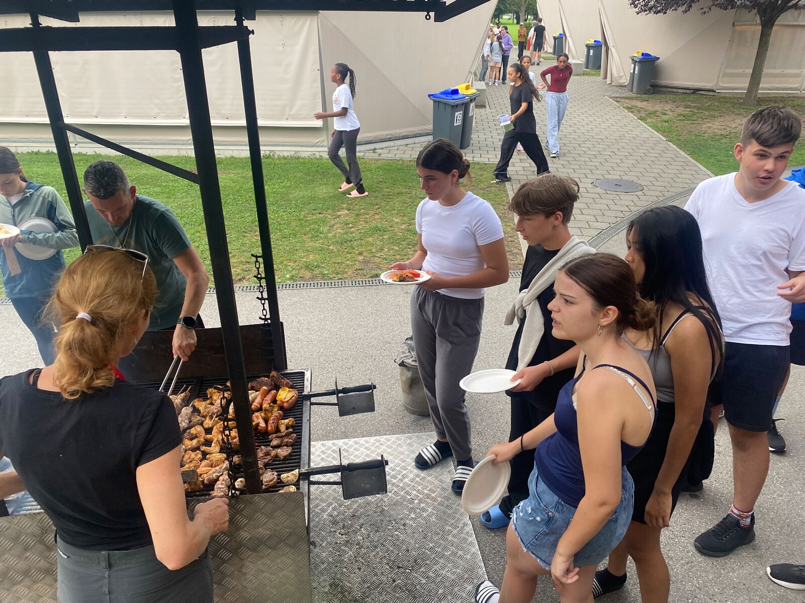Wir sind am Morgen aufgestanden und haben gefrühstückt. Dann haben wir uns für das heutige Sportprogramm bereit gemacht. Pickle ball, Turmspringen, Speedminton und Basketball standen im Angebot. Zum Mittagessen gab es Pasta, Cordon Bleu, Kartoffelgratin und verschiedenes Gemüse. Nach einer kurzen Siesta starteten wir mit weiteren Sportarten. SUP und Kanu als Wassersportarten oder Speedminton und Tennis als Rückschlagspiele waren Teil des Nachmittagsprogramms. Plötzlich hat es angefangen zu regnen, blitzen und donnern, weshalb wir alle aus dem Wasser mussten und direkt zu den Zelten zurückgingen. Dort durften wir duschen und uns für den Abend bereit machen. Auch mussten wir für die Heimreise von Freitag den Koffer packen. Wir hatten noch ein wenig Freizeit. Einkauf im Coop, Haare schneiden und färben oder Jungs/Mädchen von anderen Schulen kennenlernen waren vor allem die Beschäftigungen. Für das Abendessen haben wir grillen geplant. Später lassen wir den Abend bei einem gemütlichen Beisammensein am See ausklingen. (Dea, Leonit)