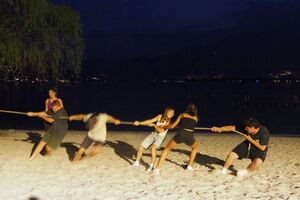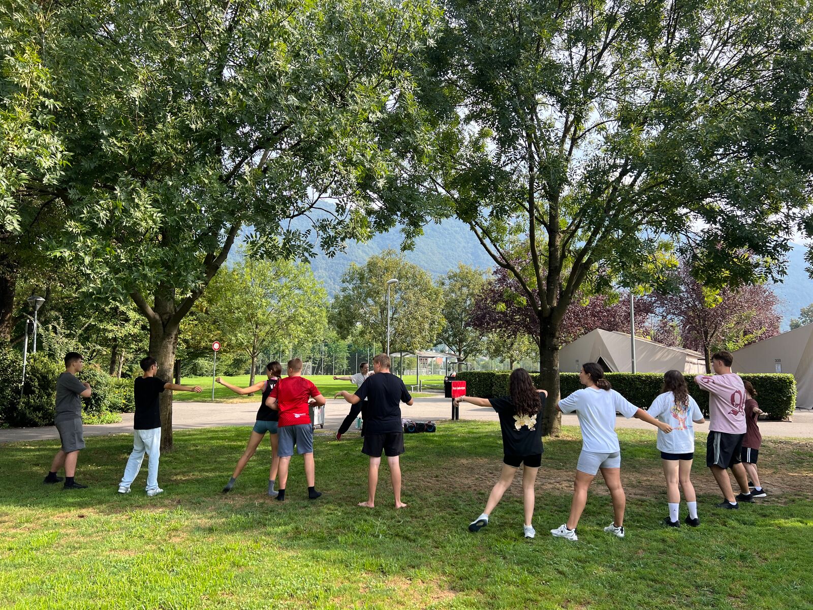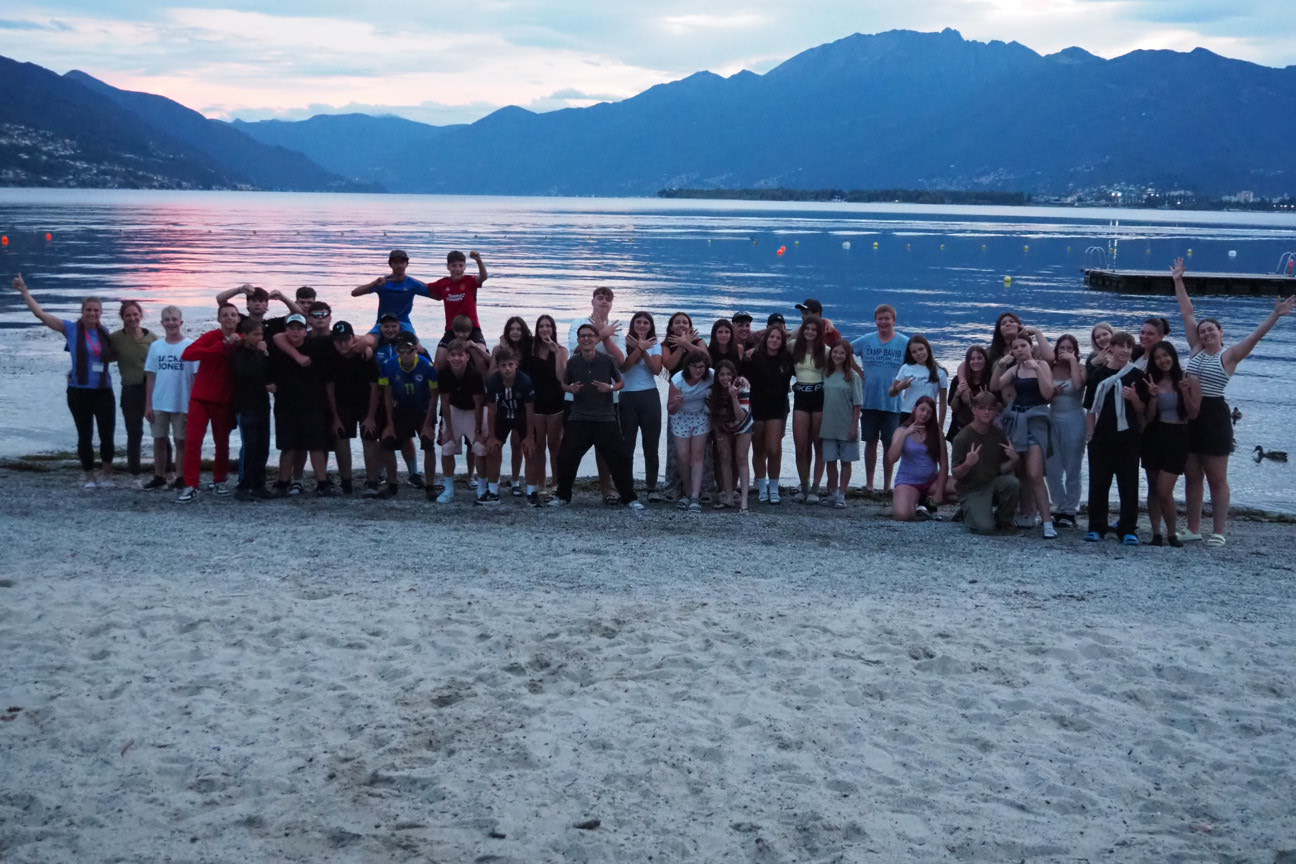Am Dienstag wurden wir um 7:30 Uhr geweckt. Danach gab es ein reichhaltiges Frühstück. Heute standen vier verschiedenen Sportarten (Capoeira, Klettern, Hiphop, Parkour) auf dem Programm, von welchen wir wiederum zwei auswählen und absolvieren durften. Um 11:30 Uhr gab es zum Mittagessen Nudeln, Poulet, Salat und Glace. Nach dem Mittagessen haben wir zuerst eine Ruhepause und ein wenig Freizeit statt. Dann sind wir gemeinsam an den See gegangen, wo wir mit Baden im Lago Maggiore sehr viel Spass hatten. Später haben wir Beachsoccer, Beachvolleyball und Rugby gespielt. Zum Abschluss des Sportblocks sind wir nochmals für eine Abkühlung an den See gegangen. Bevor wir zum Abendessen in die Kantine gingen, haben wir geduscht. Heute gab es Burger, Pommes oder Pasta. Auf dem Abendprogramm stand heute ein Spiel namens Schlag die Lehrperson. Wortkette, Plank Challenge, die perfekte Minute und weitere Titel waren Inhalt der Unterhaltung. Auch heute durften wir wieder zufrieden ins Bett. (Nora, Nicolas, Xhevat)