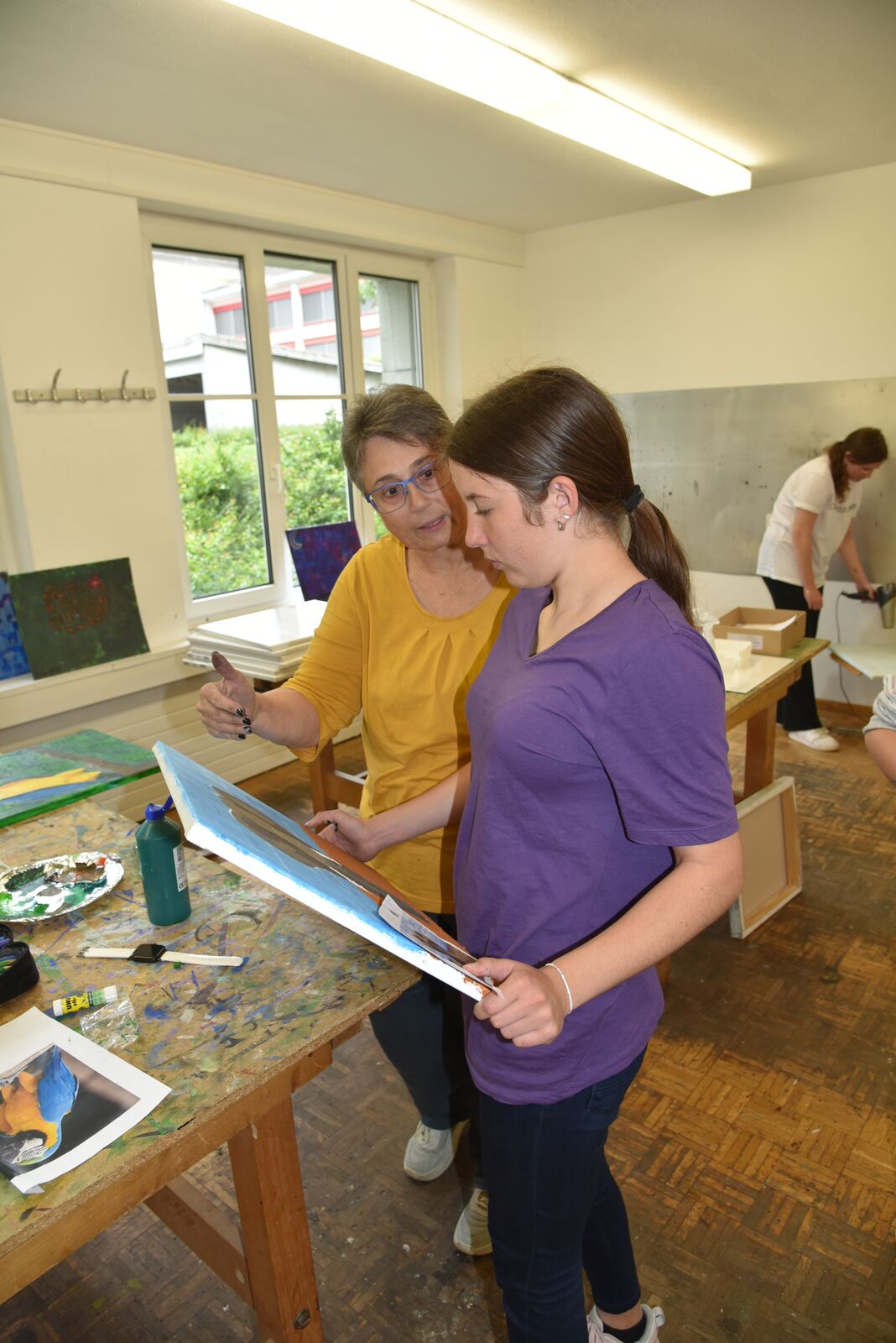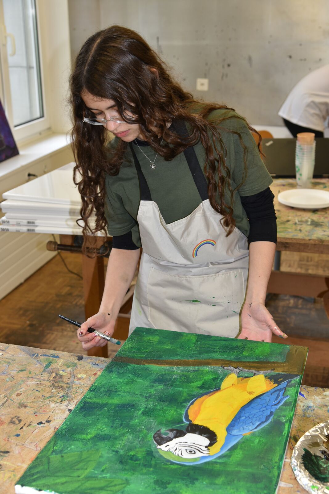 Schon ist der letzte Sondertag gekommen. Einige Schülerinnen waren noch an den Bildern mit dem Lieblingstier beschäftigt, aber die meisten haben mit dem dritten Projekt angefangen. Dazu durfte man wählen, was man malen wollte, aber man musste mit Asche arbeiten. Dies hat bei uns allen sehr gut funktioniert. Daraus wurden sehr schöne Bilder und man merkte richtig, wie jeder kreativ auf seine eigene Art und Weise gemalt hat. Am Schluss haben wir alles aufgeräumt, Feedbacks gegeben und unsere für die ExpOZO ausgewählten Bilder im Materialraum deponiert. Die anderen durften wir nach Hause nehmen. Es hat allen Teilnehmerinnen sehr gut gefallen.