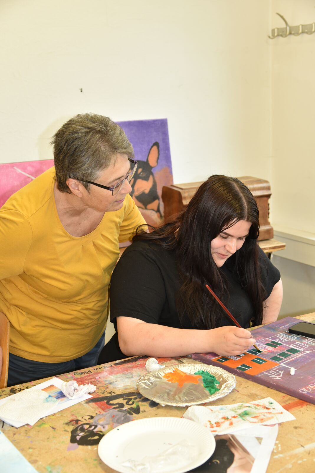 Am Dienstag haben wir mit der ersten Leinwand angefangen. Hier musste jede Teilnehmerin zu den Farben auch Sand oder Asche wählen. Die meisten haben Sand gewählt. Vor den Sondertagen erhielten alle noch den Auftrag, Frau Zollinger ein Bild von ihrem Lieblingstier zu schicken. Frau Zollinger hat uns dann diese ausgedruckten Bilder ausgeteilt und wir durften mit unseren Lieblingstieren anfangen. Als wir an unsere Bilder dran waren und mit den Spachteln gemalt haben, war es wirklich leise. Ich fand Dienstag sehr leise und jeder war konzentriert dran. Das gefiel mir am meisten. Wer mit seinem Tierbild fertig war, durfte eine zweite Leinwand gestalten. Kommen wir zu Mittwoch.