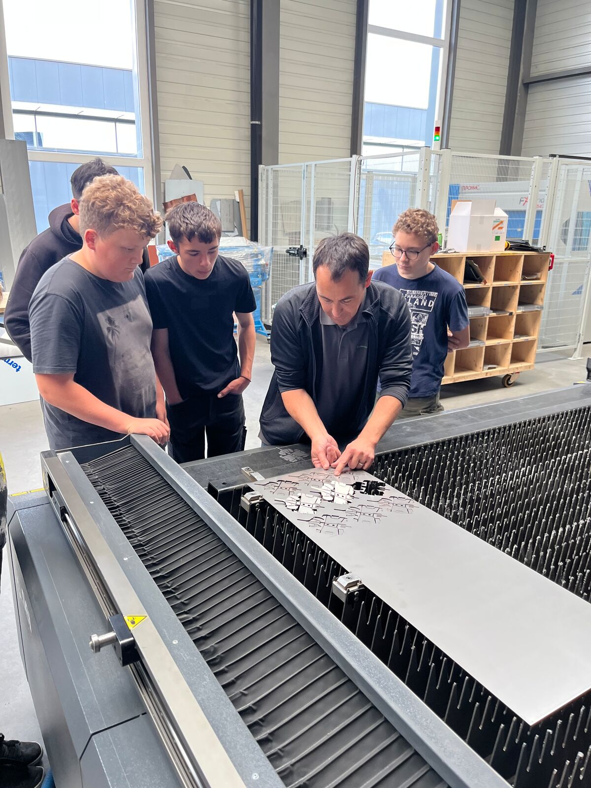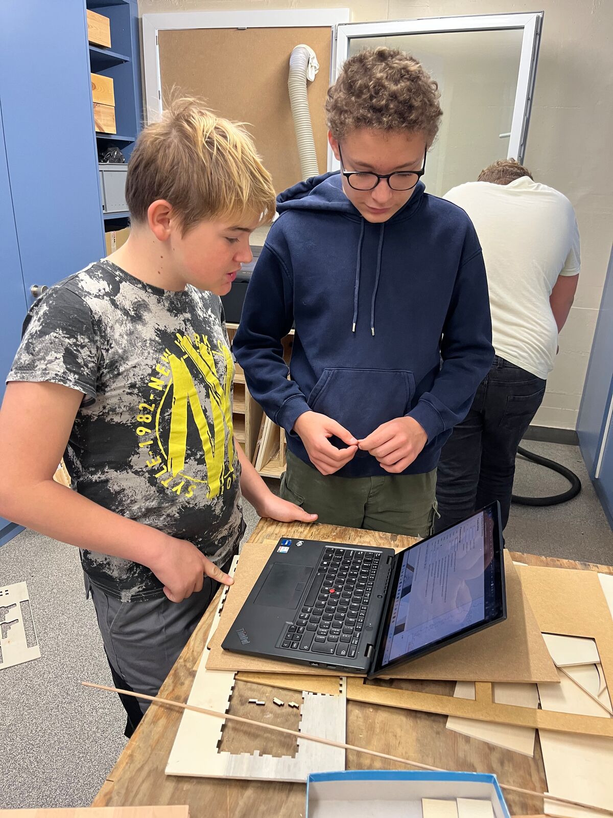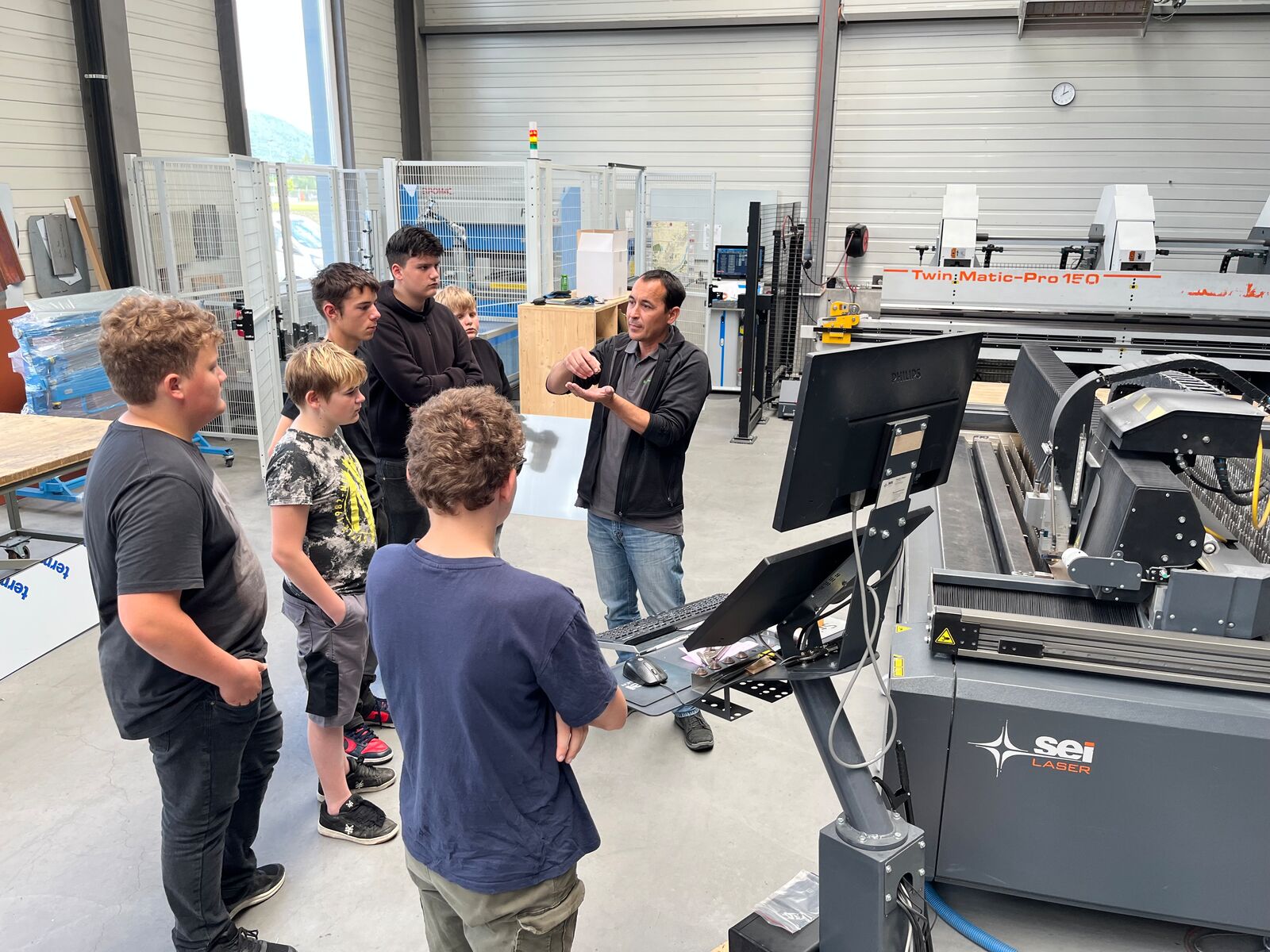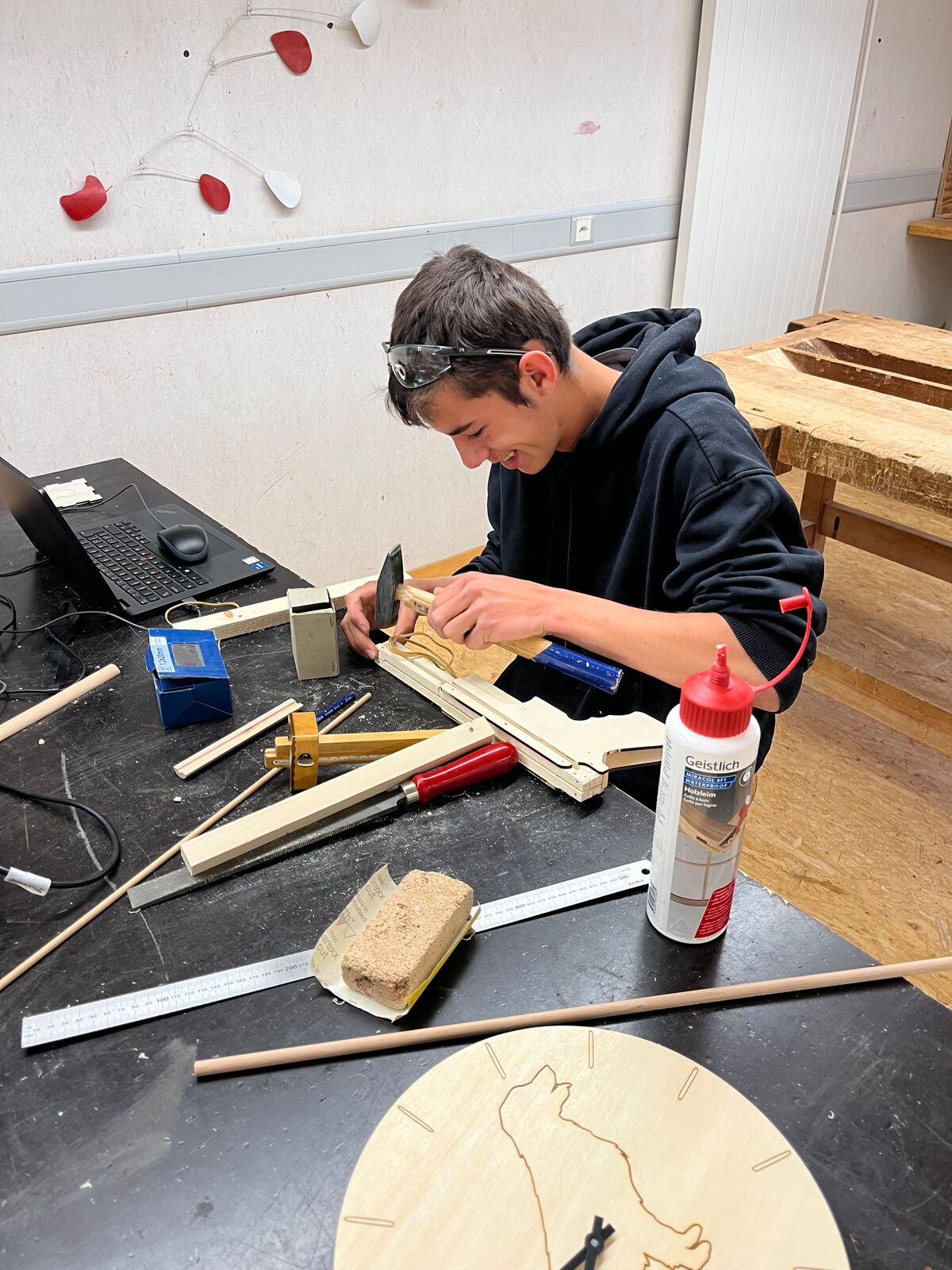 Mit einer ersten Aufgabenstellung wo Buchstaben und Formen im Vordergrund standen, sind wir in den Kurs gestartet. Kurze Inputs zu Software und Hardware wurden vermittelt und direkt angewendet. Neben einfachen und kleinen Projekten wie ein Schneidbrett oder eine Ordnungsbox für den Schreibtisch haben wir auch eine Wanduhr gestaltet. Viele eigene Projekte und Ideen wurden umgesetzt. Bei einem Besuch in der Firma loherbringts.ch haben wir einen Einblick in die industrielle Blechbearbeitung bekommen.