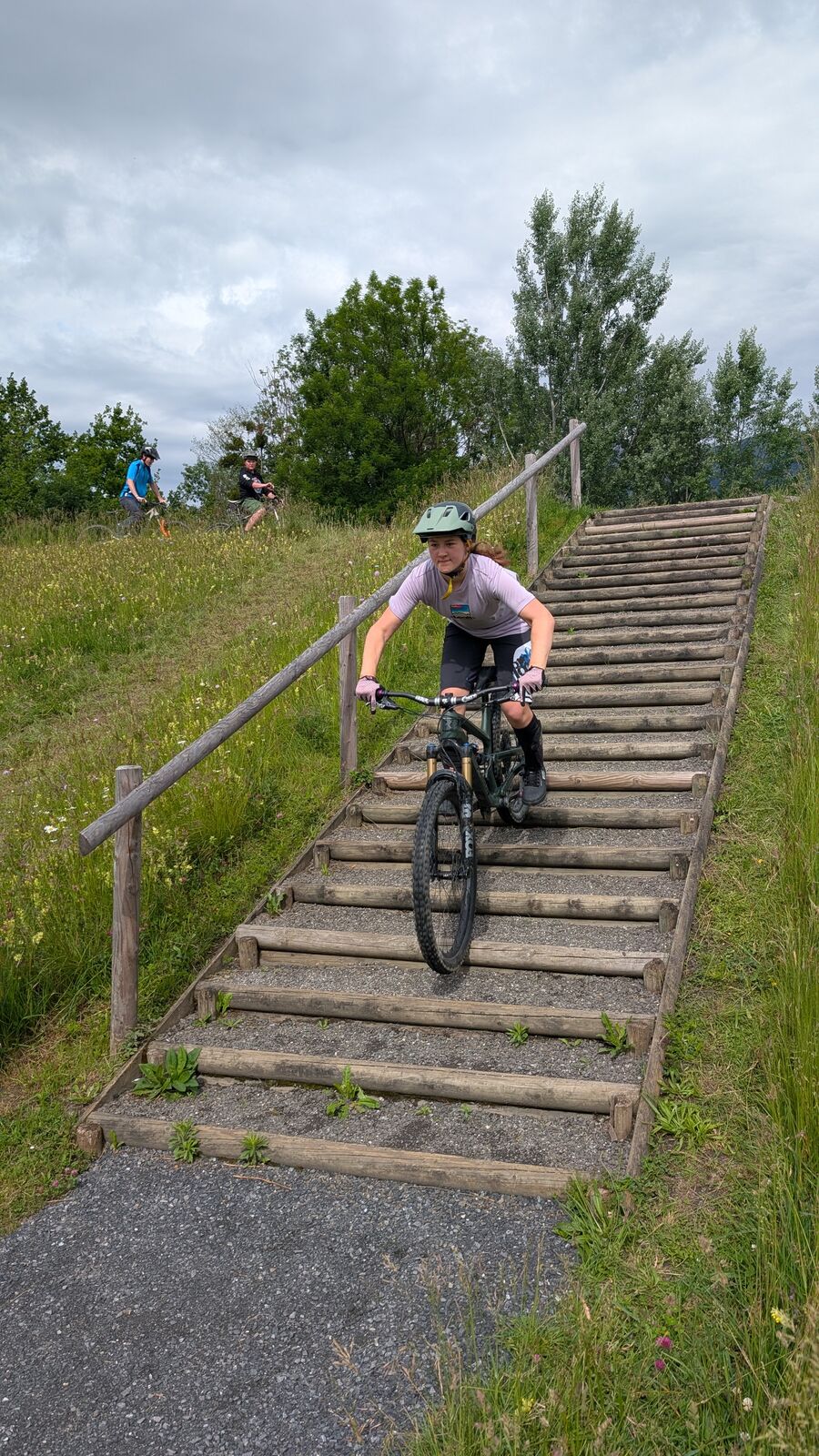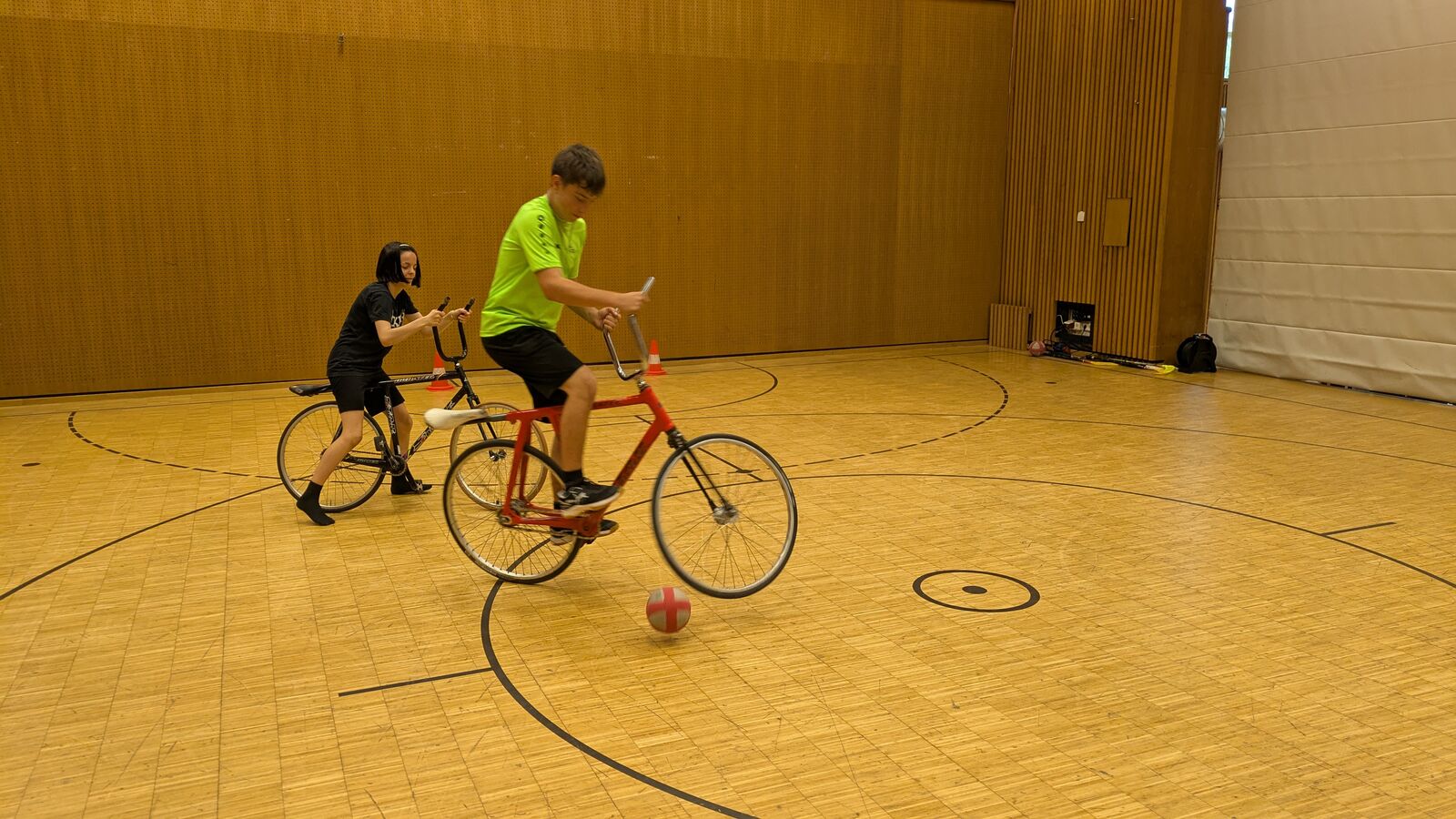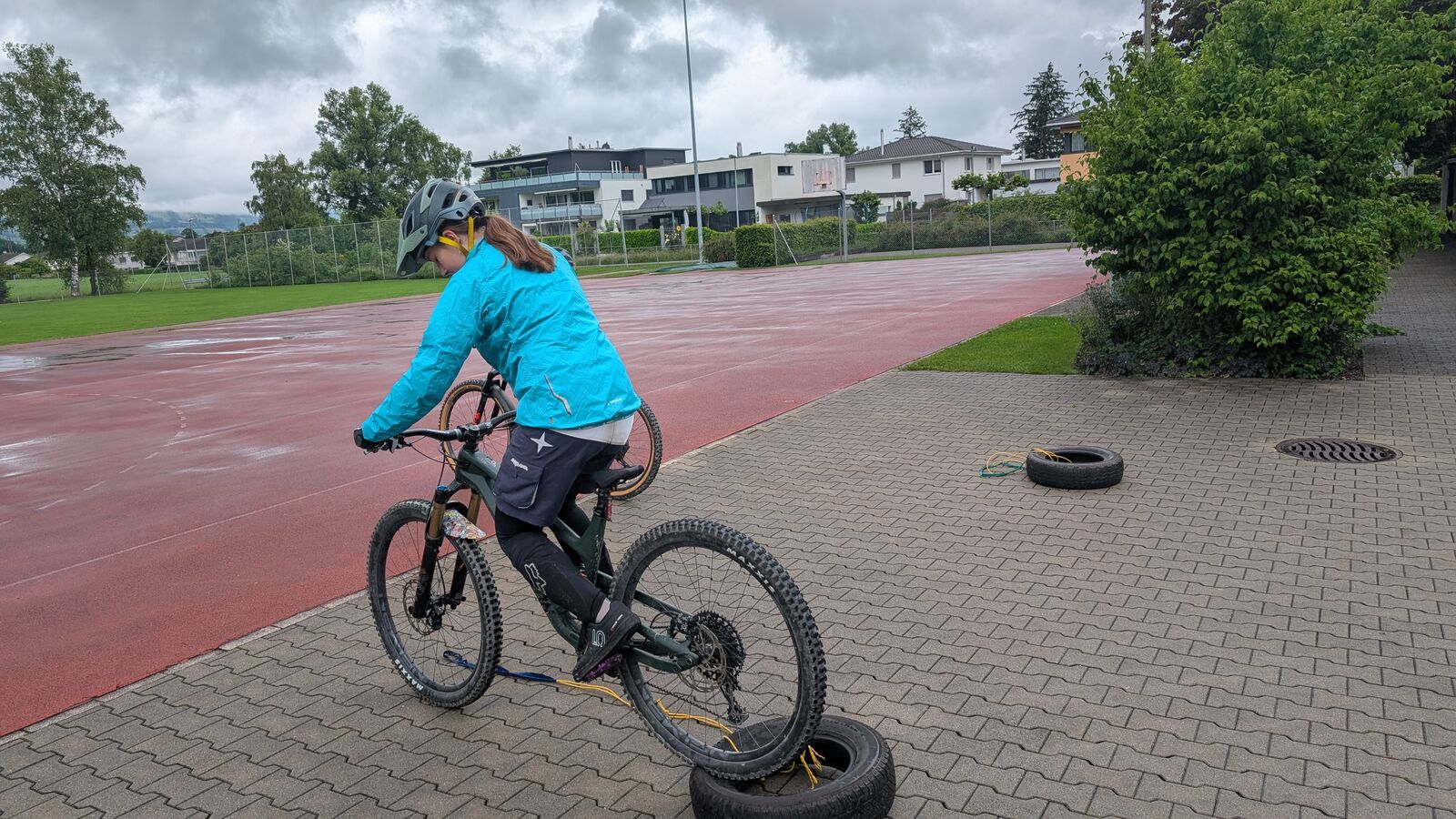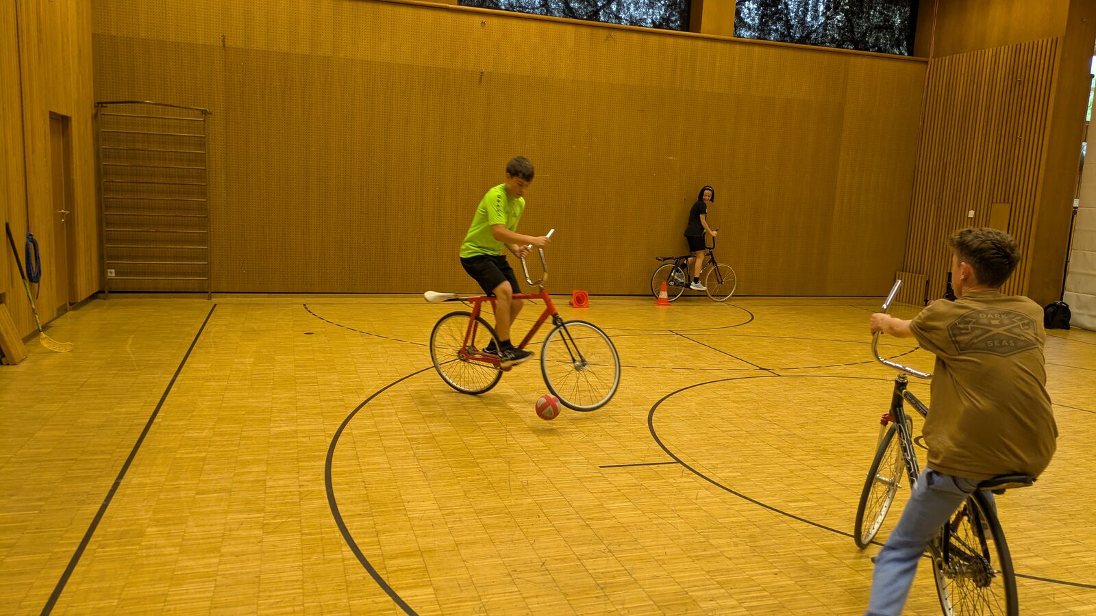 Nach einer Pause standen spielerische Herausforderungen mit dem Bike auf dem Programm. Die Teilnehmenden übten unter anderem das Umfahren von Pylonen, das Überspringen von Hindernissen, das Befahren von Treppen sowie das Balancieren auf dem Bike – alles mit viel Geschick und Spass.