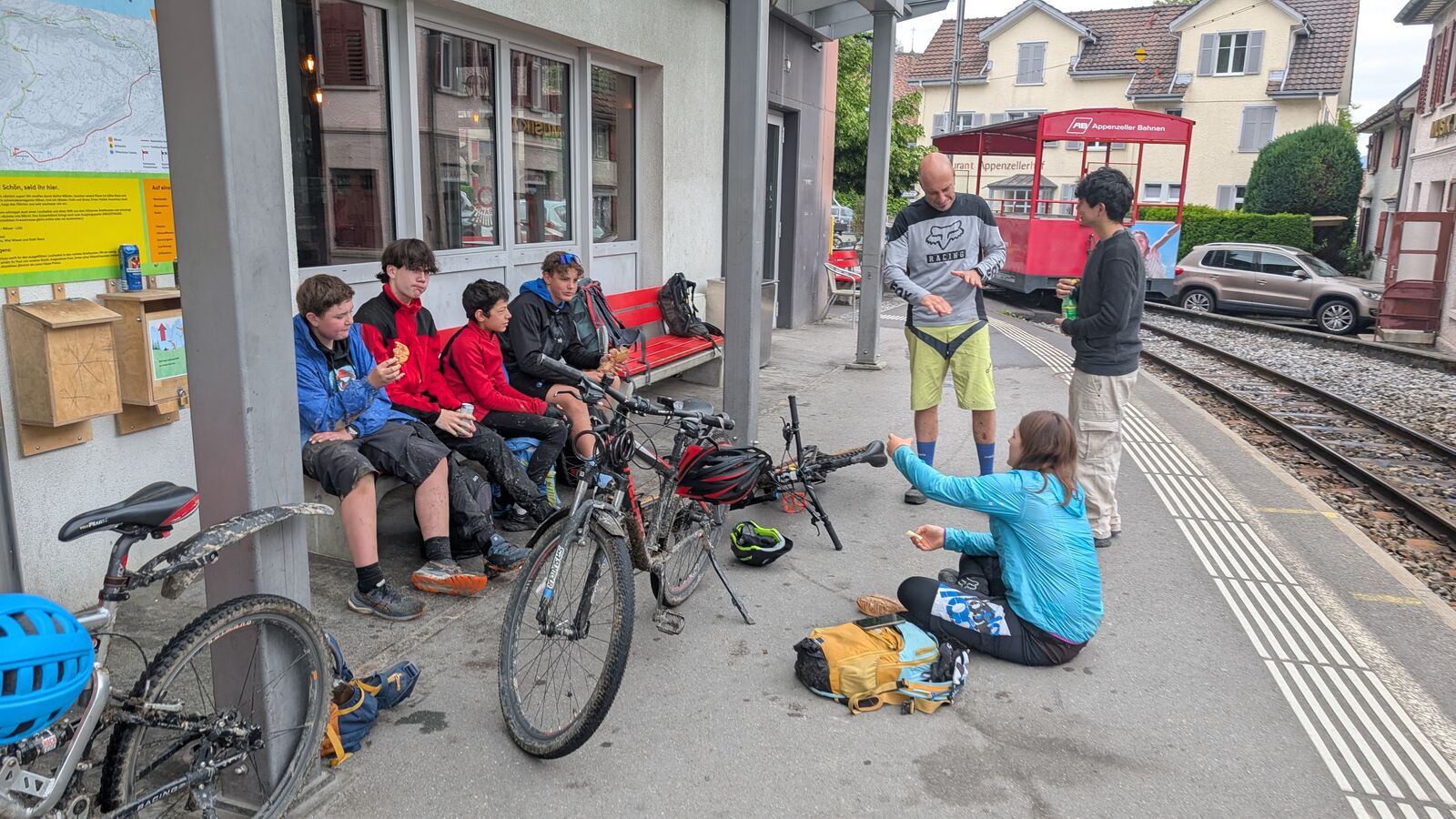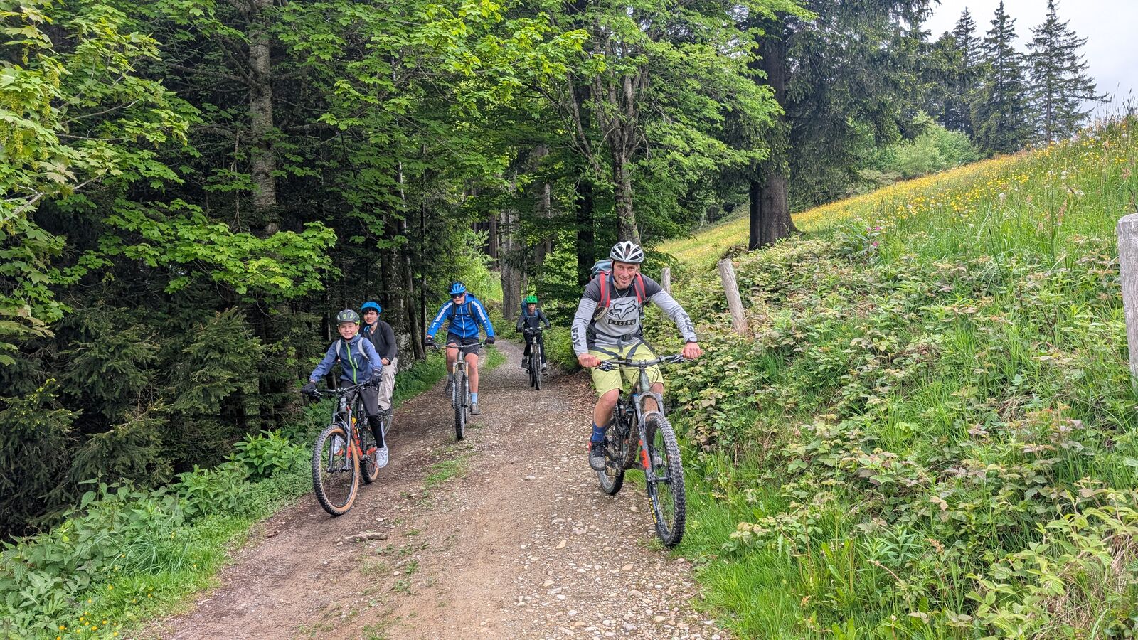 Am zweiten Tag meinte es das Wetter besser mit uns. Mit frisch geputzten Bikes ging es nach Altstätten, wo wir das Appenzeller-Bähnli auf den Stoss nahmen. Die erste Abfahrt führte uns über spannende und teils rutschige Trails zurück ins Tal – mit breitem Grinsen im Gesicht. Nach einer weiteren Bahnfahrt und Abfahrt stand ein anstrengender, aber lohnenswerter Abschnitt an: Vom Stoss ging es nach Gais, dann hinauf in Richtung Gäbris und über den Suruggen in die Landmark. Der finale Anstieg führte uns auf den St. Anton.