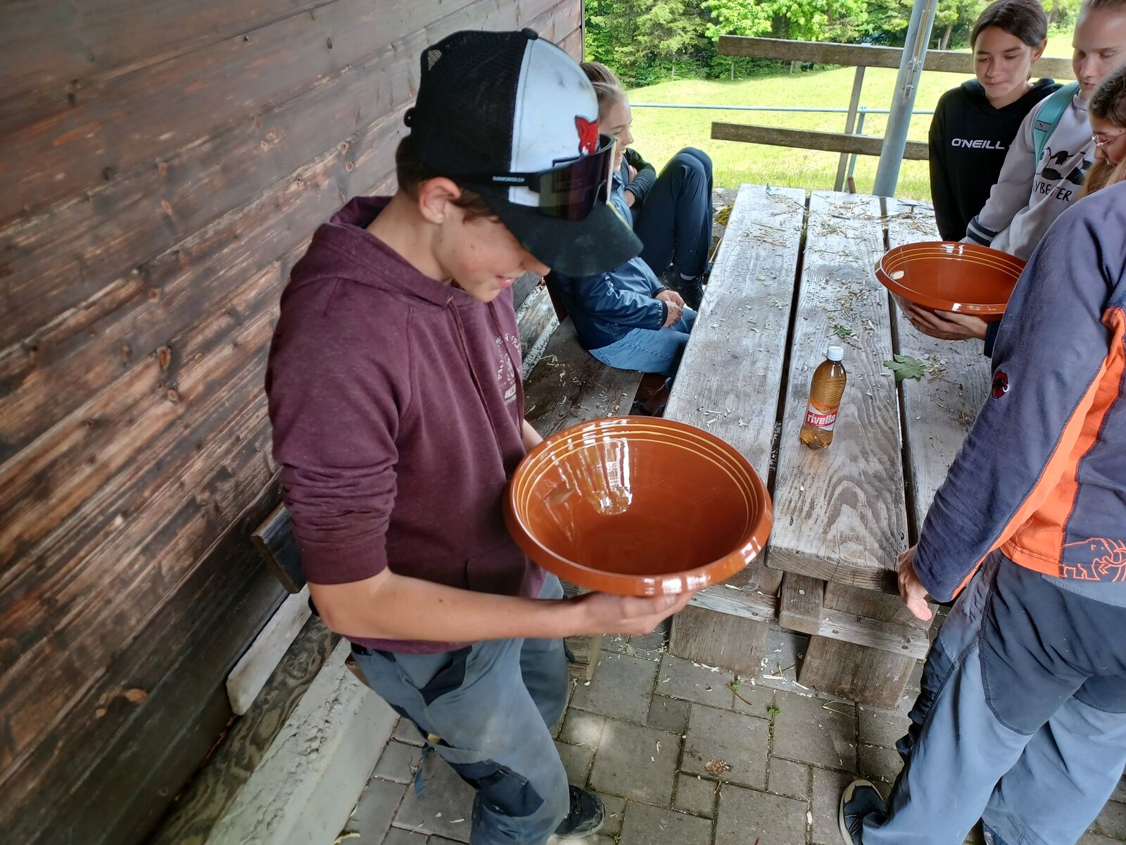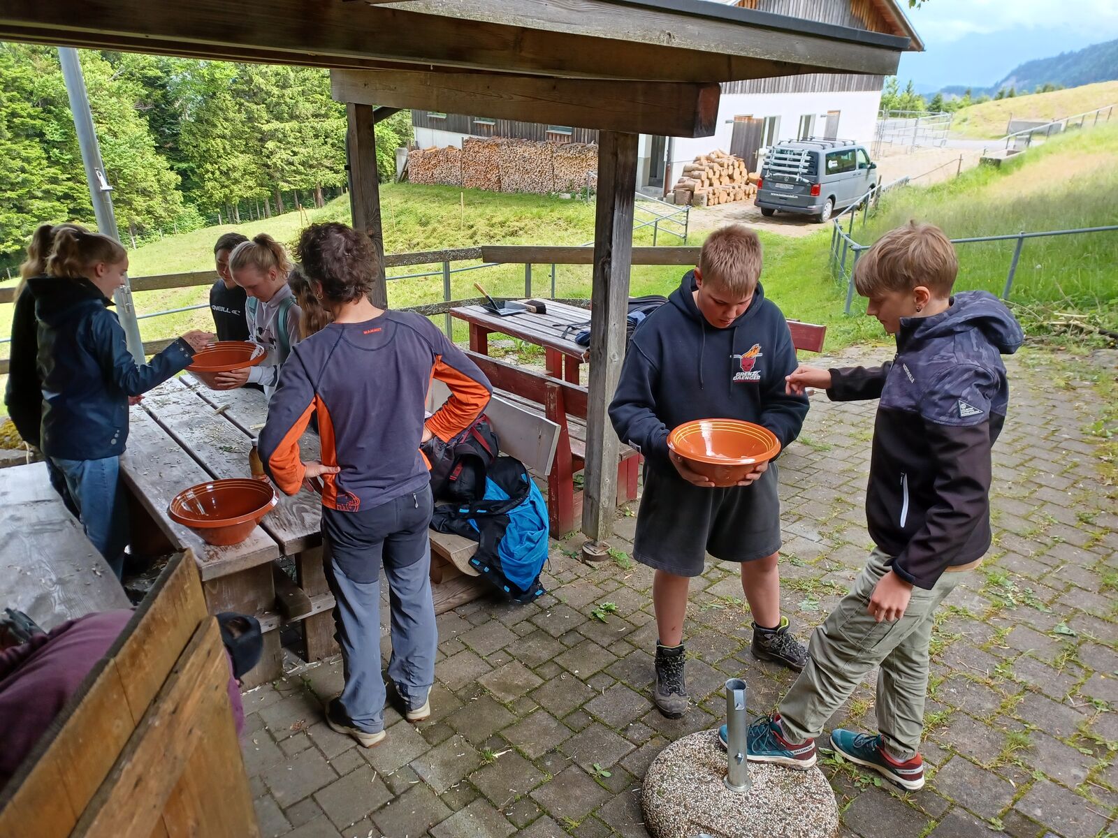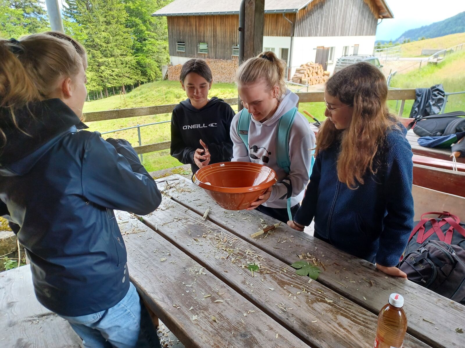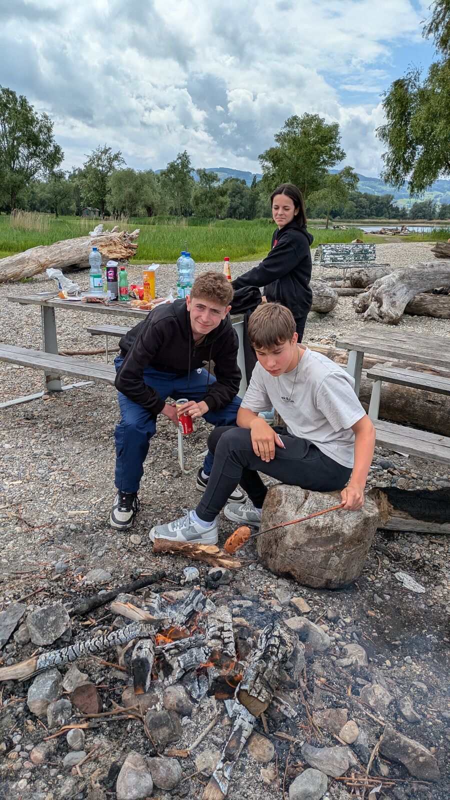 Wir richteten unsere Schlafplätze ein, sammelten gemeinsam Holz, und als der Regen für einen Moment nachließ, entzündeten wir ein Lagerfeuer. Rund um das Feuer wurde geschnitzt, gemalt und gezeichnet, gesungen und viel gelacht. Die Stimmung war gemeinschaftlich und fröhlich. Am Mittag gab es Spaghetti, am Abend ein gemütliches Raclette und am Dienstag gab es feines vom Grill. Die Nähe zur Natur und zu den Tieren war faszinierend.