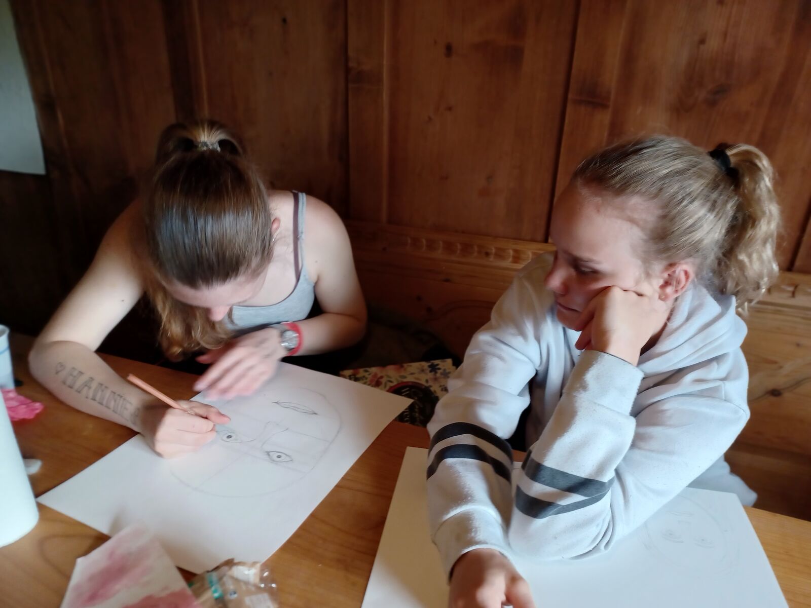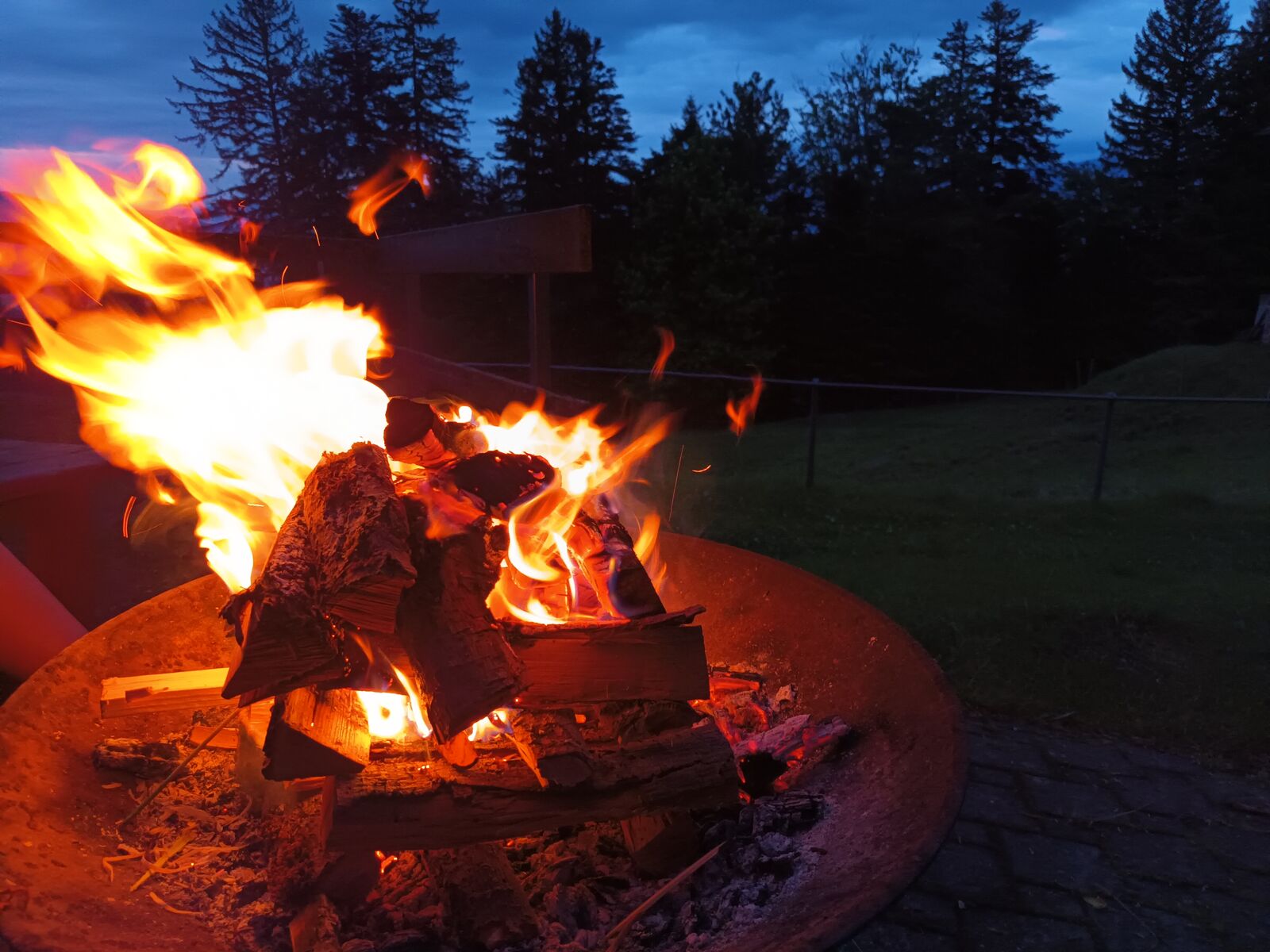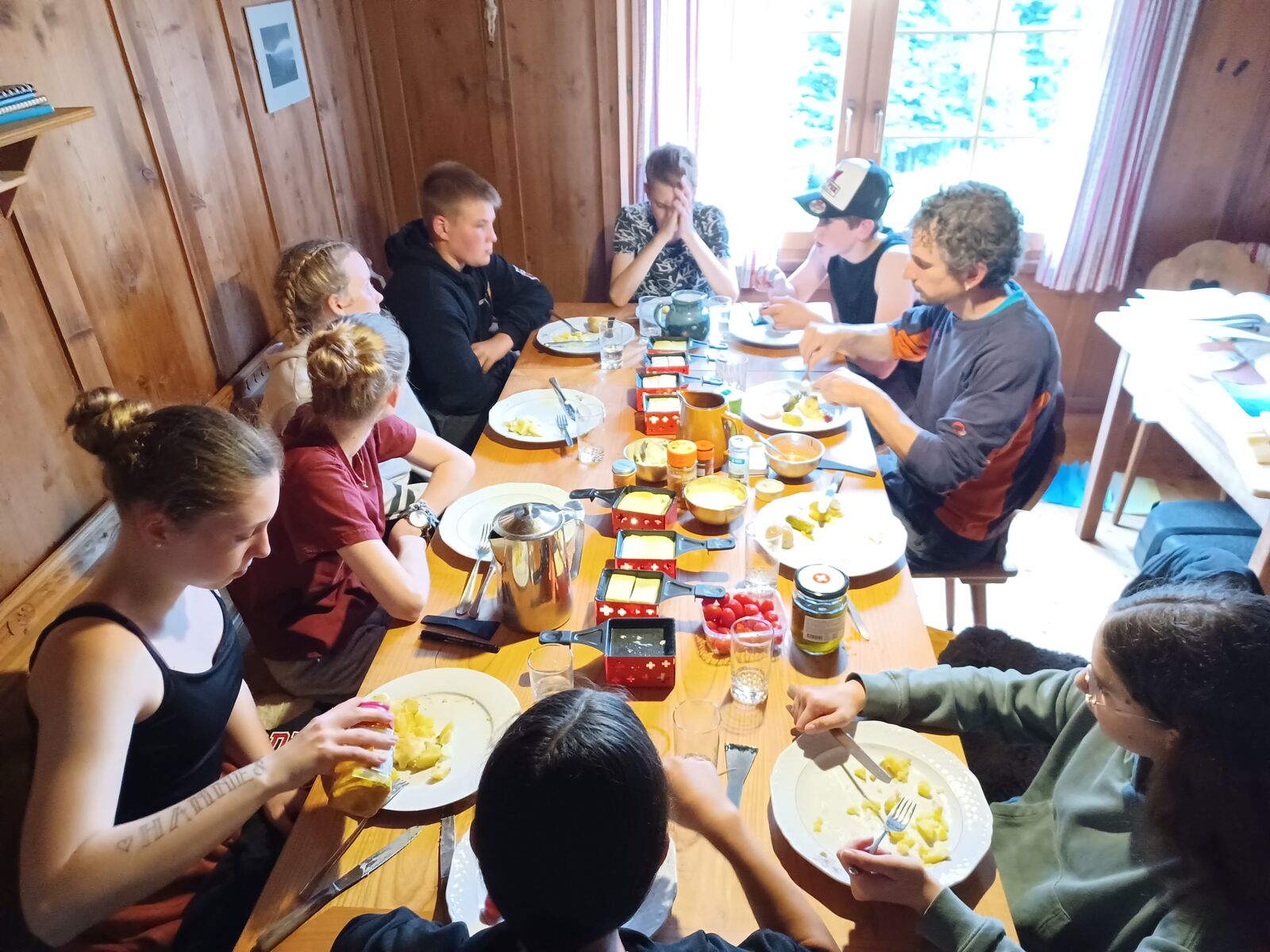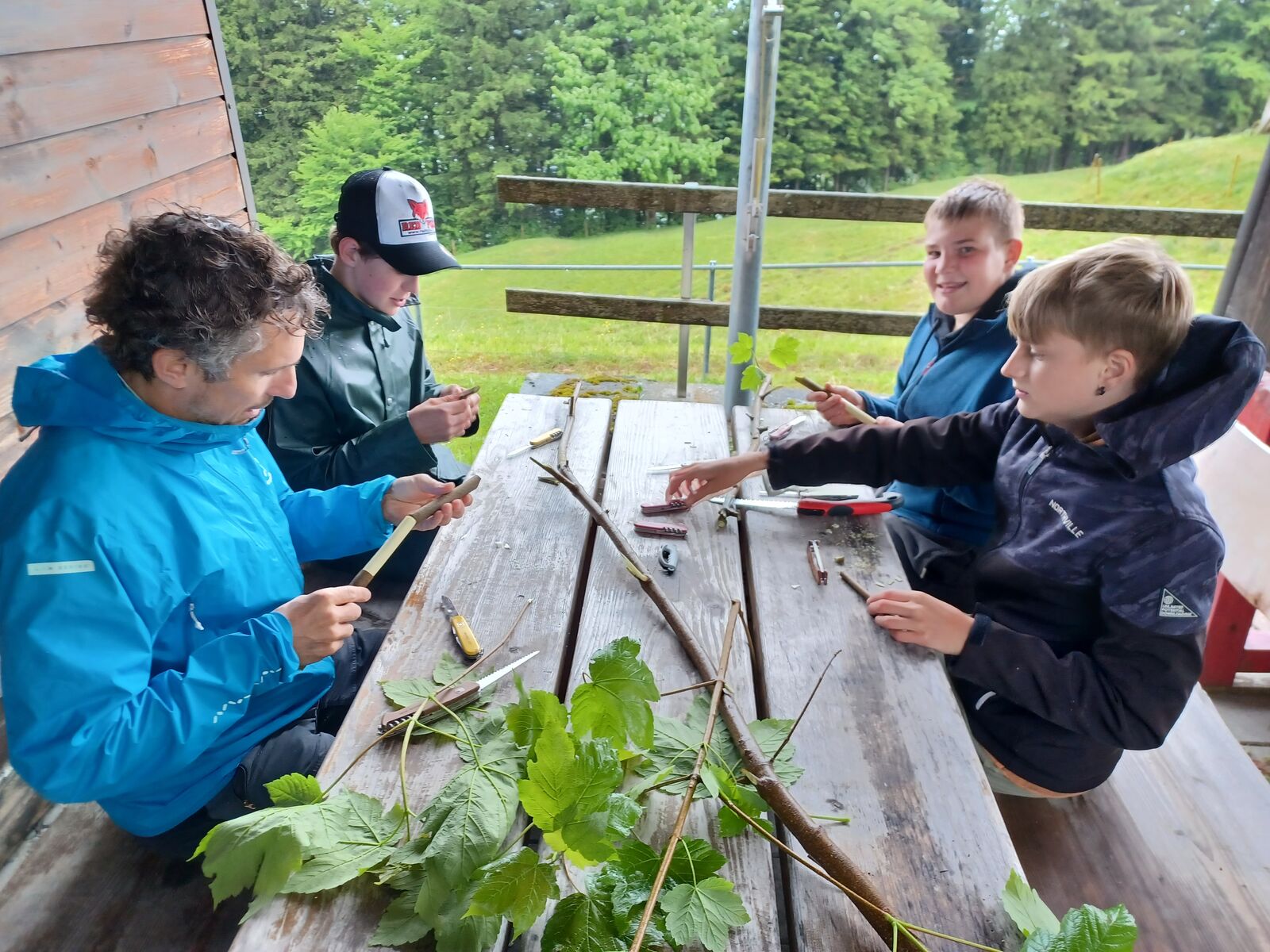 Wir richteten unsere Schlafplätze ein, sammelten gemeinsam Holz, und als der Regen für einen Moment nachließ, entzündeten wir ein Lagerfeuer. Rund um das Feuer wurde geschnitzt, gemalt und gezeichnet, gesungen und viel gelacht. Die Stimmung war gemeinschaftlich und fröhlich. Am Mittag gab es Spaghetti, am Abend ein gemütliches Raclette und am Dienstag gab es feines vom Grill. Die Nähe zur Natur und zu den Tieren war faszinierend.