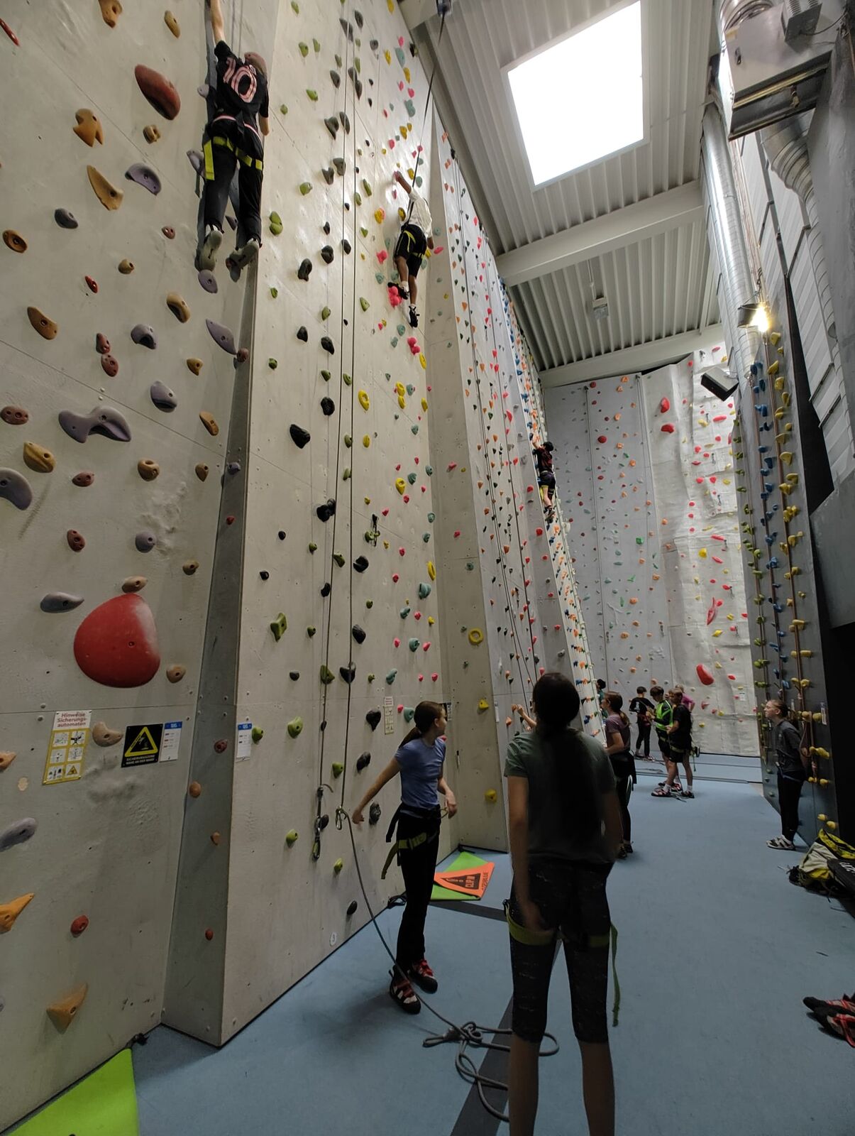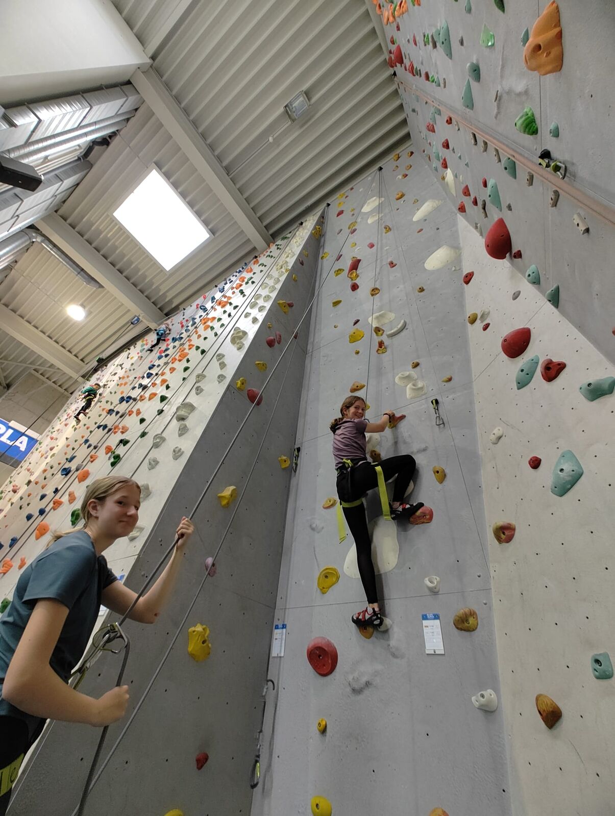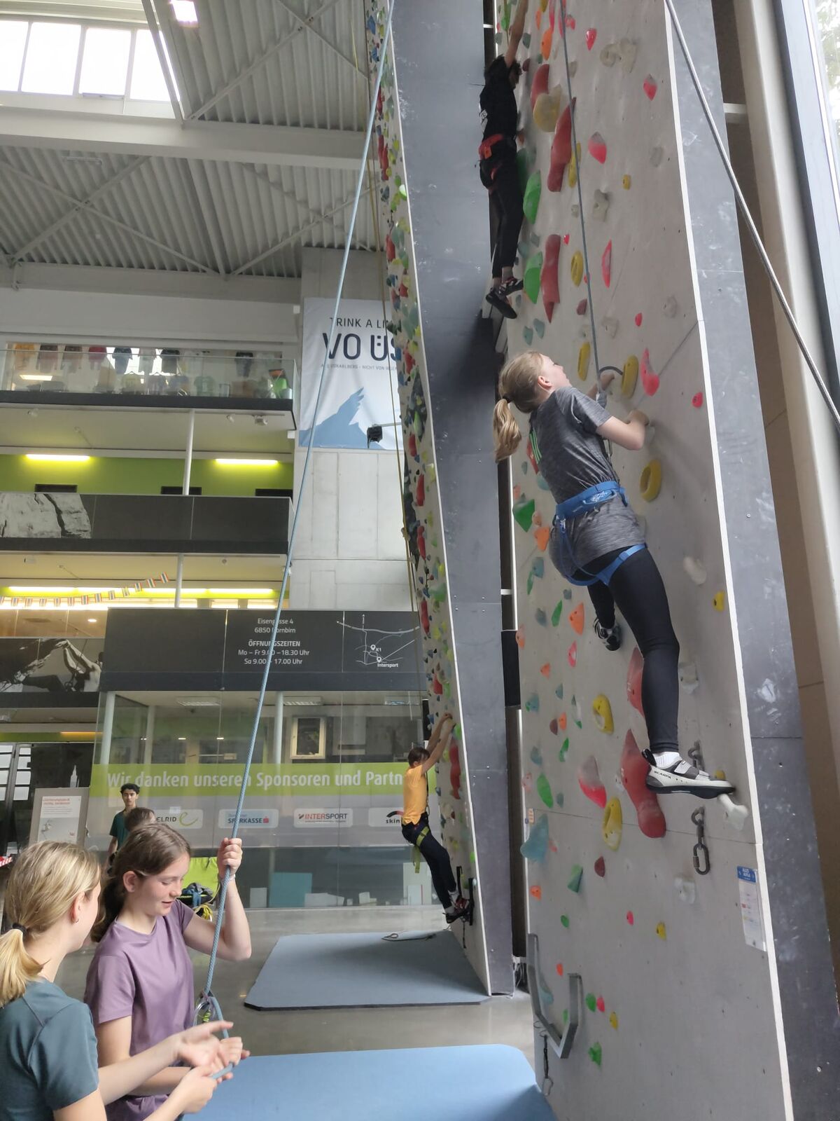 Am Montag machten wir uns trotz leichten Regens mit dem Fahrrad auf den Weg nach Götzis. Von dort ging es mit dem Zug weiter zur Kletterhalle A1 in Dornbirn. Dort angekommen, starteten wir mit einer kurzen Aufwärmeinheit im Boulderbereich. Diese Phase war nicht nur wichtig, um die Muskeln auf Betriebstemperatur zu bringen, sondern auch, um erste Bewegungsabläufe und das Gefühl für Höhe, Grifftechnik und Körperspannung zu üben. Anschliessend erhielten die Schüler eine Einführung in die richtige Klettertechnik und konnten das Gelernte direkt an der Kletterwand umsetzen. Schon nach kurzer Zeit stellten sich die ersten Erfolge ein: Einige schafften es, auch anspruchsvollere Passagen zu meistern und über sich hinauszuwachsen. Die Mischung aus sportlicher Herausforderung und Teamarbeit sorgte für eine motivierende Atmosphäre. Nach dem individuell gestalteten Mittagessen ging es erneut an die Wand. Dabei stand die Vertiefung der bereits gelernten Techniken im Fokus. Die Stimmung war motiviert und konzentriert – alle waren mit grossem Einsatz dabei. Am späten Nachmittag machten wir uns auf den Rückweg und fuhren mit dem Fahrrad nach Hause, um uns etwas zu erholen und neue Kraft für den nächsten Tag zu tanken.
