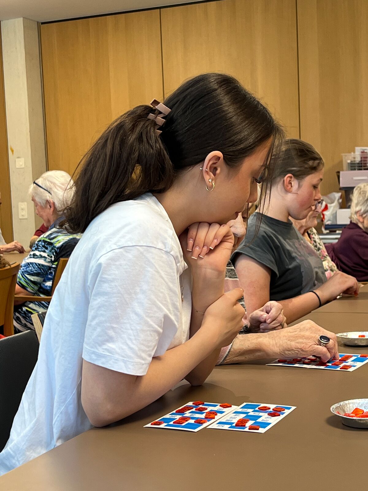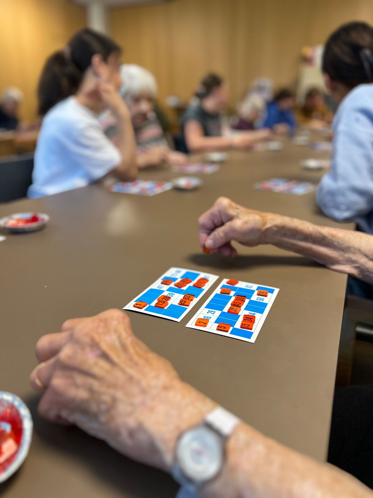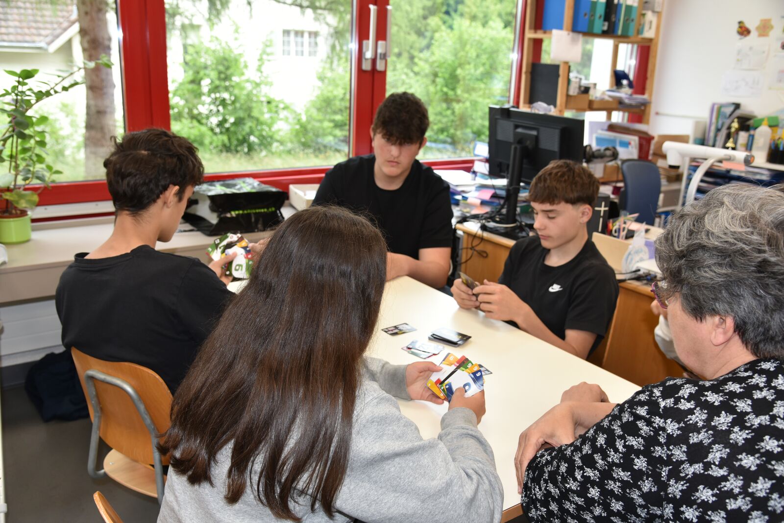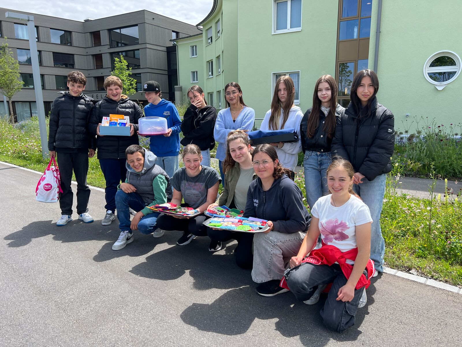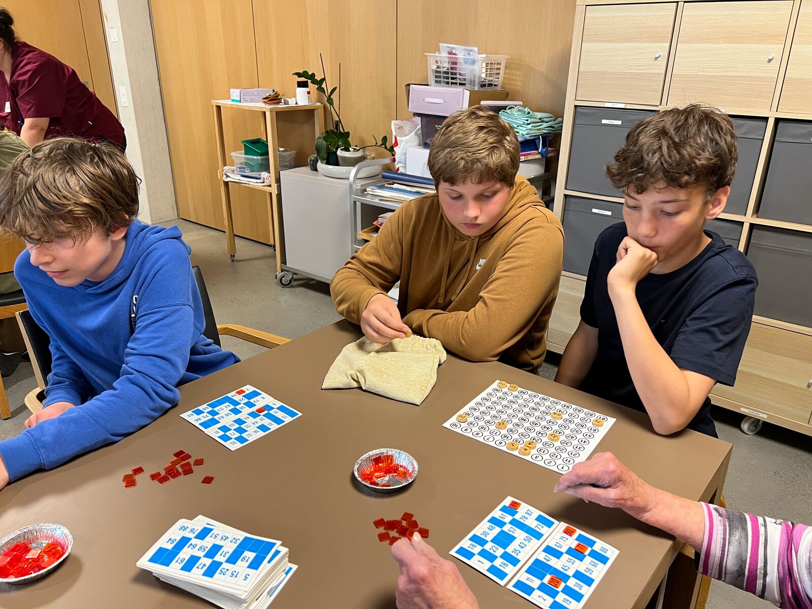 Am Morgen backten wir in der Schule Küchen, Guetzli und Brötli für den Besuch im Altersheim. Neben dem Backen von feinen Spitzbuben, bastelten wir weitere Verpackungen für unsere Geschenke. Auf jede Verpackung klebten wir eine Nachricht drauf, die wir an die Personen im Altersheim richten wollten. Als wir mit allem fertig waren, blieb noch Zeit für gemeinsame Spiele, wie zum Beispiel UNO. Am Nachmittag trafen wir uns beim Altersheim Huus Feldhof in Oberriet. Dort wurden wir sehr herzlich empfangen. Gemeinsam mit den Bewohnerinnen und Bewohnern spielten wir Lotto (Bingo). Besonders schön war, dass wir dabei viel mit den älteren Menschen sprechen, ihnen helfen und ihre Geschichten hören konnten. Für die Gewinner hatten wir Geschenke vorbereitet, die wir dann überreichen konnten. Zum Abschluss durften wir Kaffee und Kuchen verteilen und unsere kleinen Geschenke überreichen. Es war ein aufregender Tag voller schönen Begegnungen, Freude und wertvoller Erfahrungen.
