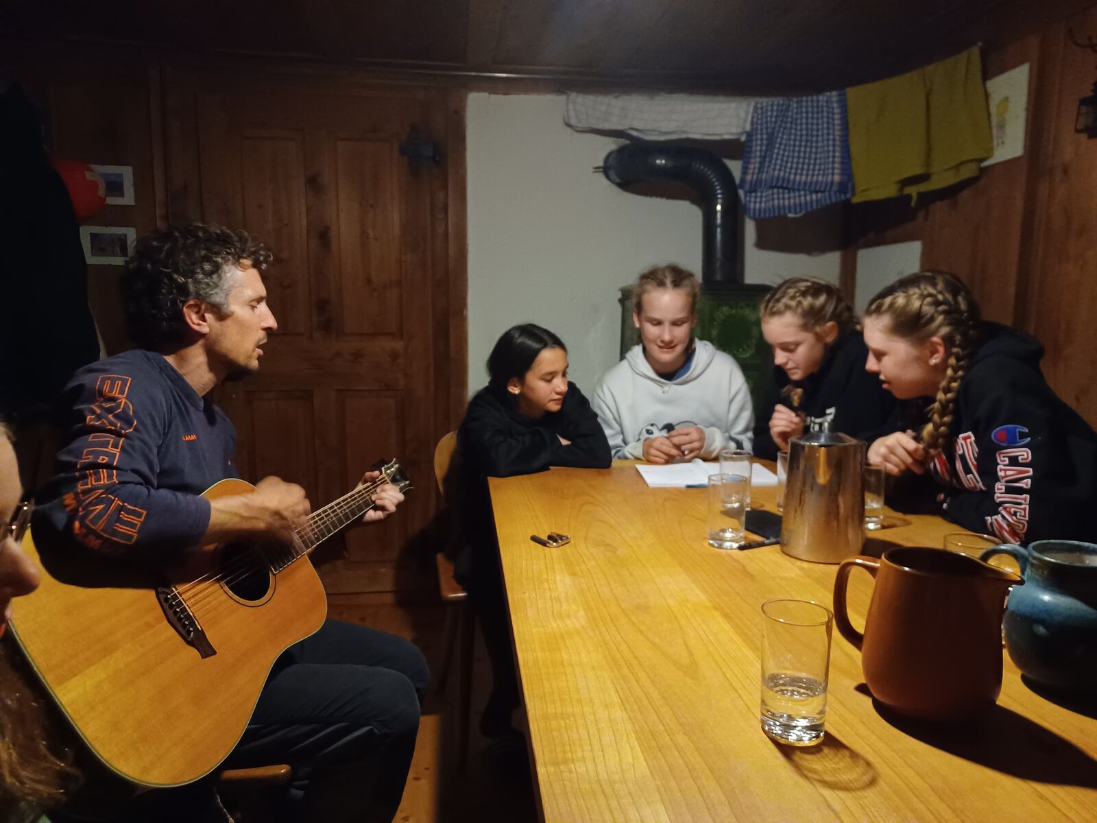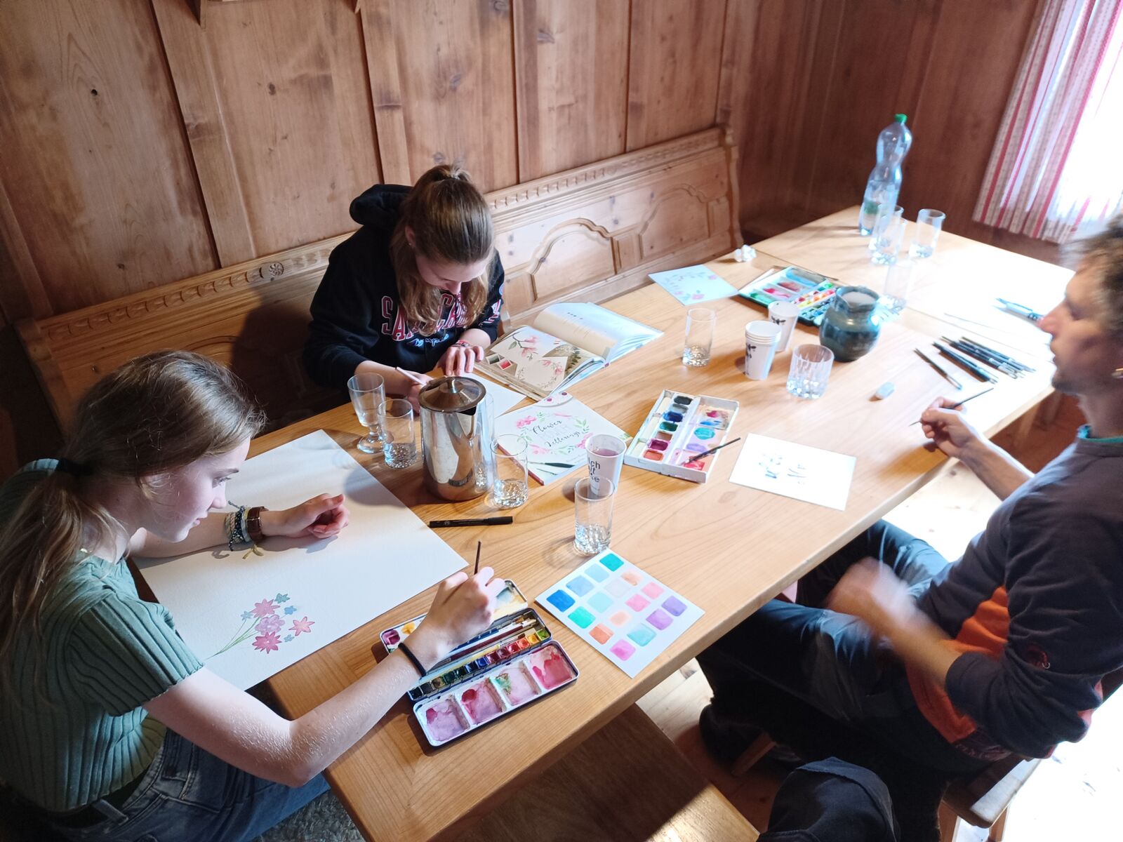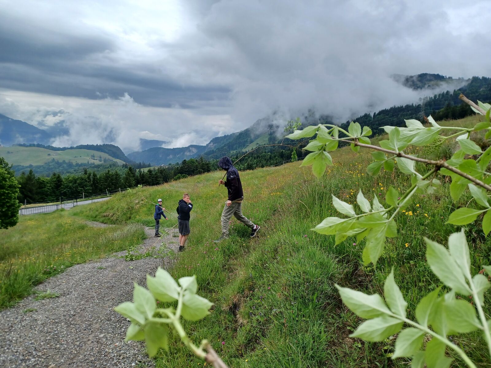 Der nächste Tag begann gemütlich mit einem gemeinsamen Frühstück. Trotz anhaltendem Regen genossen wir die frische Luft und die Ruhe der Berge. Zwischendurch zeigte sich sogar die Sonne kurz – und wir wurden mit einer spektakulären Aussicht bis zum Bodensee belohnt. Auch der zweite Tag war erfüllt von Spiel und Spass, kreativen Aktivitäten und Gesprächen. Am Nachmittag traten wir müde, aber erfüllt und zufrieden den Rückweg ins Tal an.