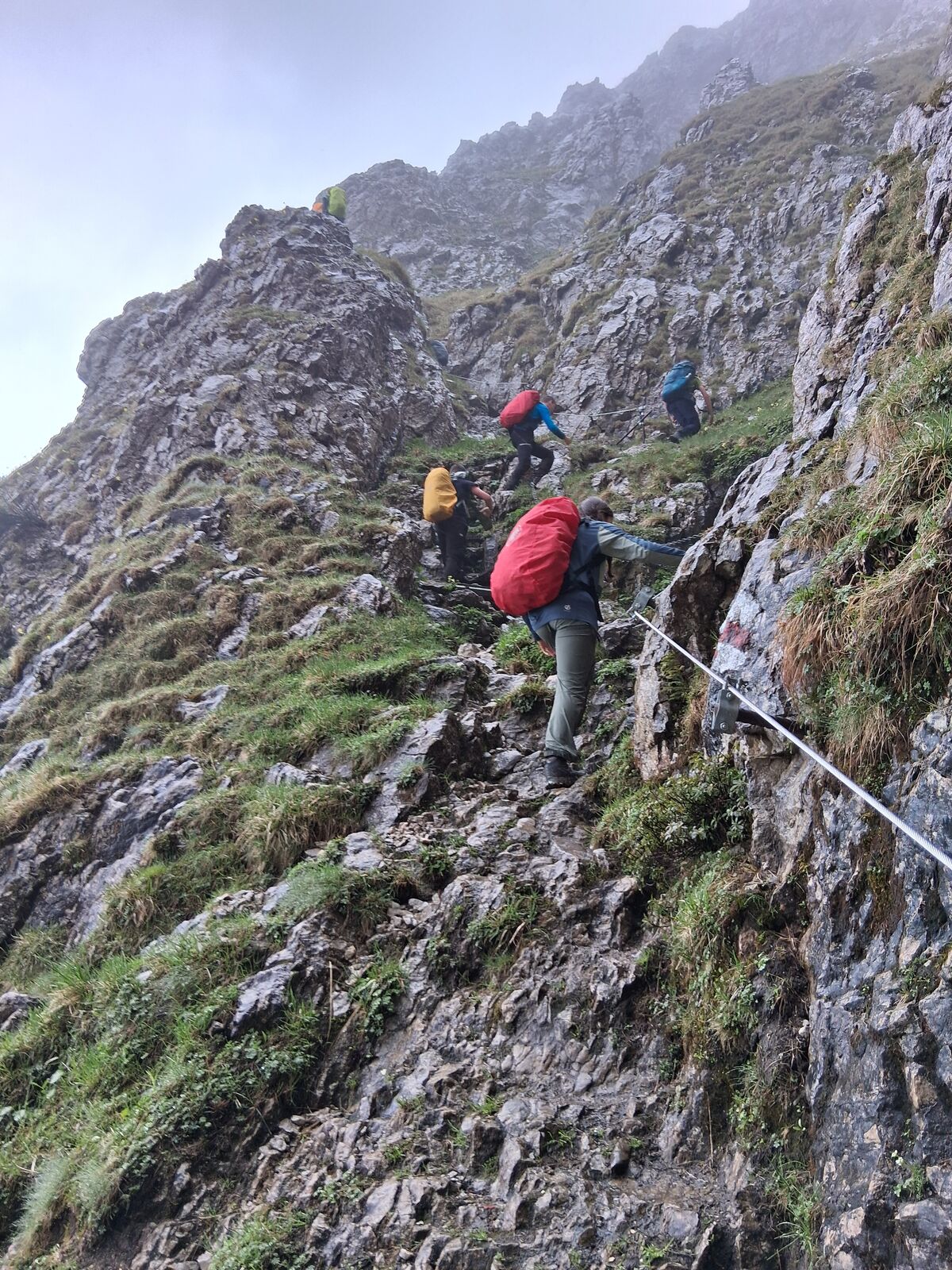 Nach über zwei Stunden erreichten wir die Neuenalp, eine einfache, aber gemütliche Alphütte mit Betten und Matratzen, direkt neben einem kleinen Kuhstall. Die Hütte wird umweltfreundlich mit einer Solaranlage betrieben – eine tolle Erfahrung, bewusst mit begrenzten Ressourcen umzugehen. Trotz des vielen Regens, der uns beide Tage immer wieder begleitete, liessen wir uns die Stimmung nicht verderben.