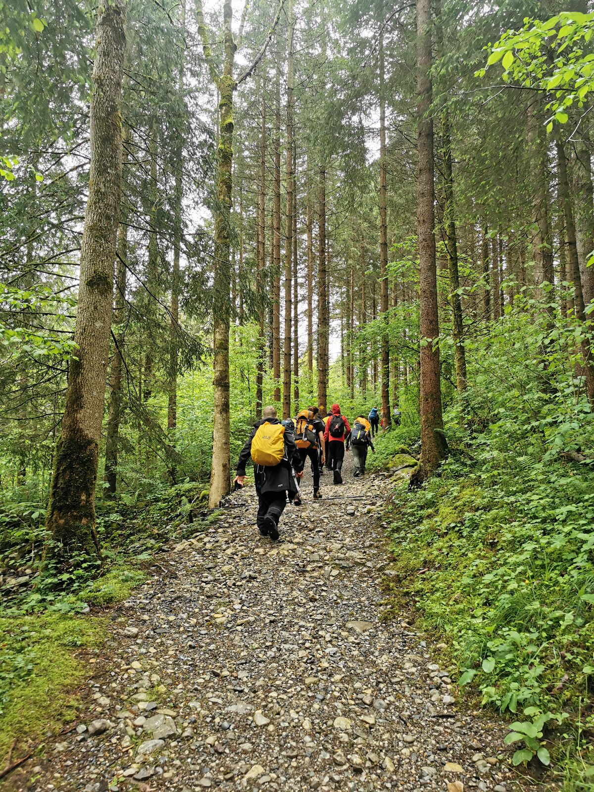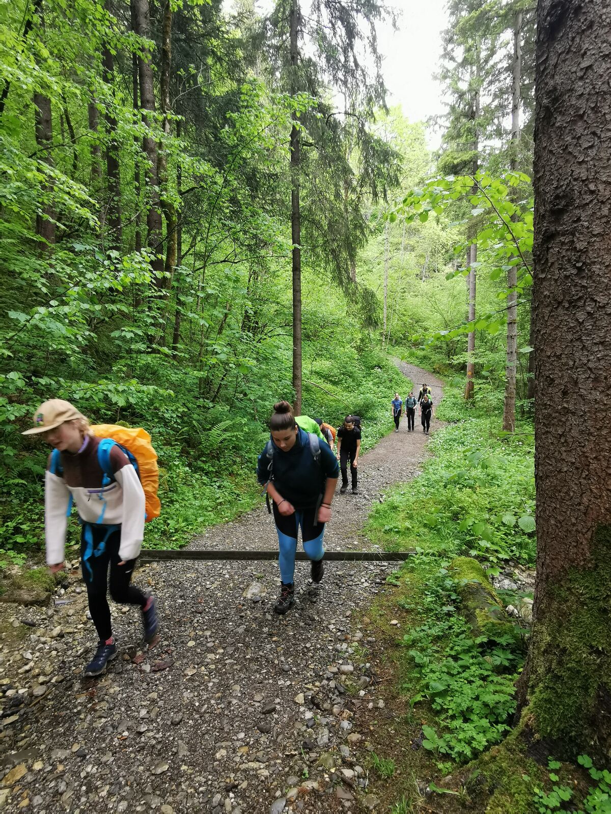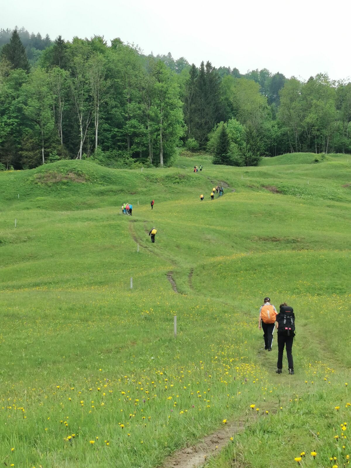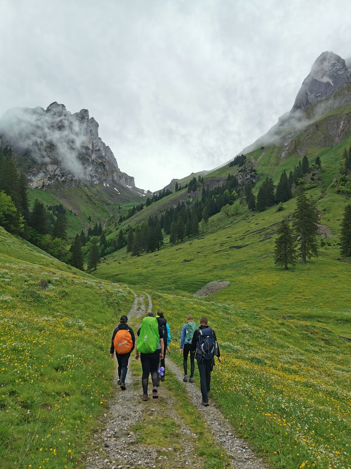 Am frühen Morgen starteten wir zu unserer zweitägigen Reise zur Neuenalp, die unterhalb des Montlinger Schwamms liegt – hoch über dem Rheintal. Den gesamten Weg legten wir zu Fuss zurück. Der Aufstieg war anstrengend, aber lohnend: Wir wanderten durch Wälder und Alpwiesen.