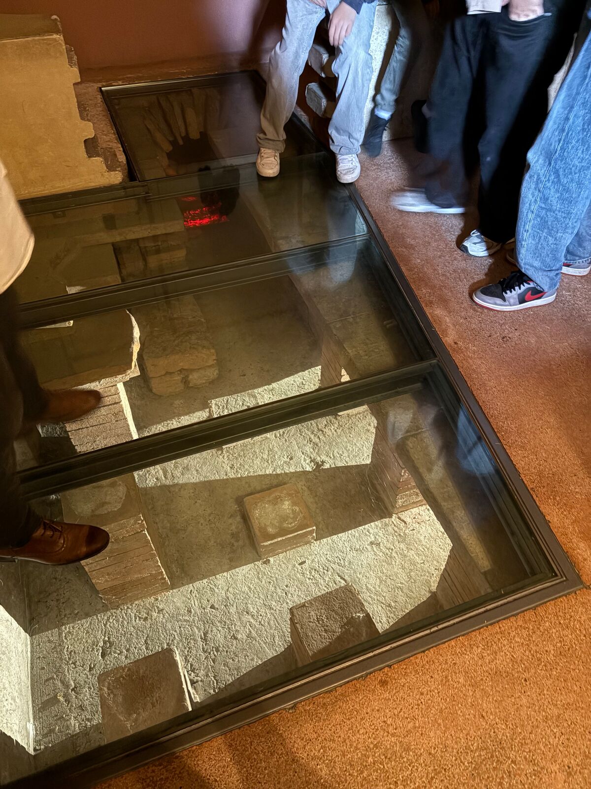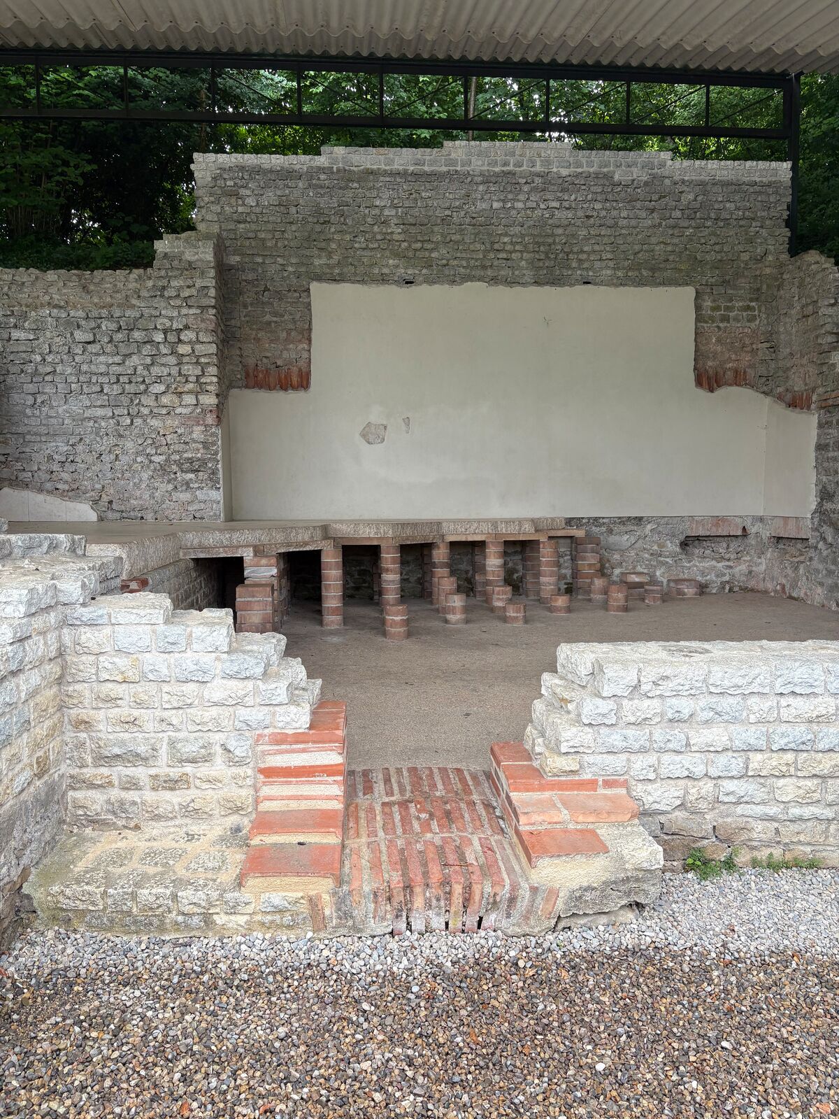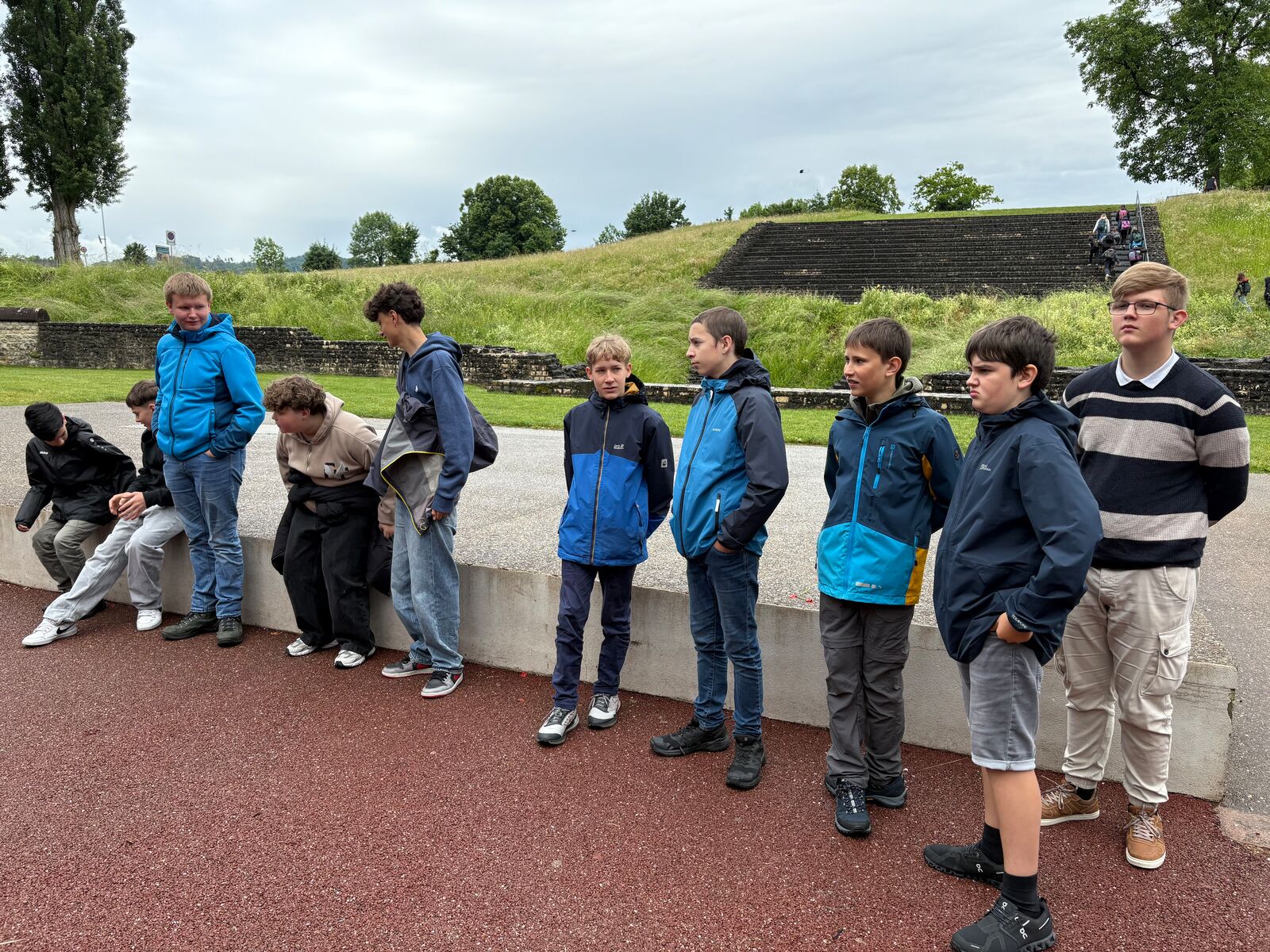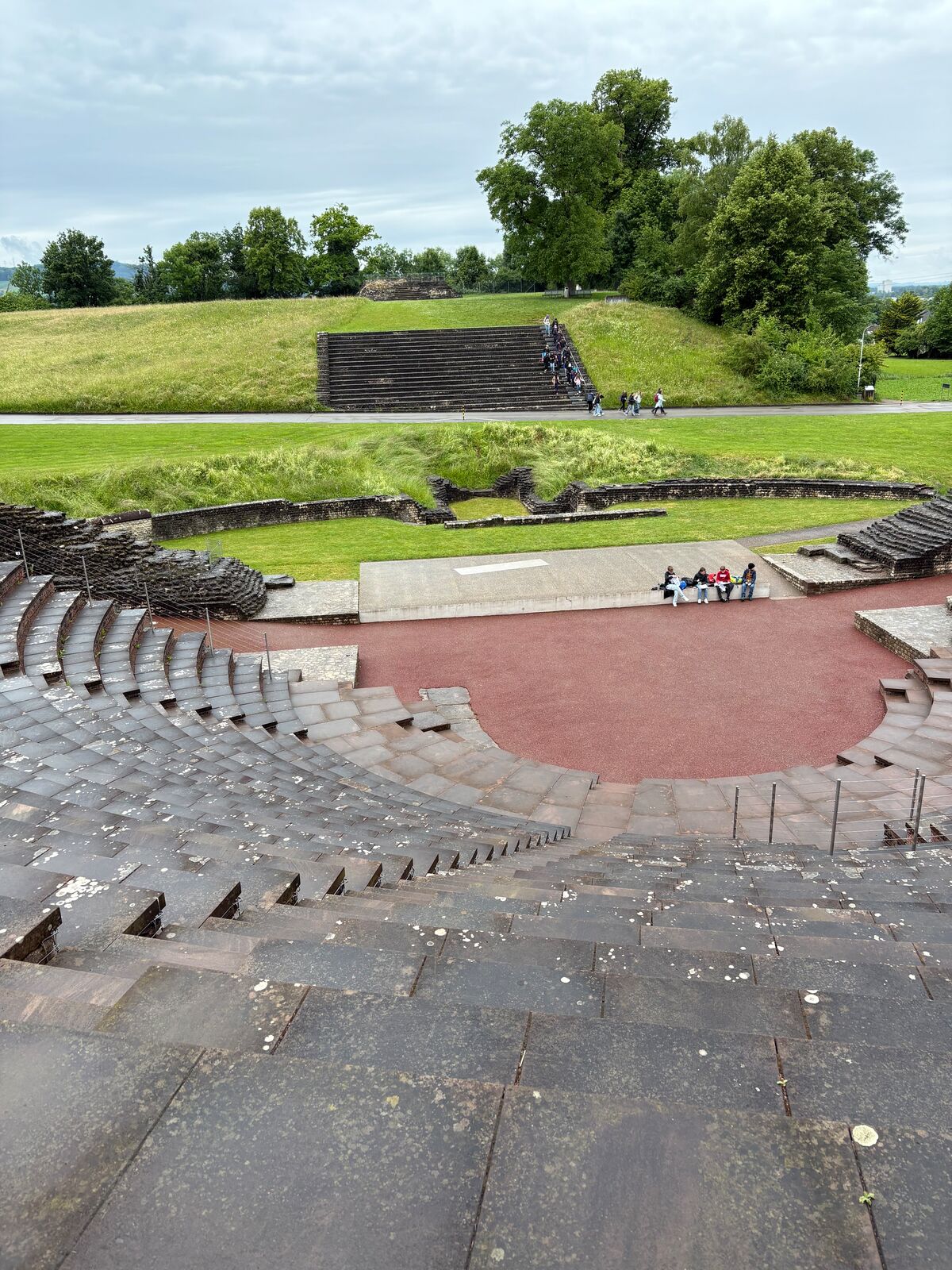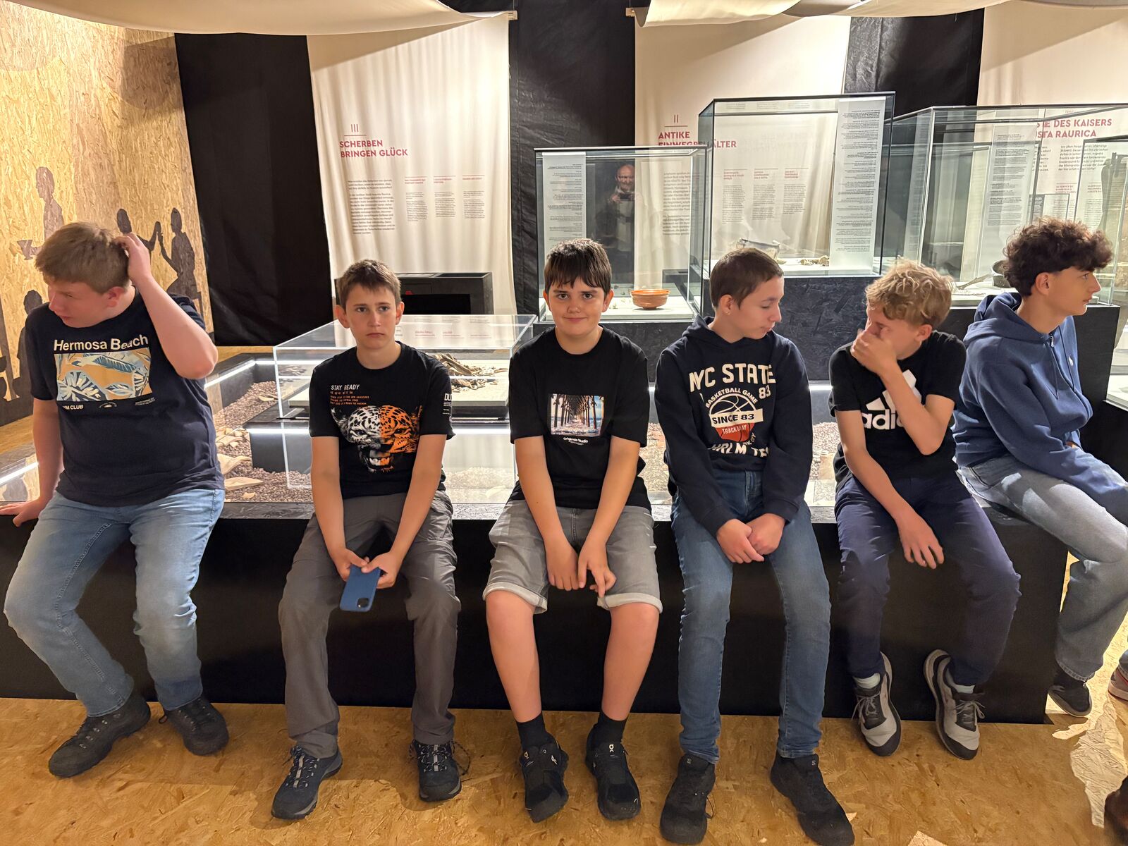 Als wir in Kaiseraugst angekommen waren, marschierten wir zum antiken Augusta Raurica, wo wir das Lapidarium besichtigen konnten. Danach durften wir eine interessante Führung durch Augusta Raurica miterleben. Die Frau, welche uns durch die antiken Stätten führte, brachte uns zuerst das halbrunde Theater, das in der Anfangszeit auch ein Amphitheater war, näher. Vom Amphitheater marschierten wir zu einer Stelle am Rande von Kaiseraugst. Dort zwängten wir uns durch einen etwa 2000 Jahre alten Abwasserkanal. Dann wanderten wir zu der Curia (Stadtregierung), wo das öffentliche Leben stattfand. Von der Curia kehrten wir zum Museum zurück. Dort angekommen, durften wir eine interessante Ausstellung an Amphoren besichtigen. Danach wechselten wir zum Römerhaus, das direkt neben dem Museum steht. Dort wurde uns der römische Alltag erklärt. Wir sahen unter anderem den Altar der Laren (Hausgötter). Verschiedene Räume – von der Küche bis zu den Badräumen – wurden uns eindrücklich präsentiert. Wir durften sogar Lederschuhe und einen Kapuzenpullover der damaligen Zeit anziehen.